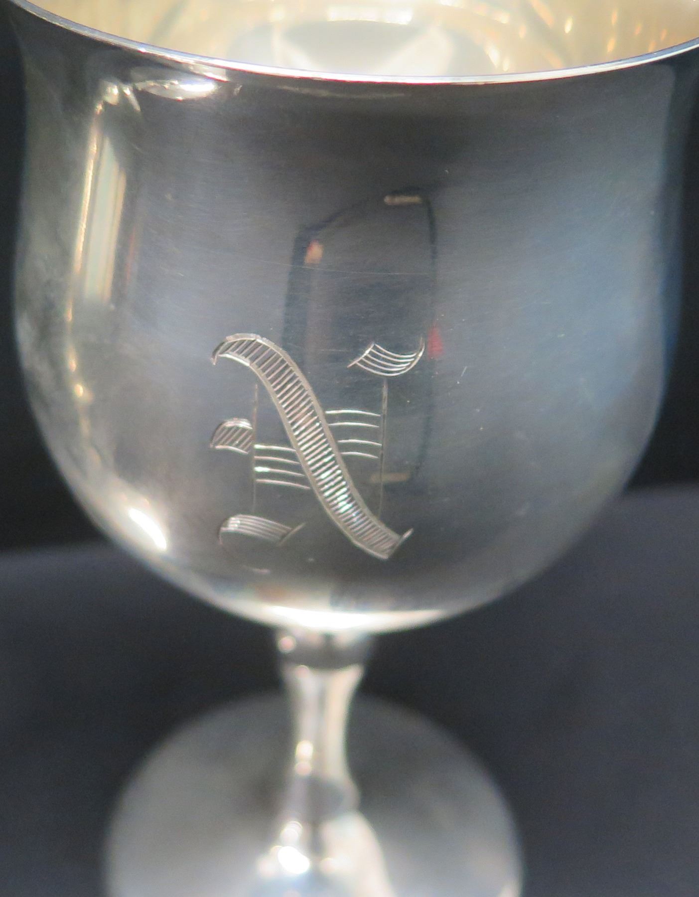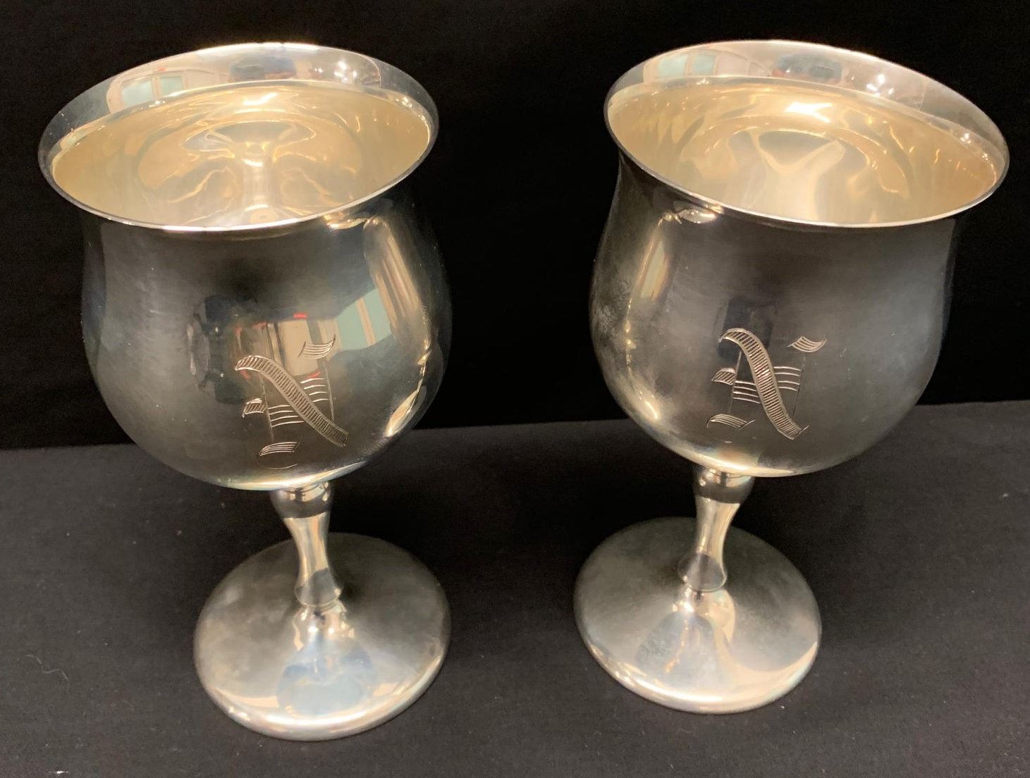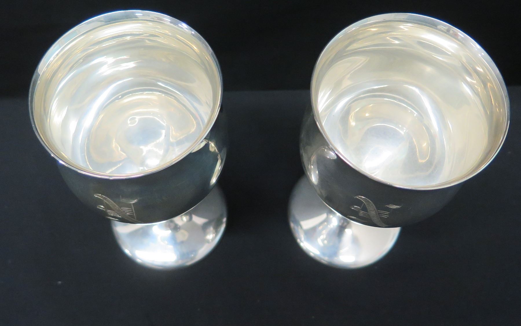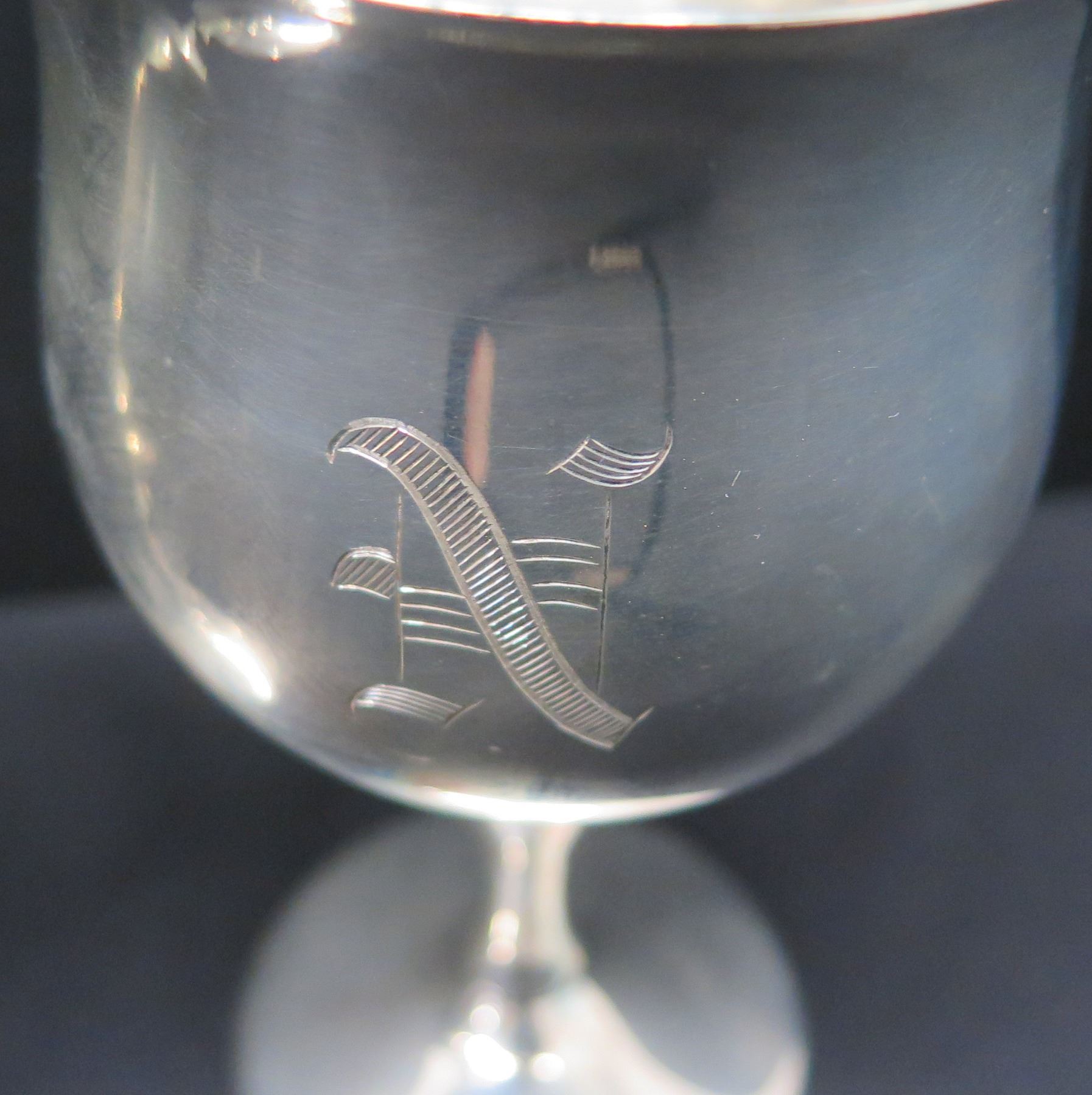 2 Stemmed Wine Goblets, Marked 'Reed & Barton Sterling X115' Monogrammed 'N'