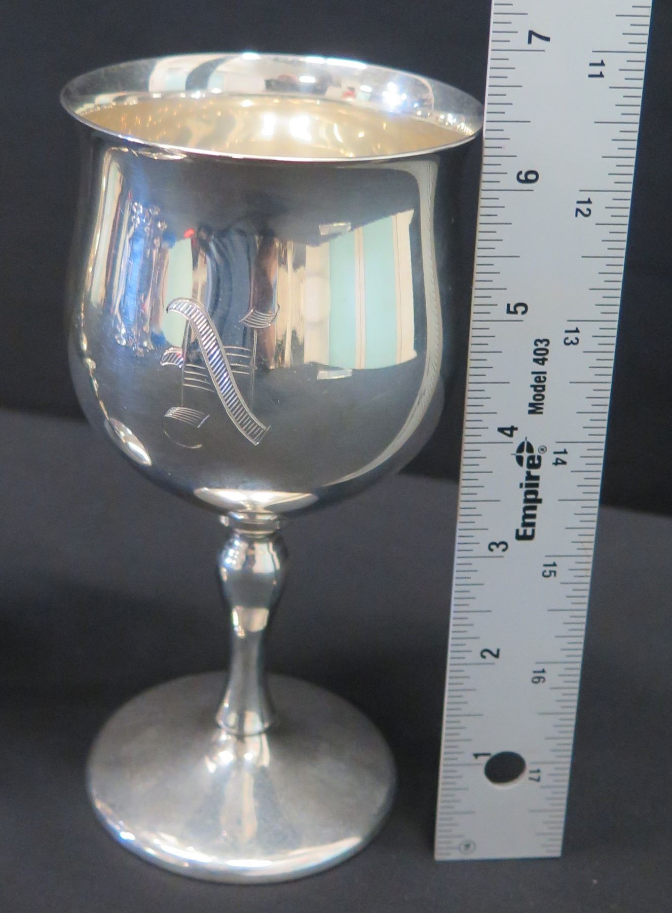 2 Stemmed Wine Goblets, Marked 'Reed & Barton Sterling X115' Monogrammed 'N'