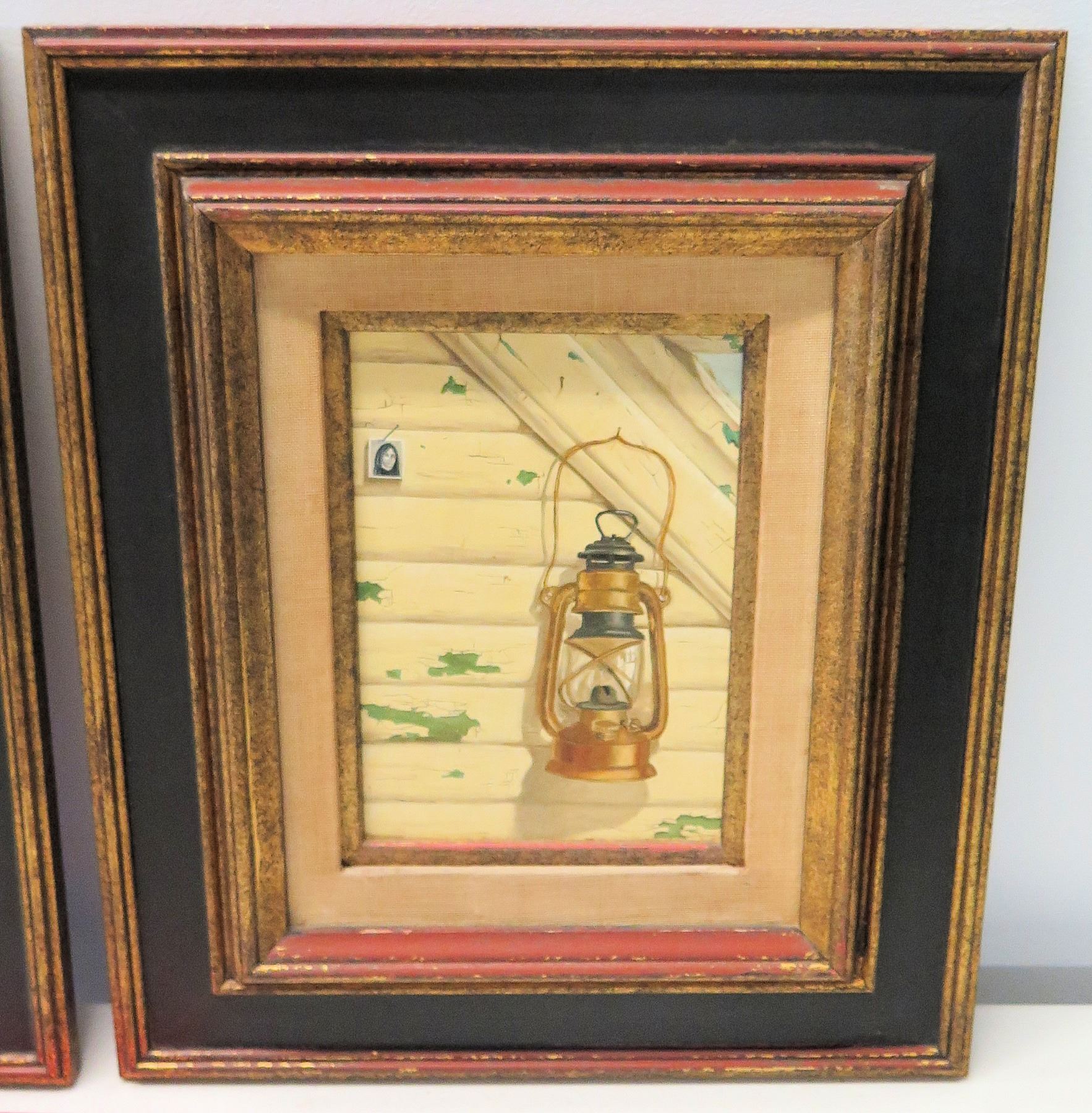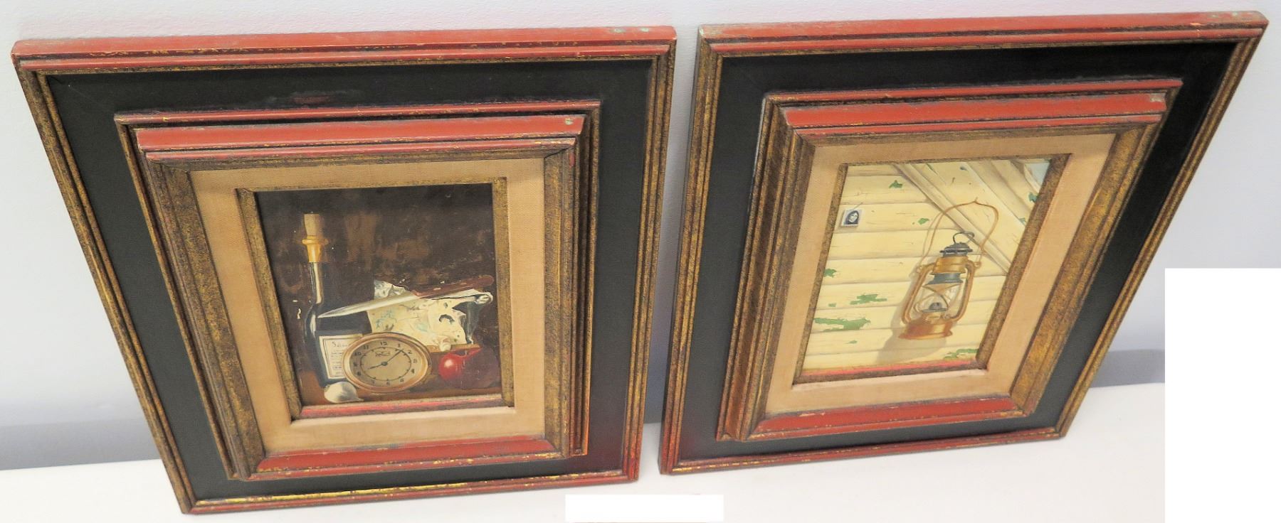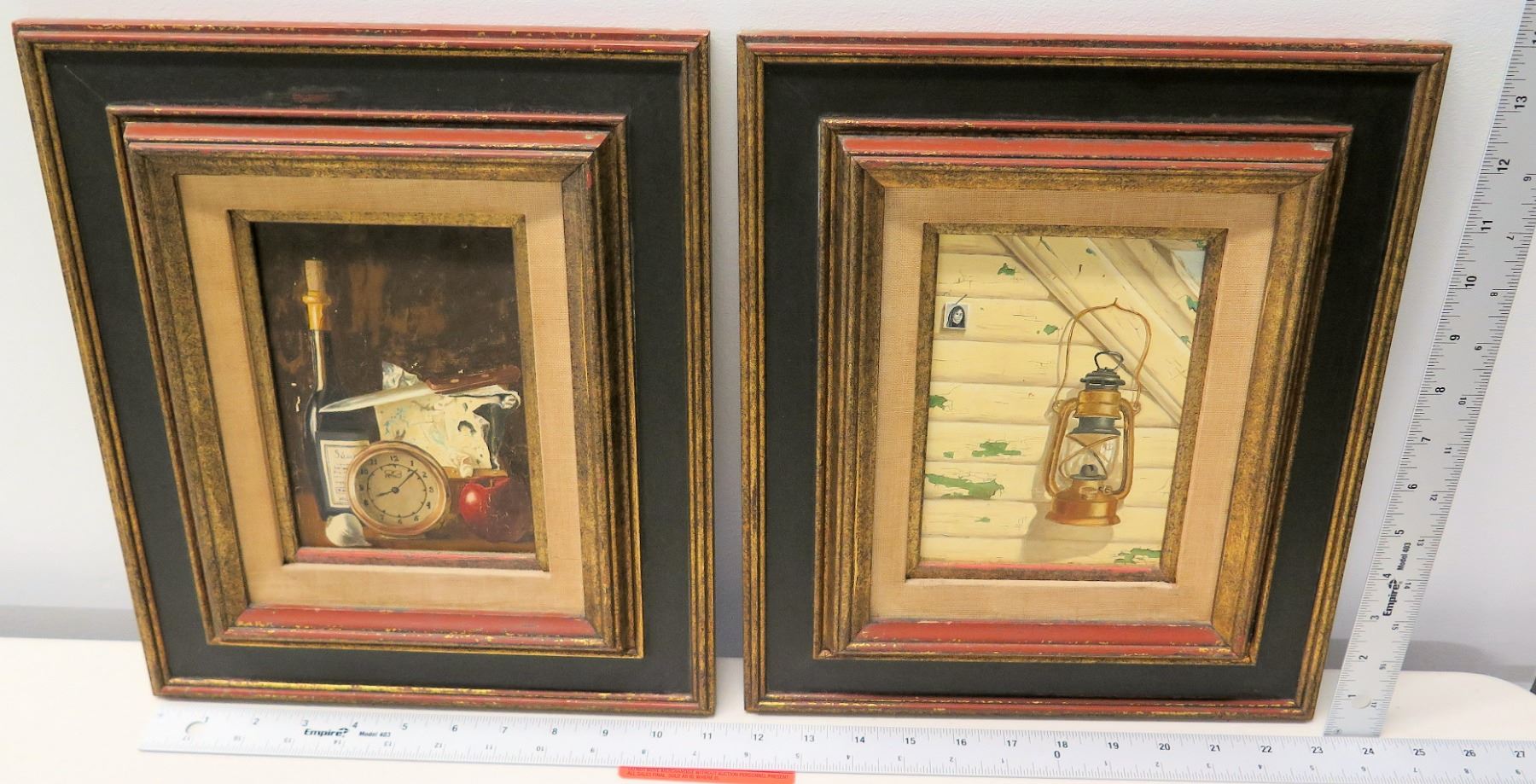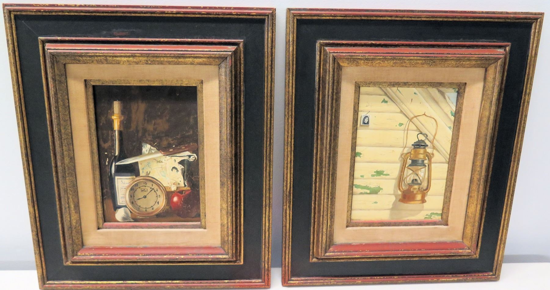 2 Still Life Paintings: Lantern and Wine/Clock, Artist Andrew Annenberg 1967, On Wood, 11.5" x 13.5"