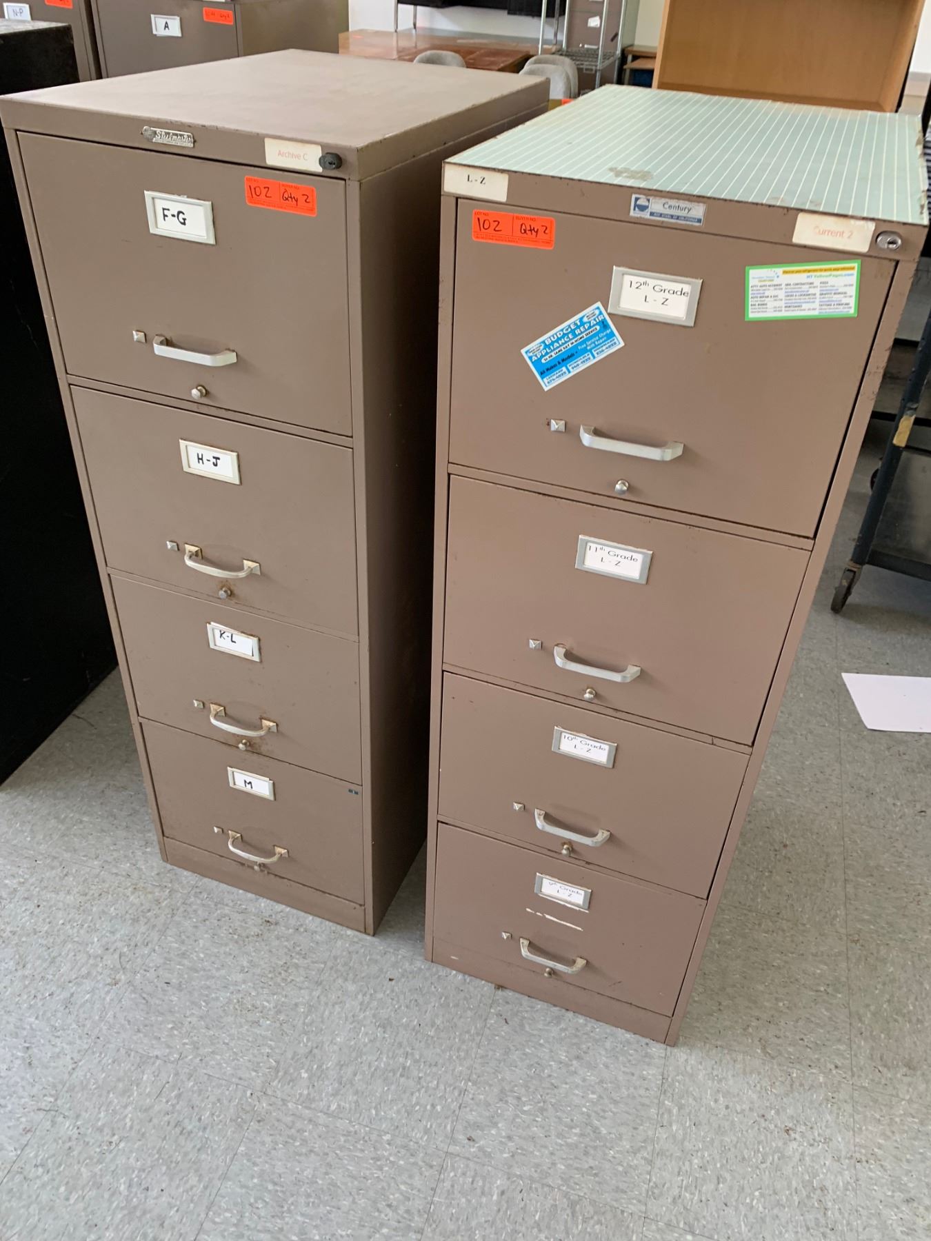 2 Vertical Metal File Cabinets (Brown)
