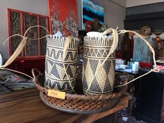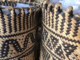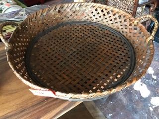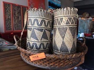 2 Woven Backpack Baskets, 1 Round Woven Basket