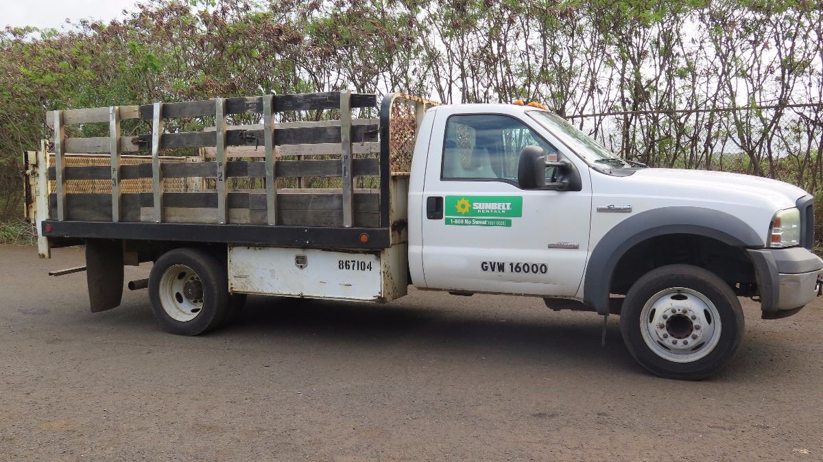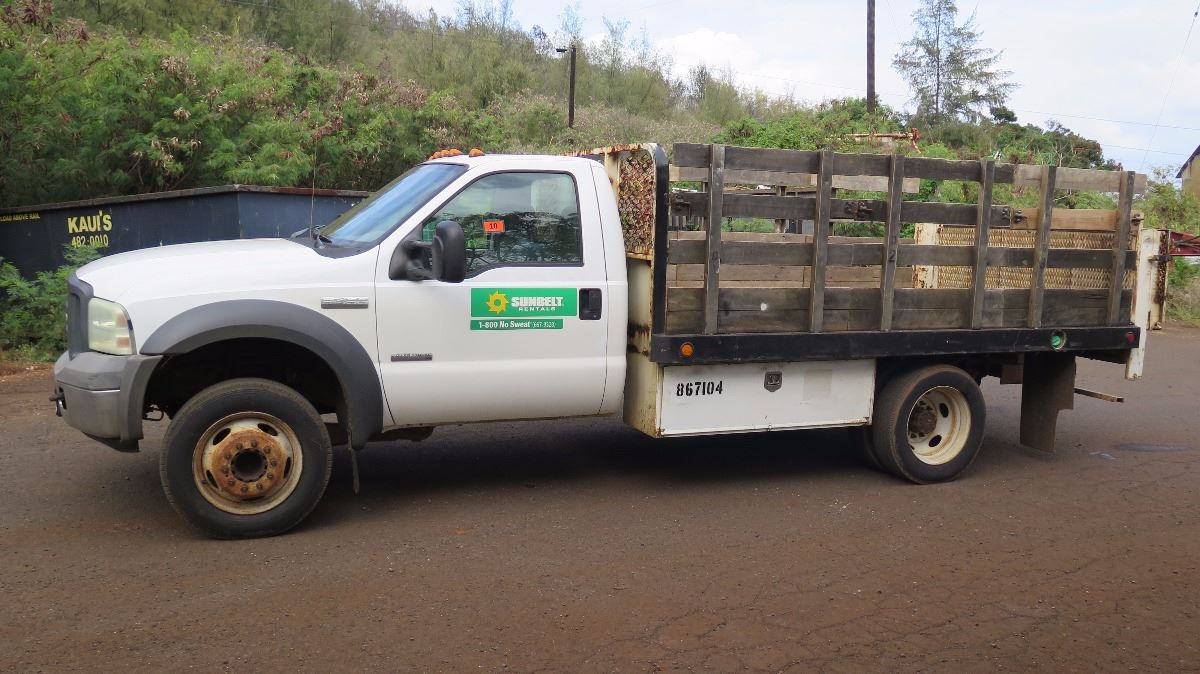2005 Ford F450 Stake Bed Flatbed Truck w/ Lift Gate, 12 Foot Bed (Lic. 635 TTS). Approx mileage 138125. Truck runs and drives. No known problems. Title on order and will be provided as soon as possible.