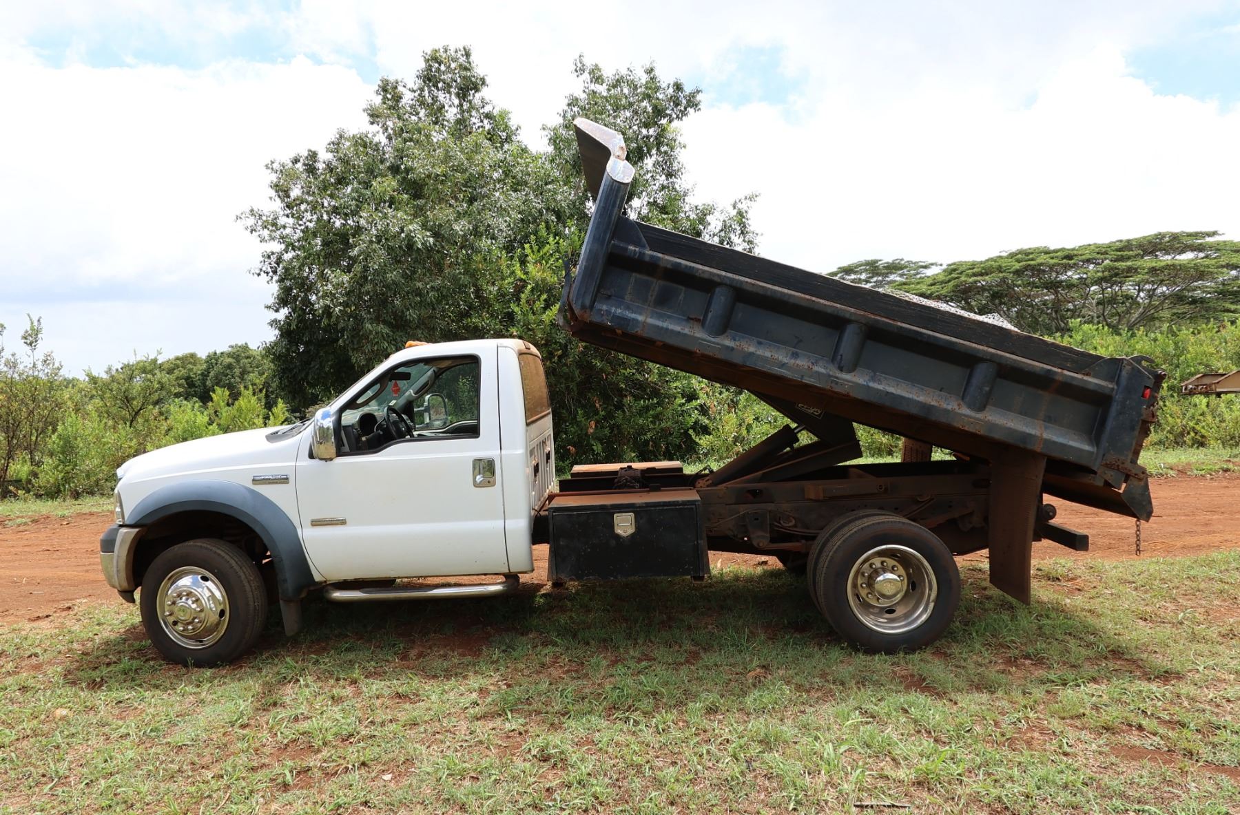 Contents not included. 2005 Ford F450 Super Duty Power Stroke V8 Truck w/ Lo-Boy Dump Bed, 169704 Miles, Lic. 180KBT.