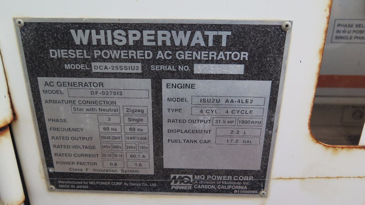 2005 Multiquip DCA-25SSIU2C 20 kW Towable Generator 25 kVA Diesel - Whisperwatt Approx hours 15928