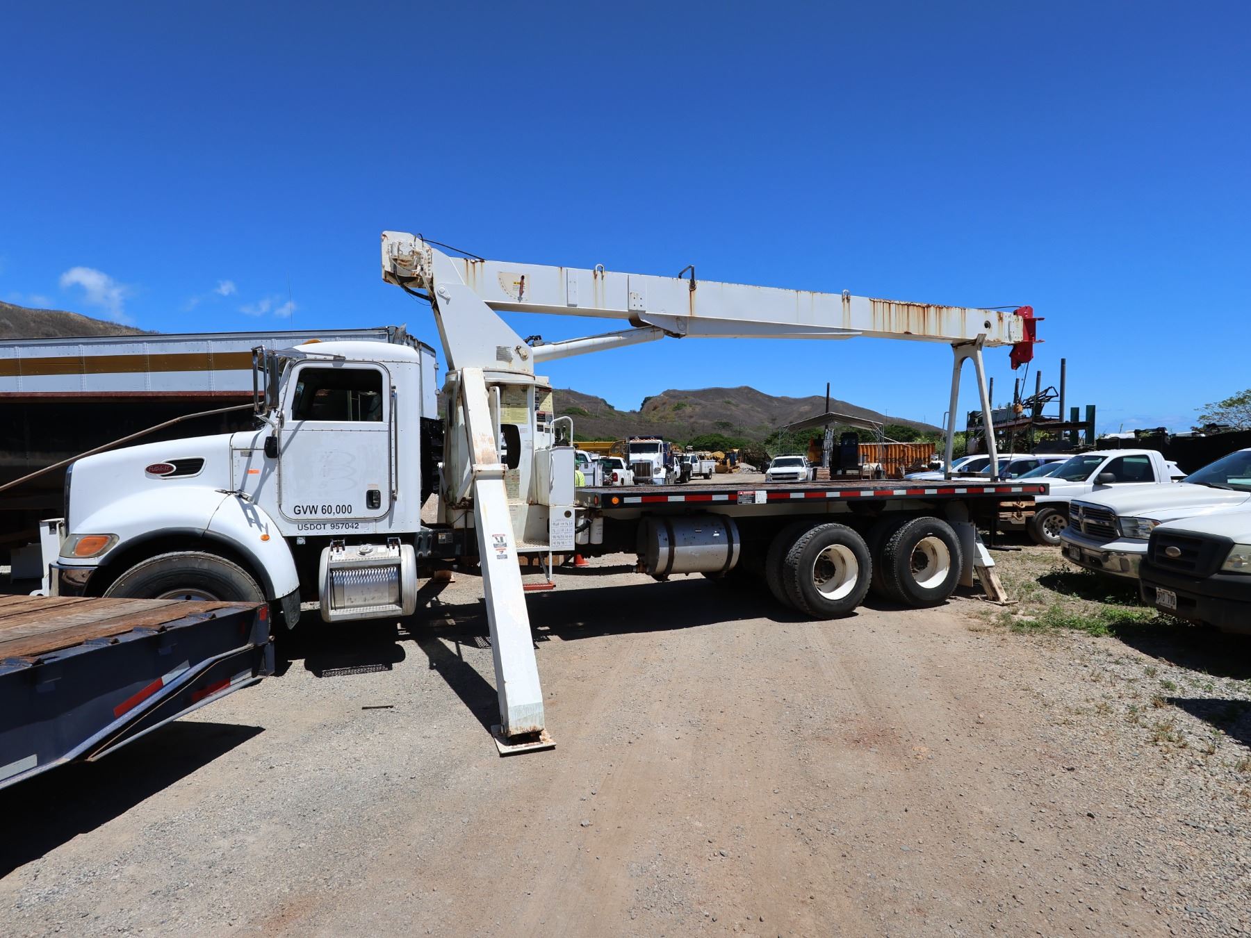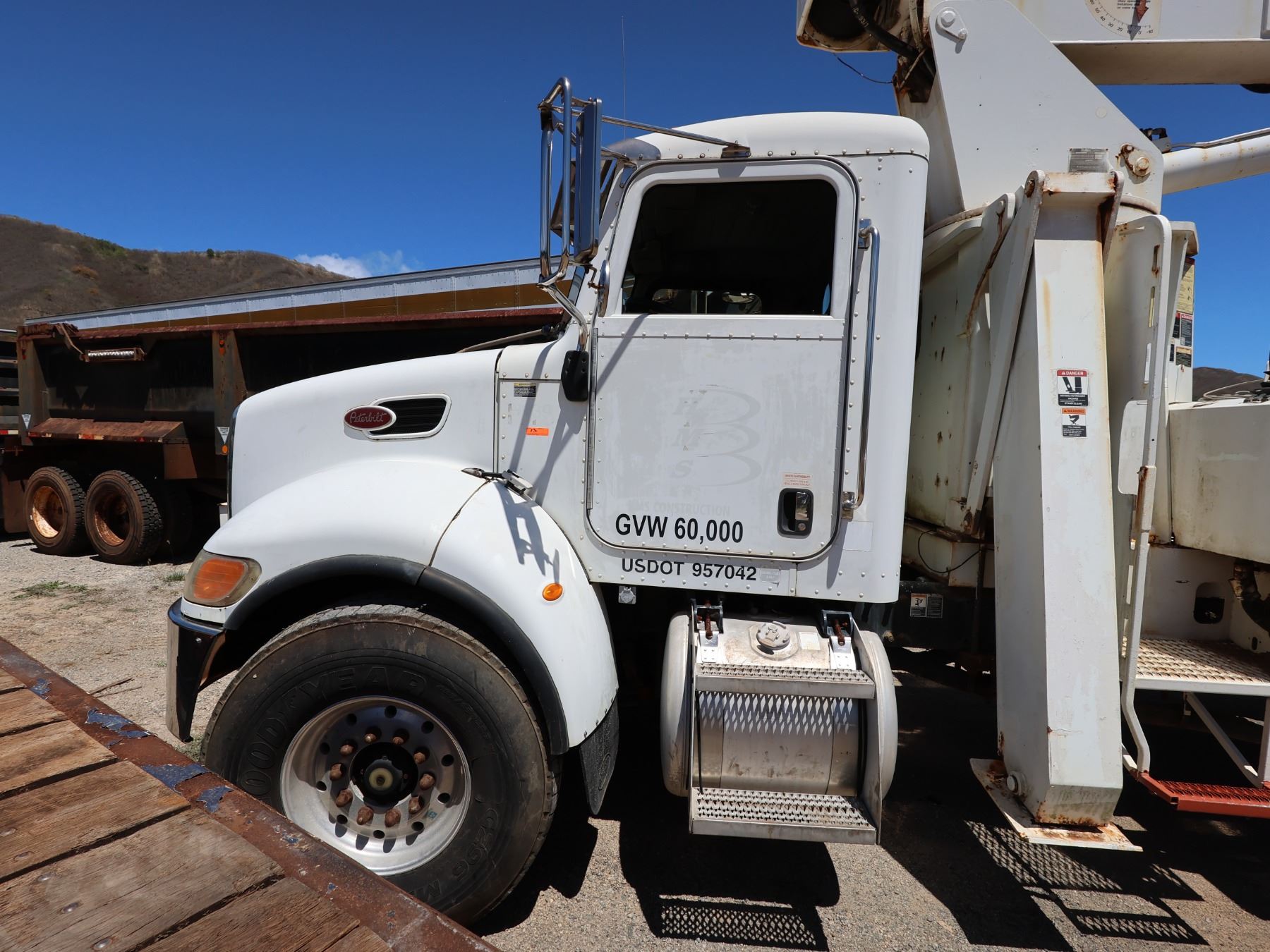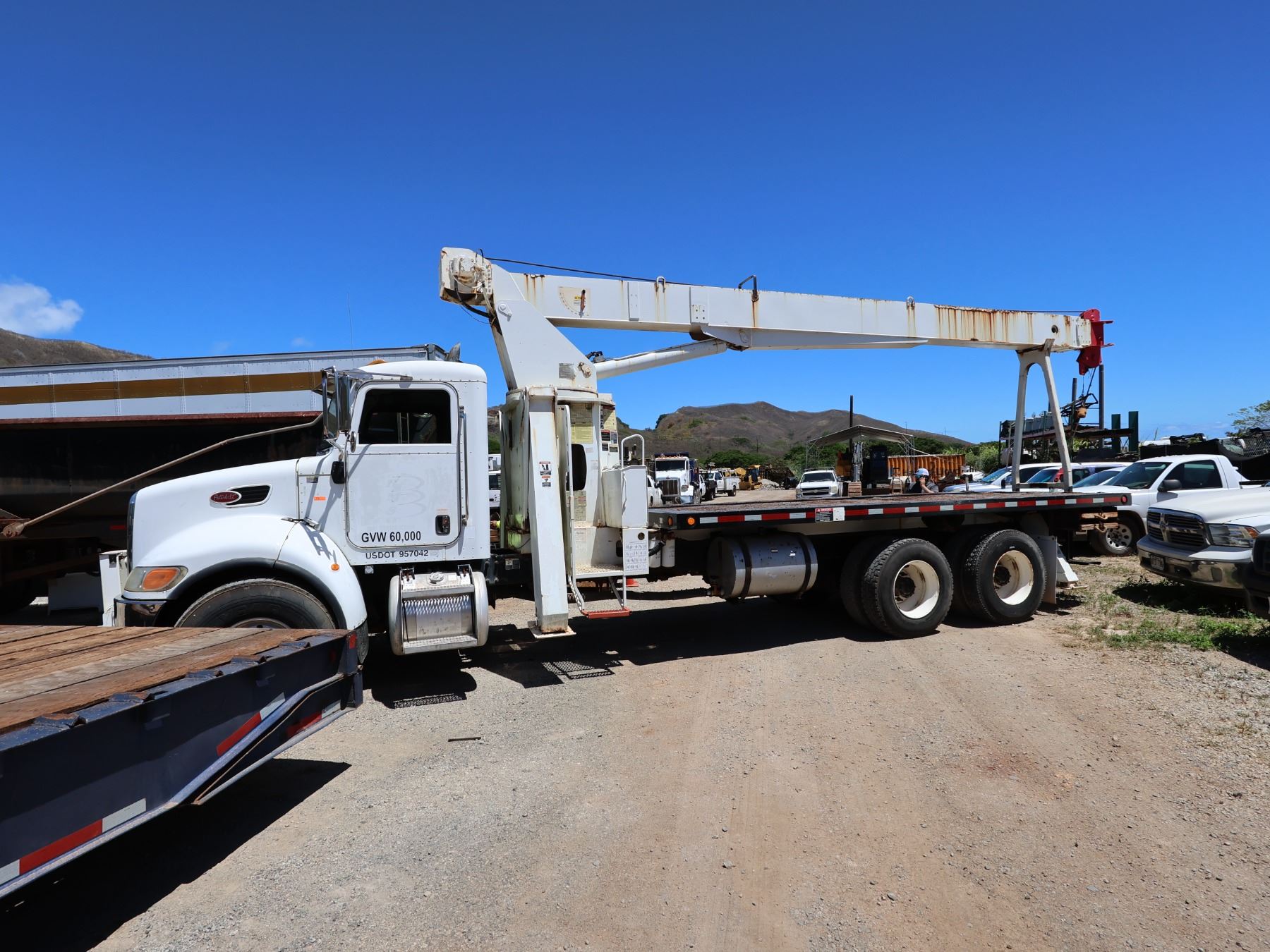 2007 Peterbilt Flatbed Truck w/ Paccar Engine, Altec Boom & Side Folding Jib, License 772TSY. Starts & Runs - See Video. The seller has noted that the batteries used to start and demonstrate this truck were borrowed from another machine and are not included in the sale. They may be used to move the truck to the winning bidder’s location but must then be returned to the seller.