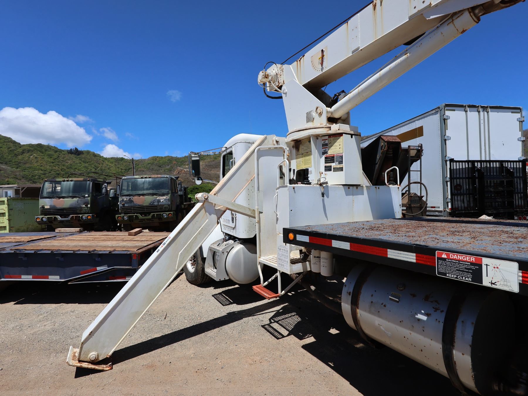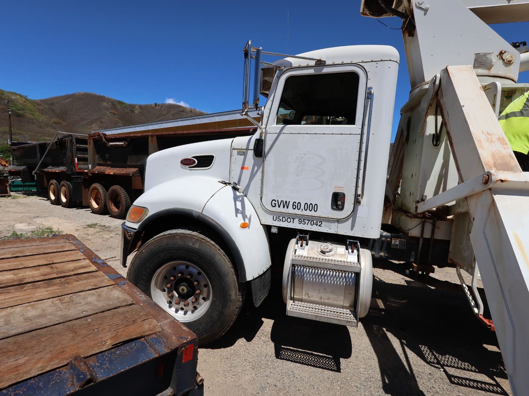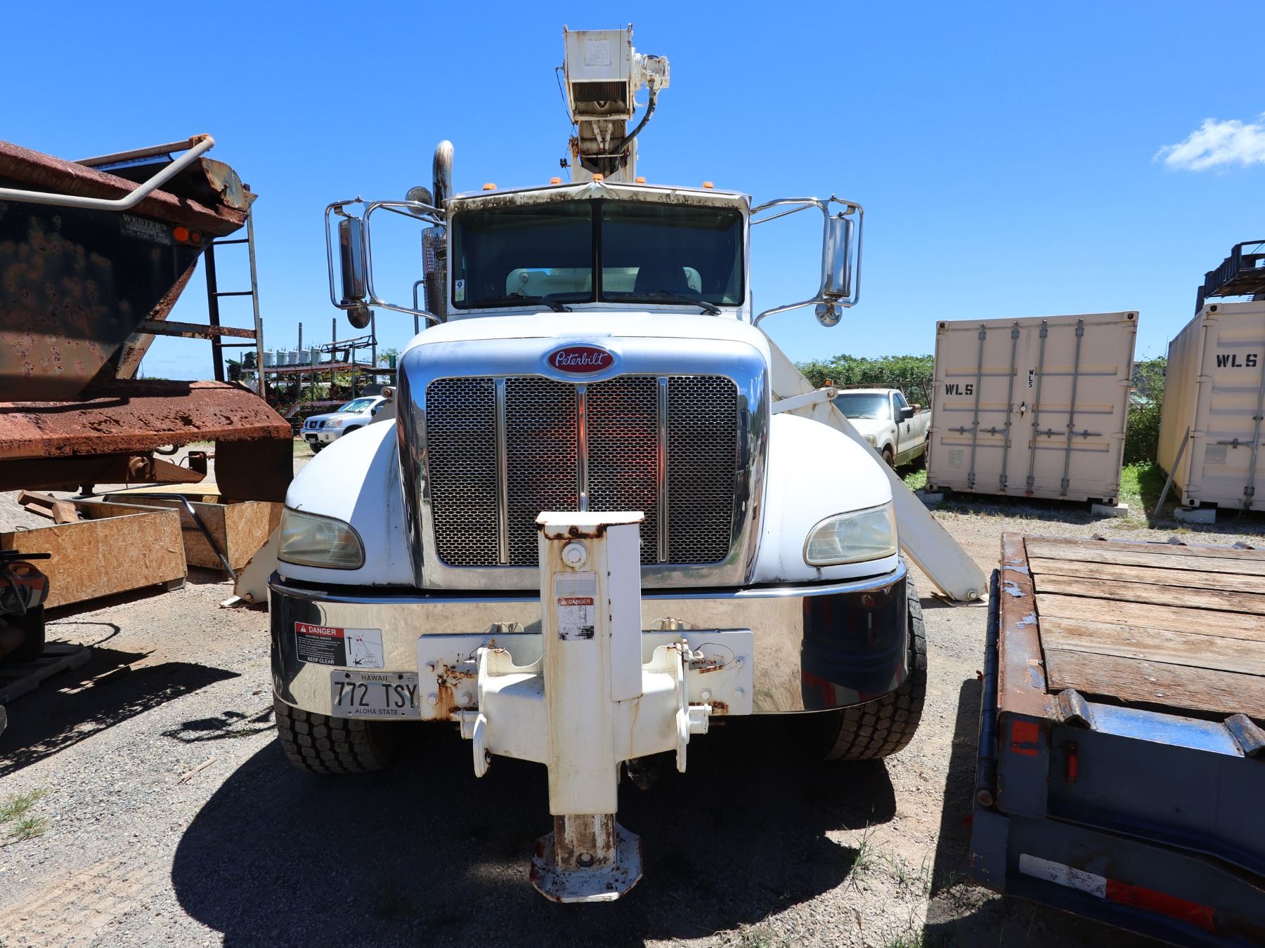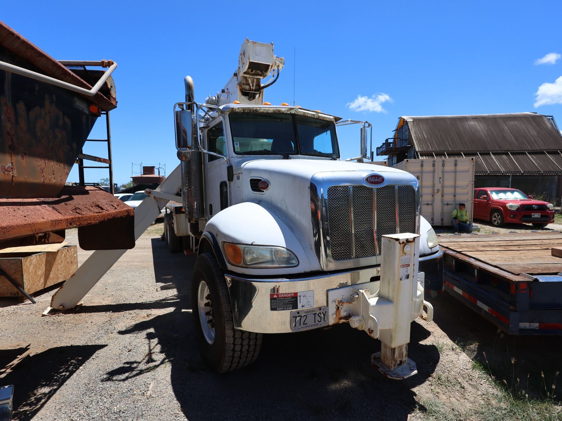 2007 Peterbilt Flatbed Truck w/ Paccar Engine, Altec Boom & Side Folding Jib, License 772TSY. Starts & Runs - See Video. The seller has noted that the batteries used to start and demonstrate this truck were borrowed from another machine and are not included in the sale. They may be used to move the truck to the winning bidder’s location but must then be returned to the seller.