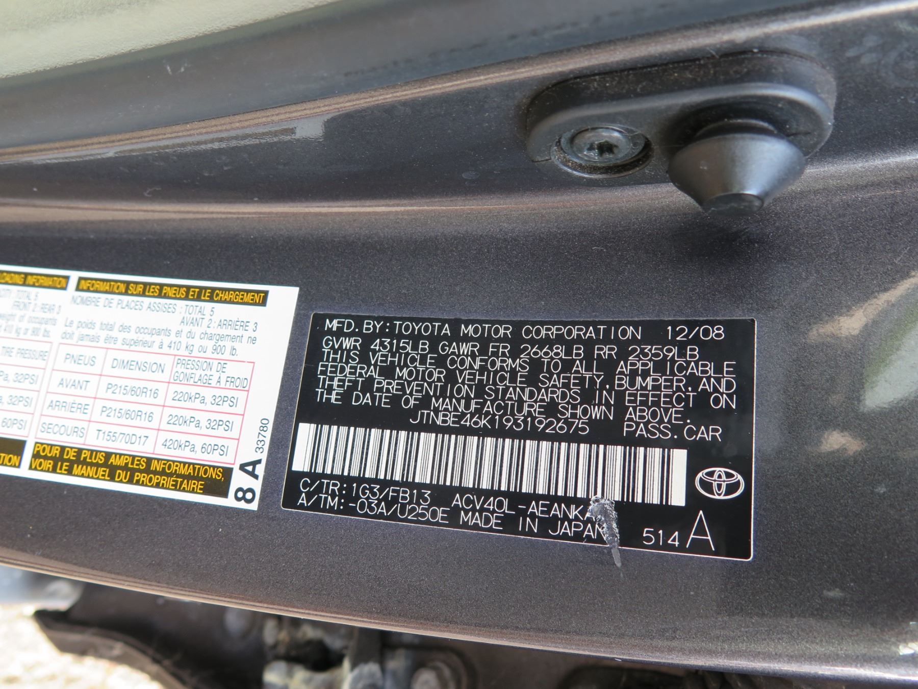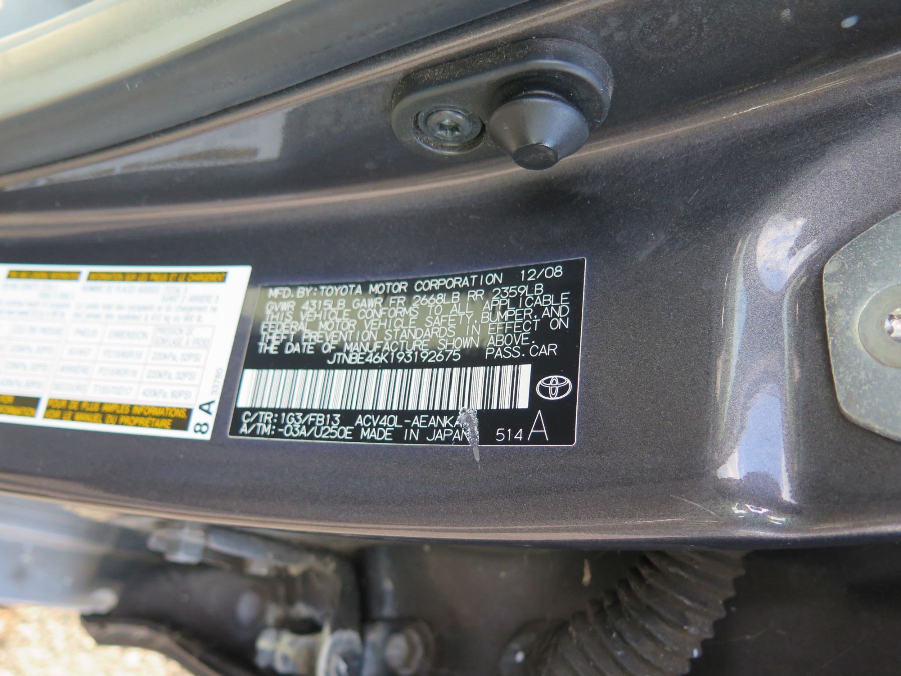 2009 Toyota Camry Sedan, 105369 Miles (runs & drives) VIN: JTNBE46K193192675. Deficiencies may exist that are not listed in the item description. The absence of any deficiencies does not mean that none exist. All vehicles are being sold "As Is" with no express or implied warranty of any kind, including but not limited to the item's safety, reliability, or suitability for its intended purpose. State of Hawaii, Dept. of Accounting & General Services (DAGS) employees and/or immediate family members are not eligible to bid. License plate has been removed by the State. These were all State vehicles that were exempt from registration. No back fees are owed. Title will be issued at the time of pick-up.