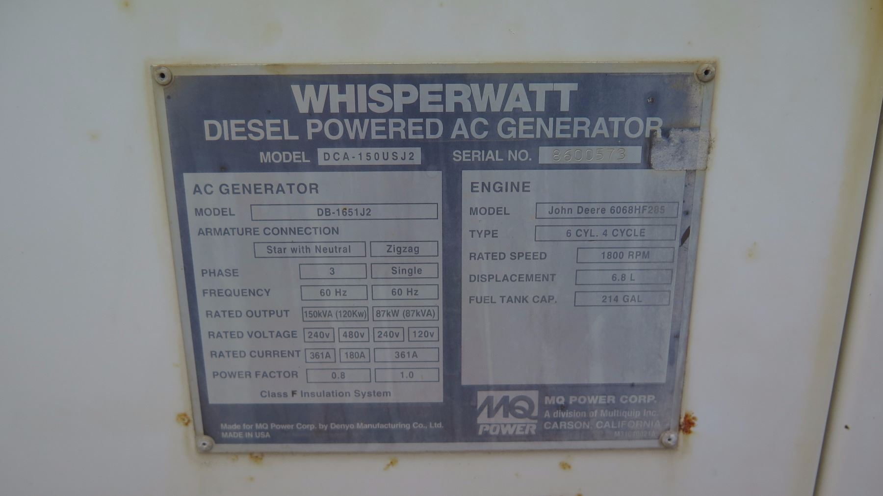 2010 MQ POWER MODEL DCA150USJ DIESEL GENERATOR, 120KW, 9092 HOURS
