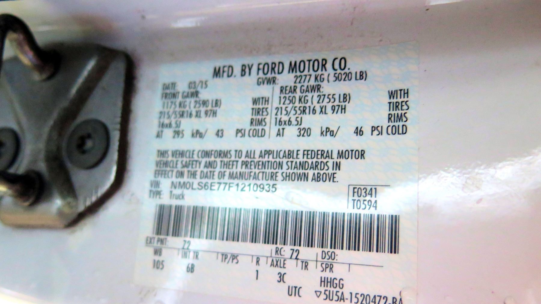 2015 Ford Transit Van (Runs Drives See Video), Lic. 293TVY, Title on Order