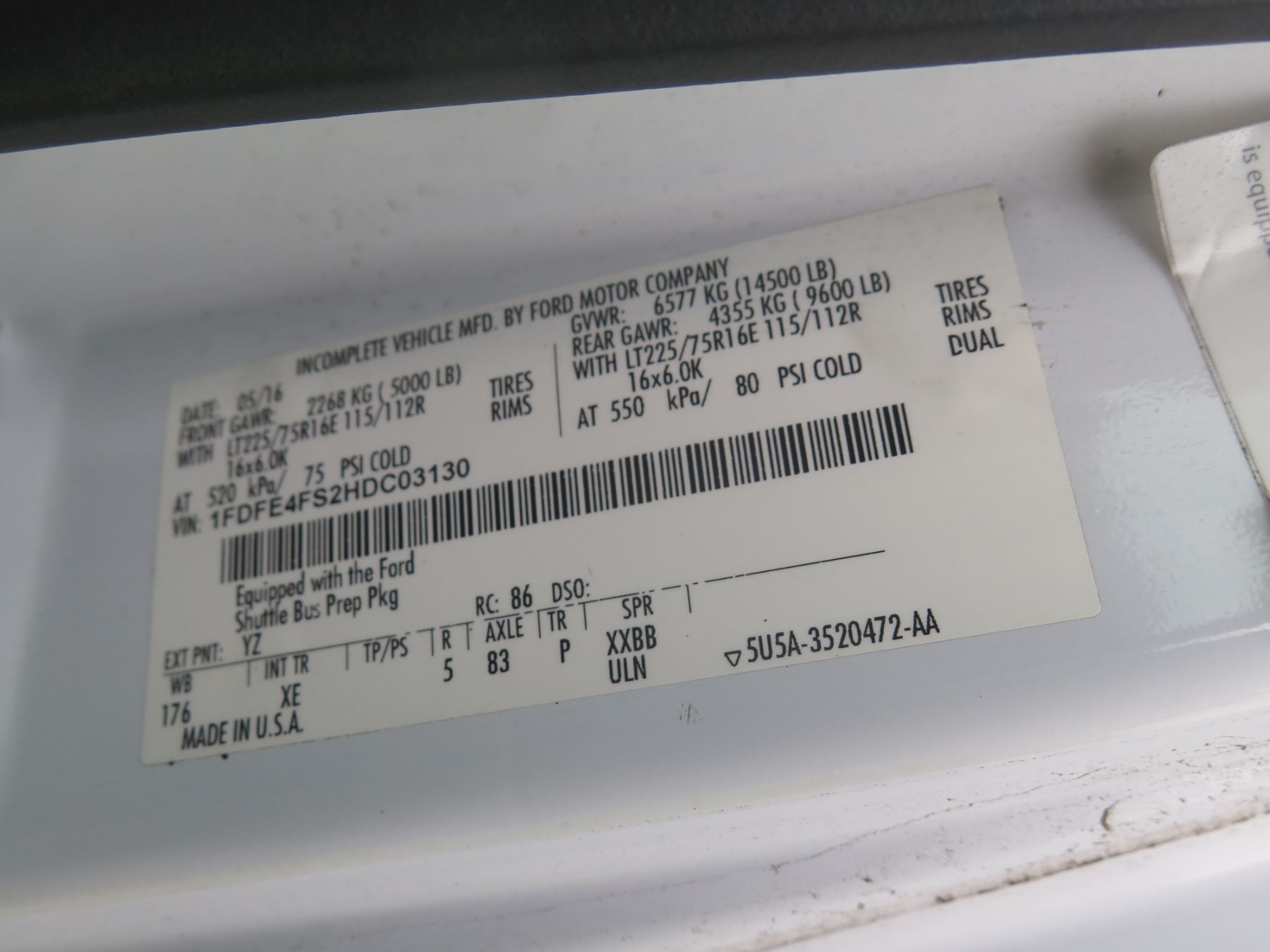 2016 Ford E450 25-Passenger Mini Bus Diamond Coach. Odometer reads 95606 miles. Lic. plate SYV075. VIN 1FDFE4FS2HDC03130.