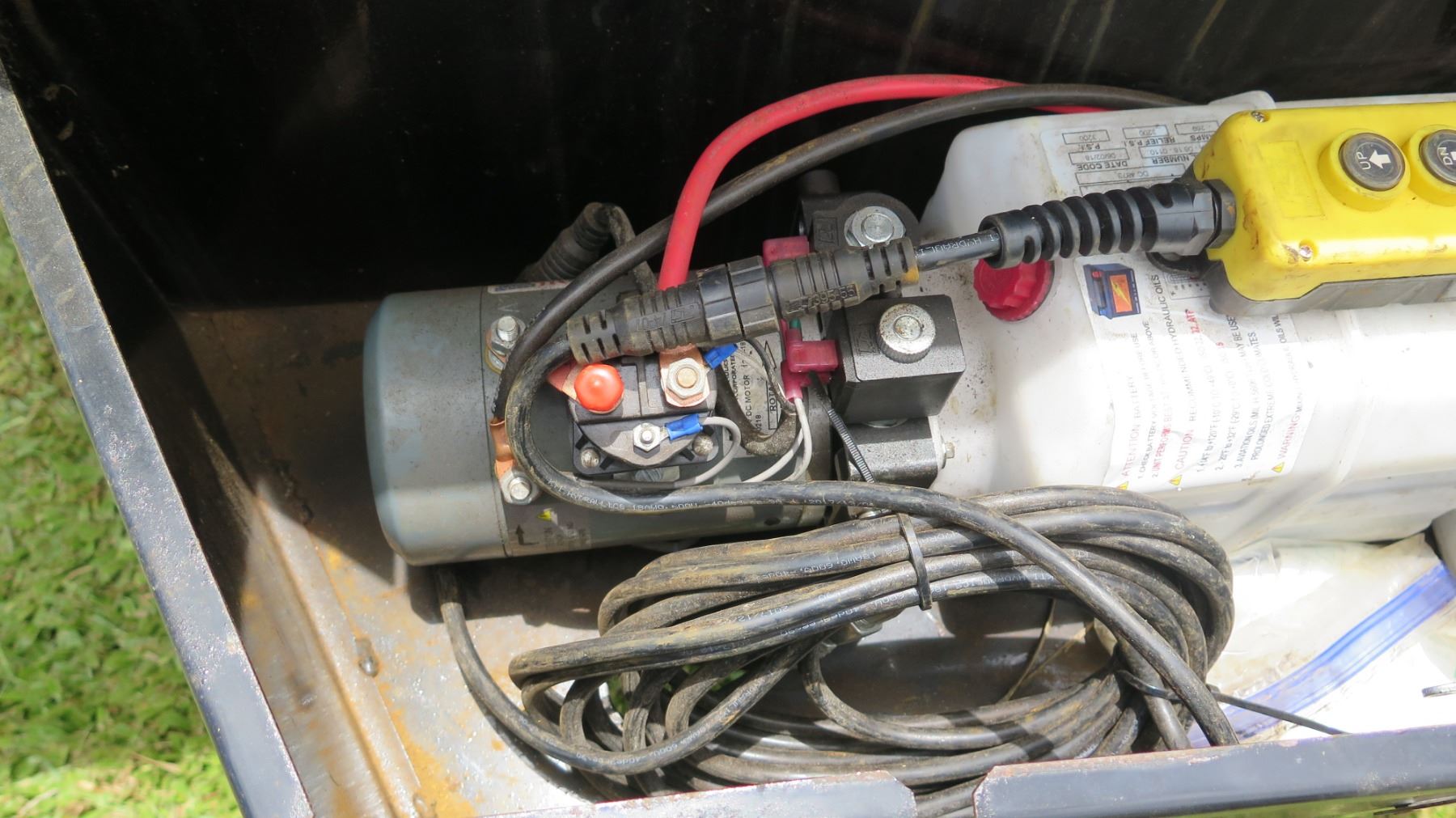 Locking Tool Box with Battery, Charger & Tester, Hydraulic Pump and Dump Remote.