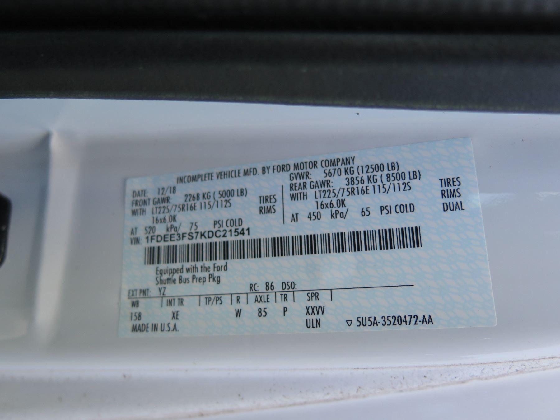 2019 Ford E350 Diamond Coach 14-Passenger Mini Bus w/ Spare Parts in the Rear Luggage Compartment. Odometer reads 25787 miles. Lic. plate TWP383. VIN 1FDEE3FS7KDC21541.
