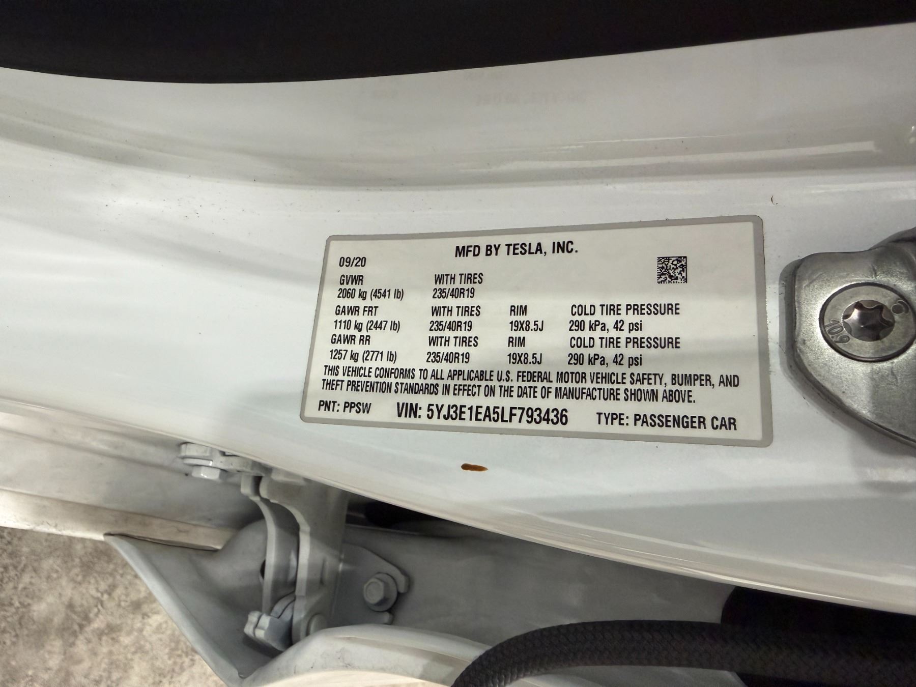 2020 Tesla Model 3 Sports Electric Sedan, 26781 Miles, Lic. 921P (Starts & Runs)