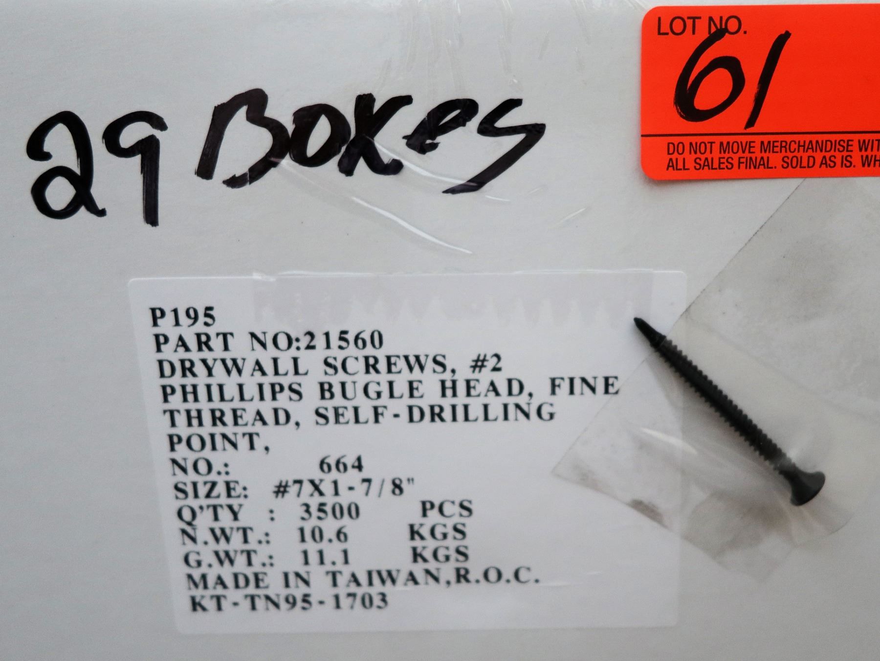 29 Boxes #7x1-7/8" Drywall Screws, Phillips Bugle Head - Total Screws = 101,500