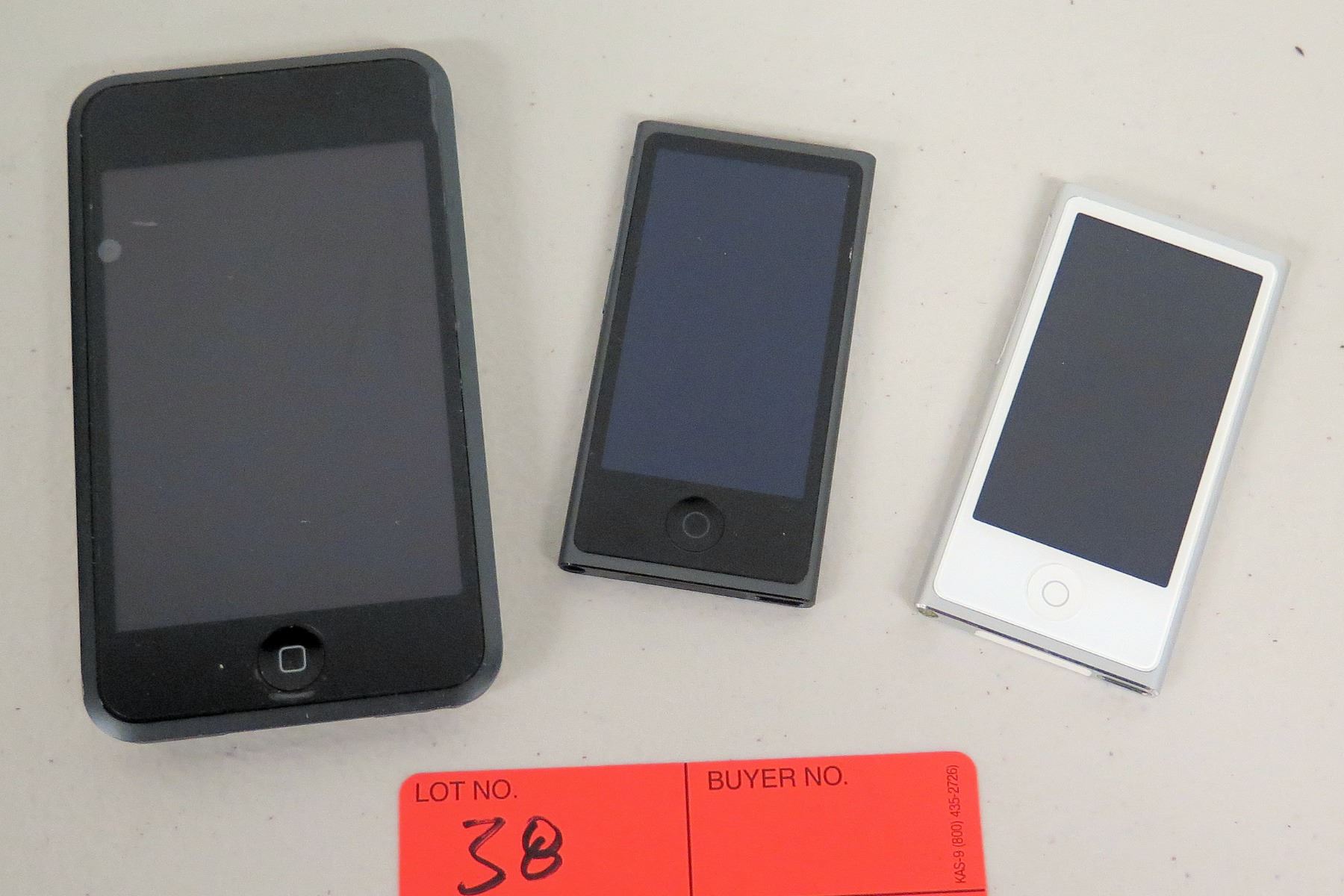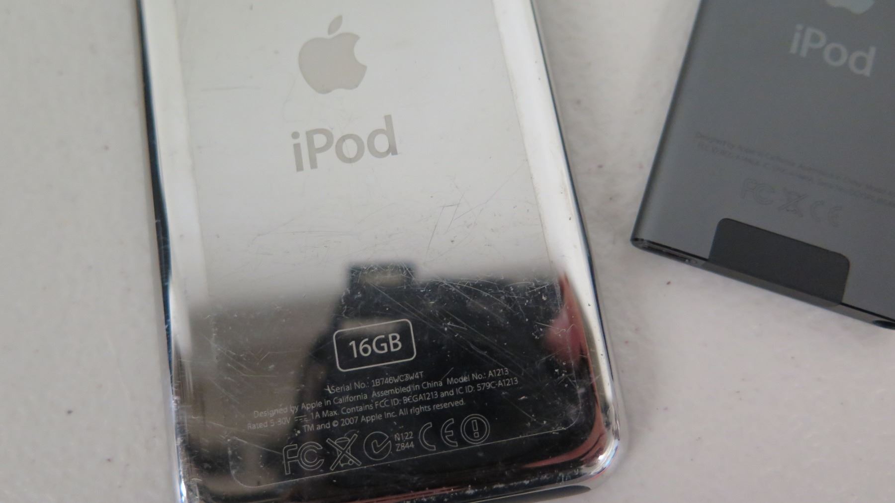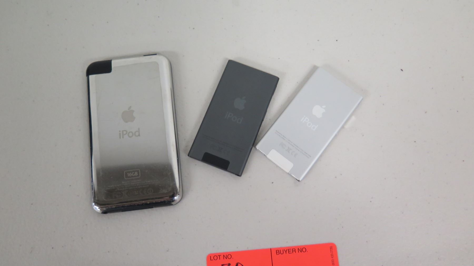 3 Apple iPods (1 is 16GB Model A1213, 2 are Model A1446)