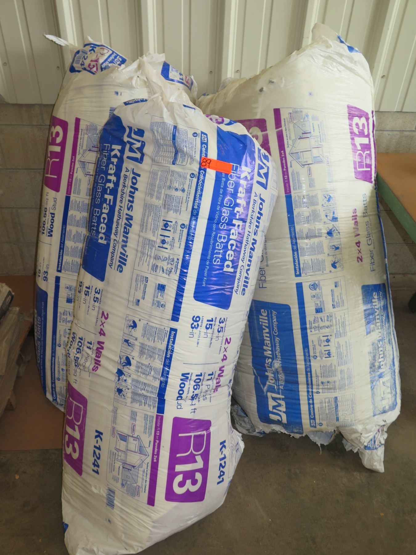 3 Bags of Johns Manville Fiber Glass Batts Insulation