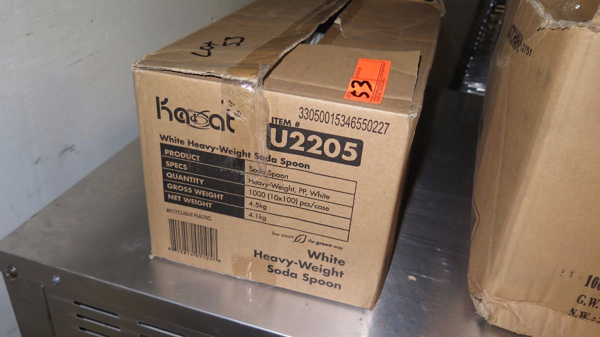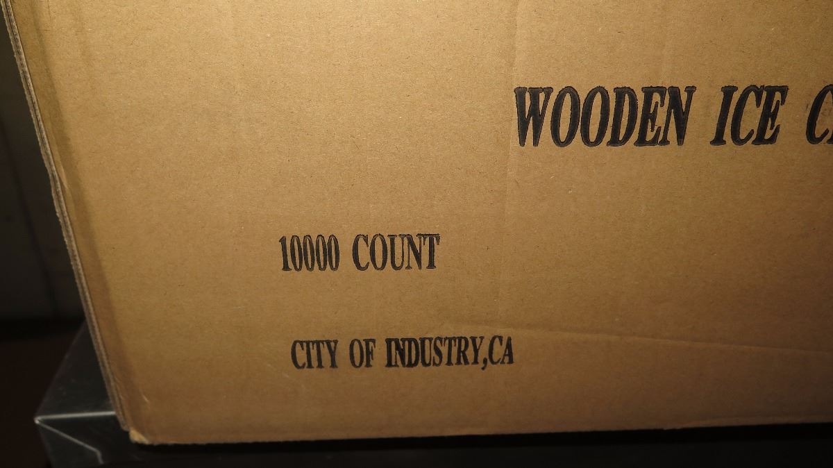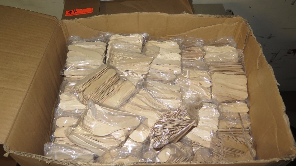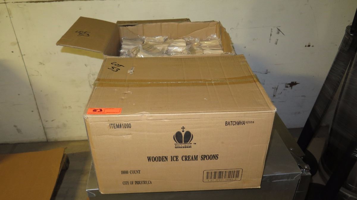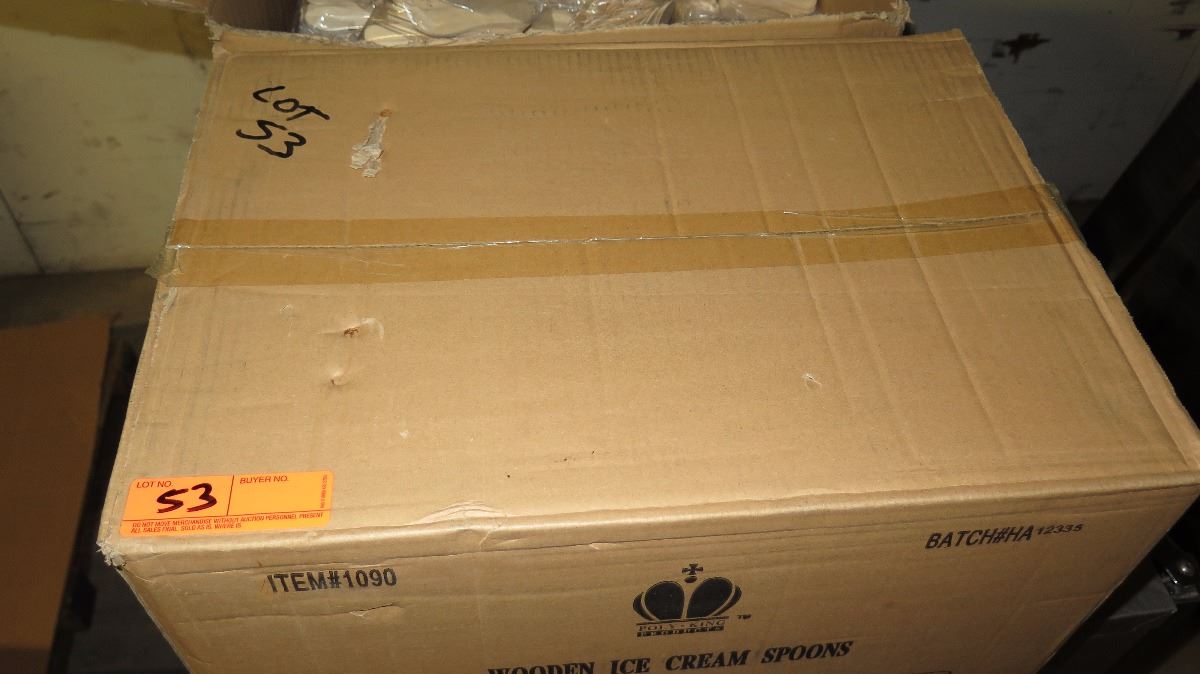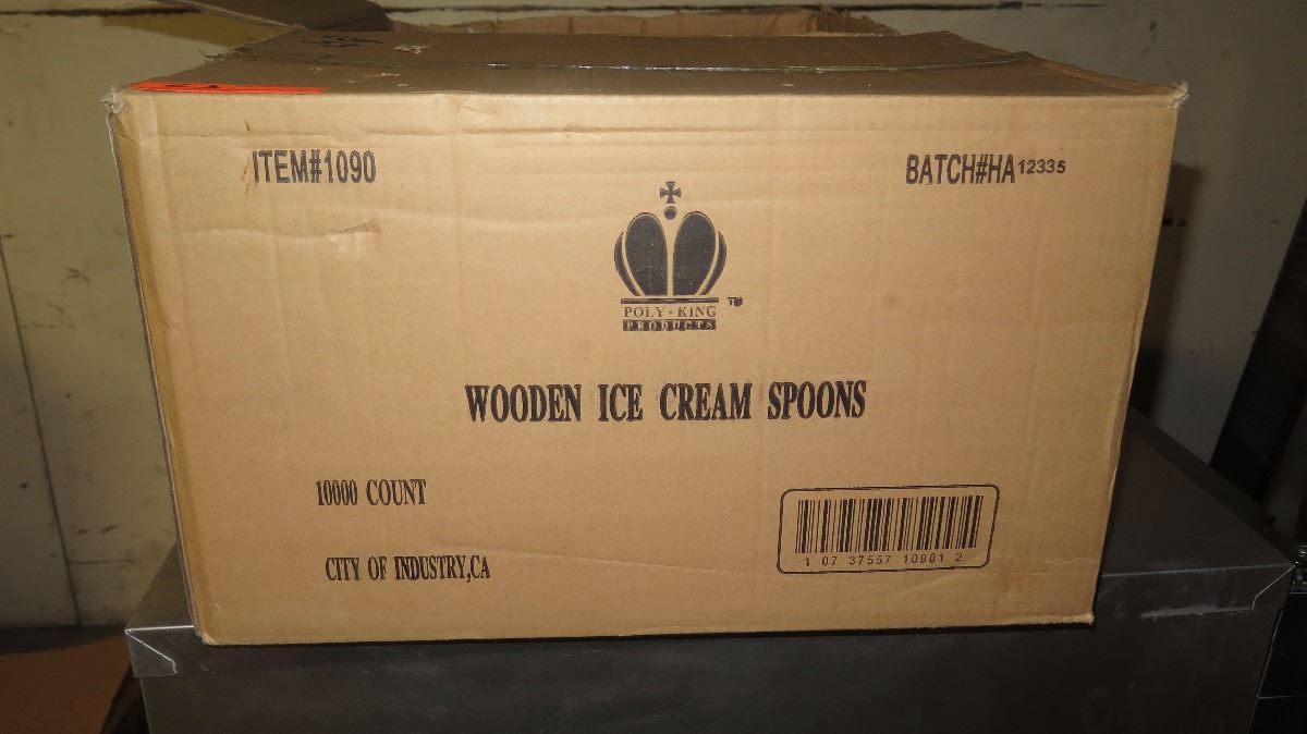 3 Cases Wooden Ice Cream Spoons - 1 case sealed (1000 qty), 2 cases opened (unknown qty)
