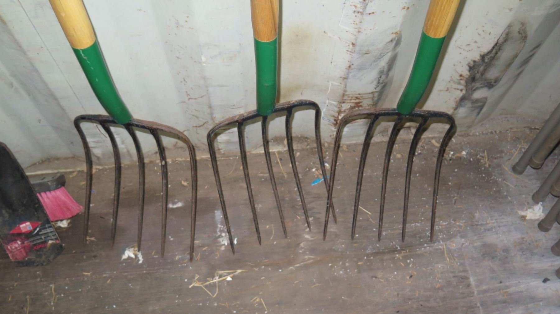 3 Pitchforks, Shovel, Broom, Sledge Hammer