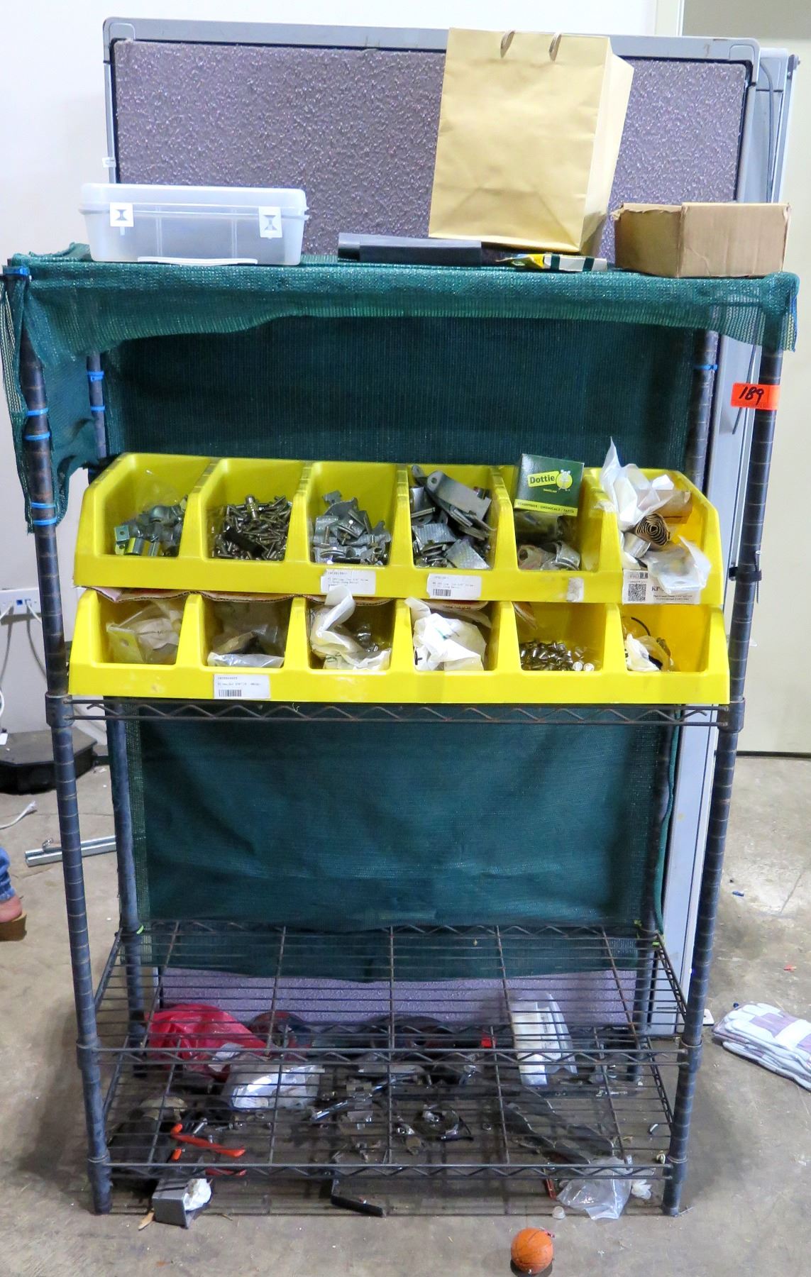 3 Tier Metal Shelf w/ Contents - Brackets, Bolts, Dottie Tools, etc