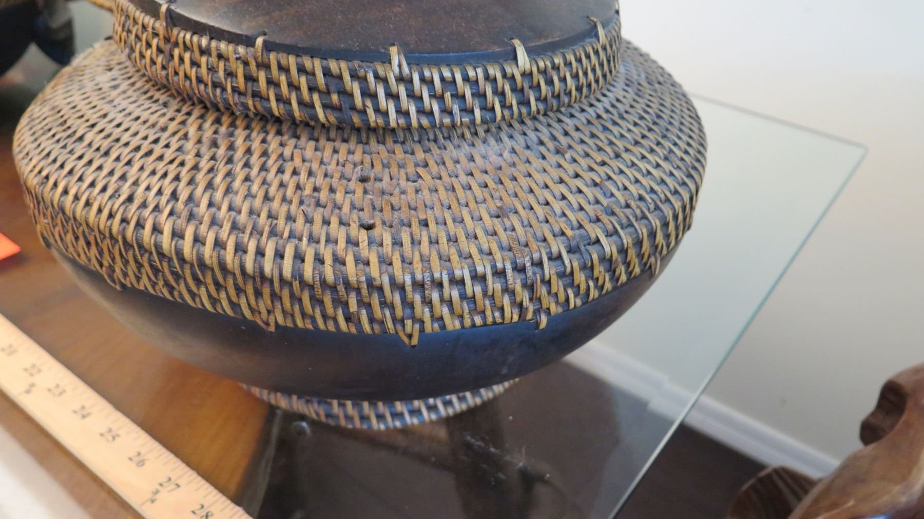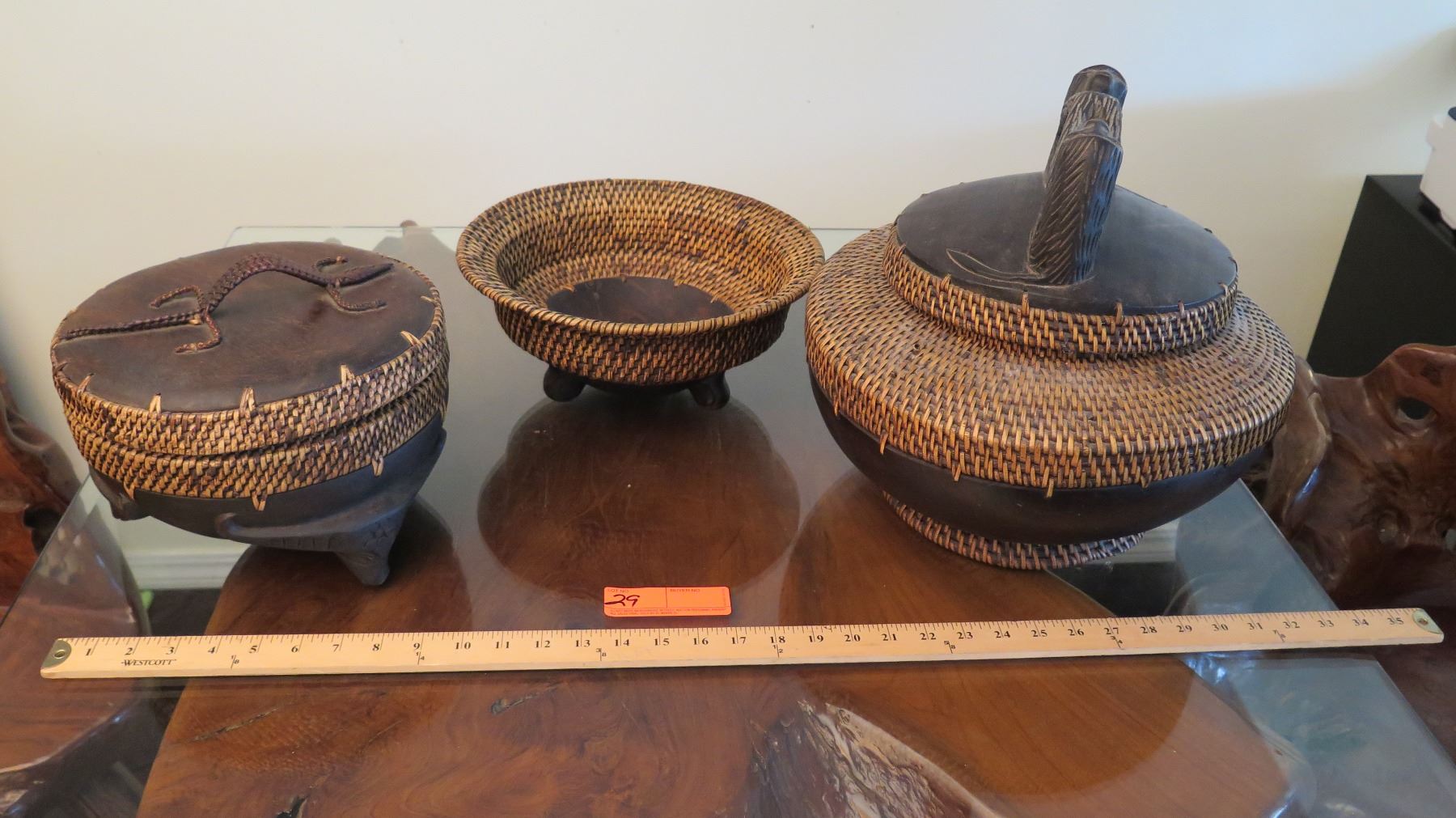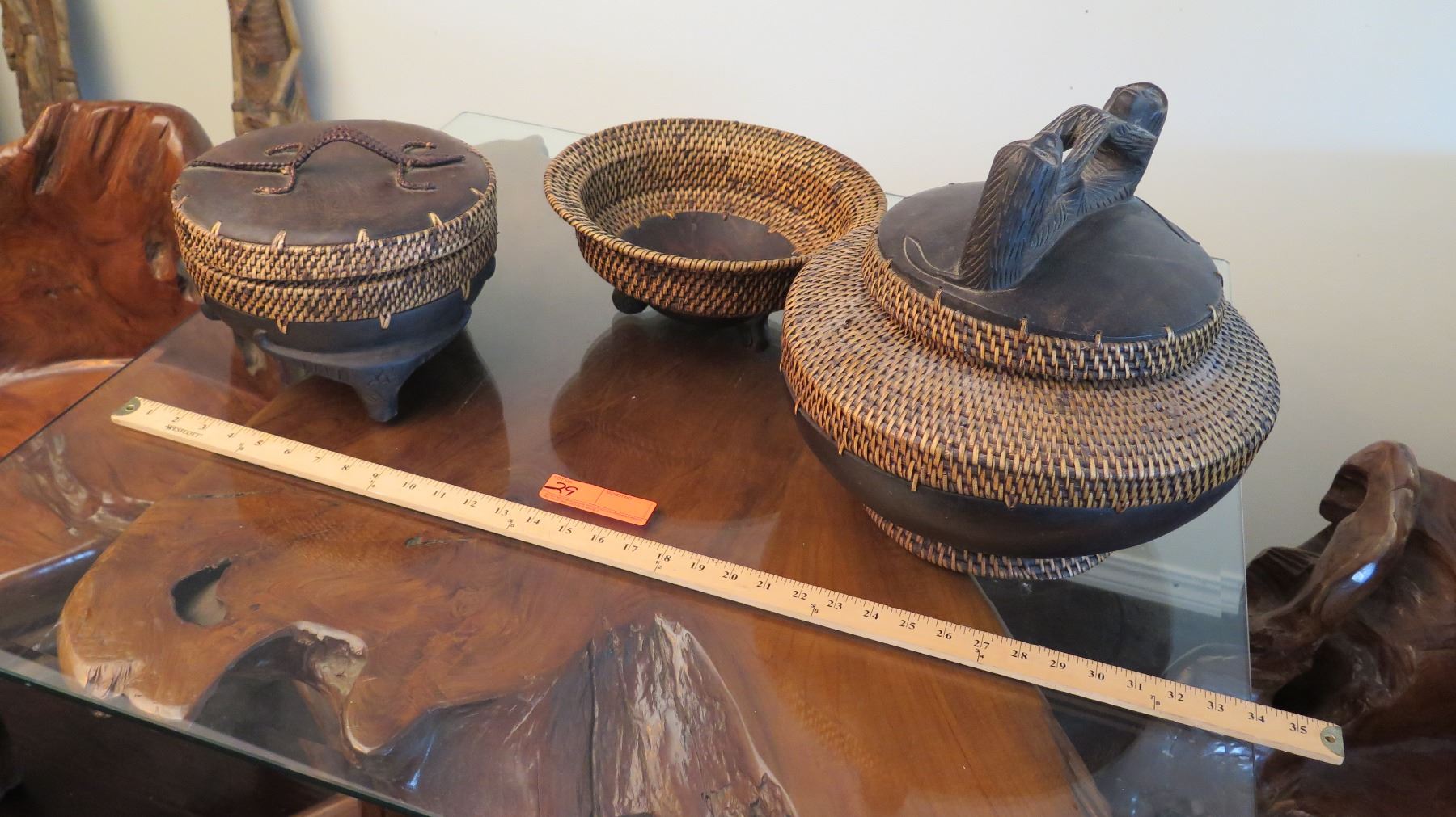 3 Woven Spice Baskets w/Lids (largest is approx. 16" wide)