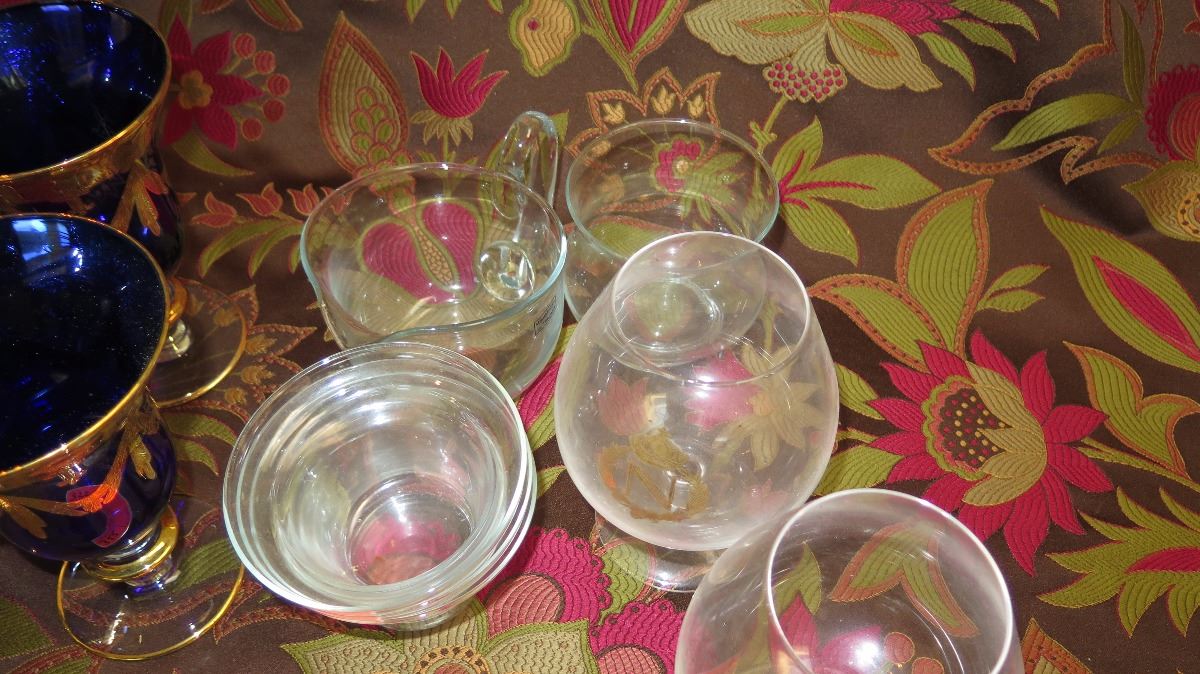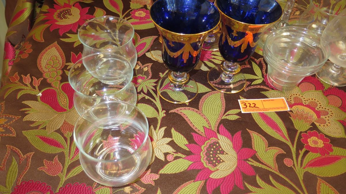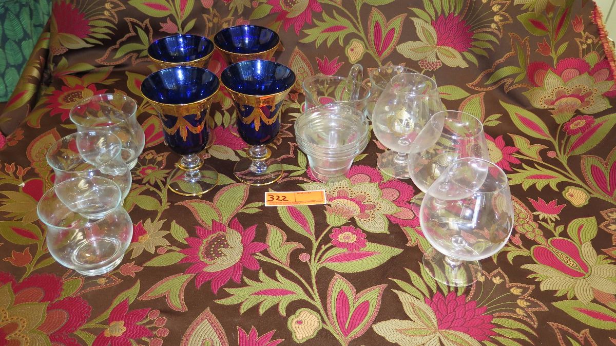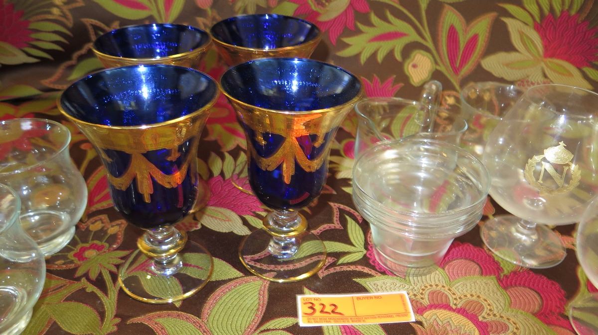 4 Cobalt Blue Stemware w/Swag Gilt Border, 11 Misc. Glassware