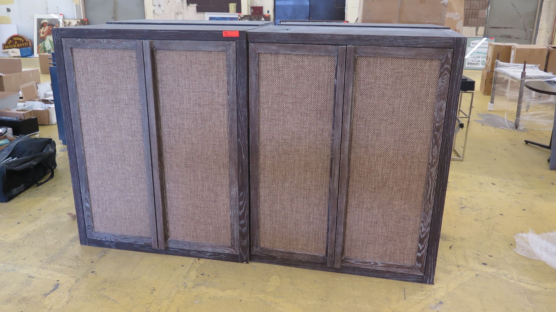 4-Door Tall Wooden Cabinet w/Textured Panels, Dark Wood Frame, 2 Pieces (each piece 43.5" W, 24" D,