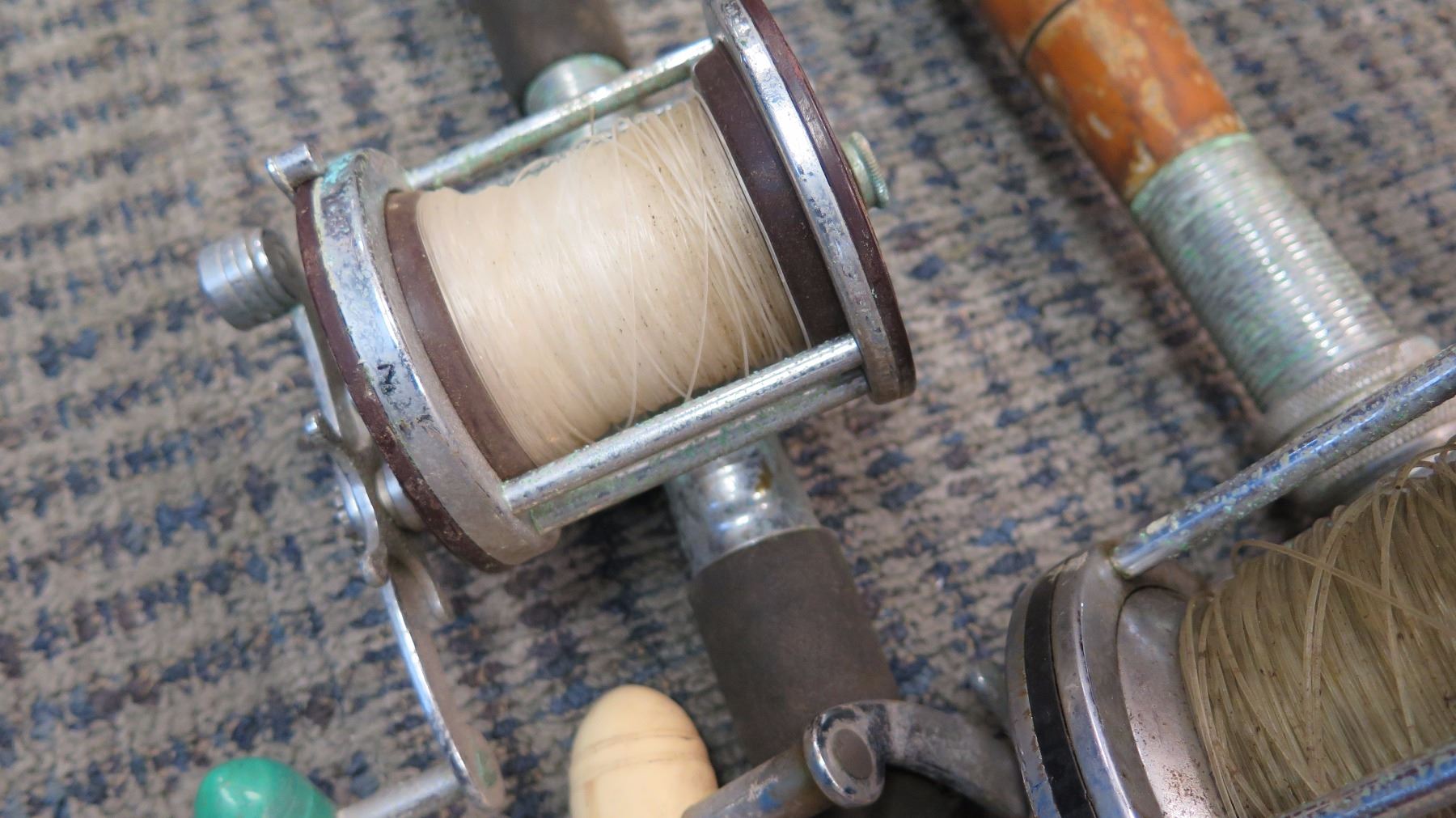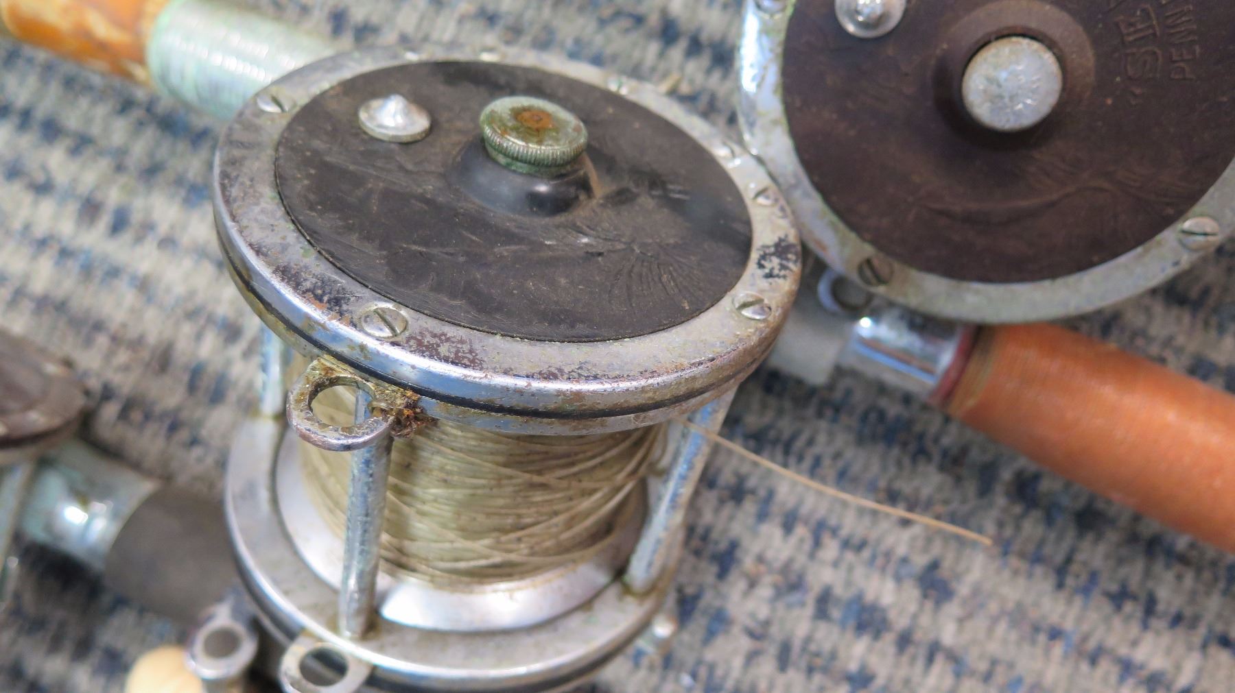 4 Fishing Rods w/ 2 Penn Reels - Rods are Various Lengths (these were stored outdoors, may need repair)