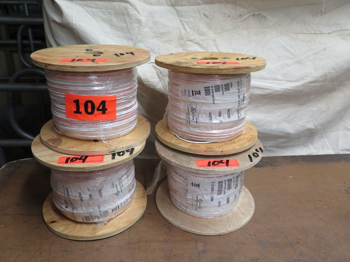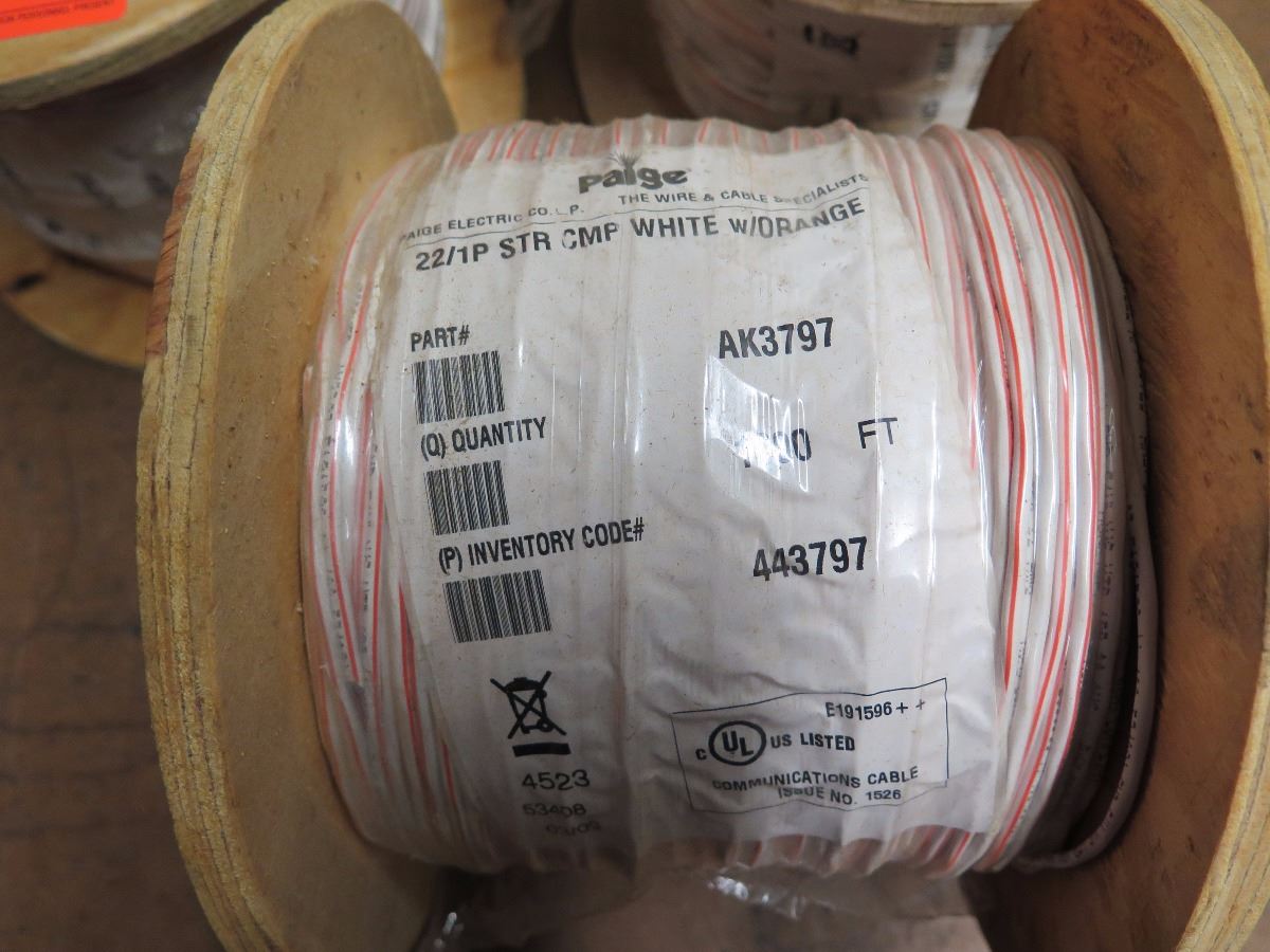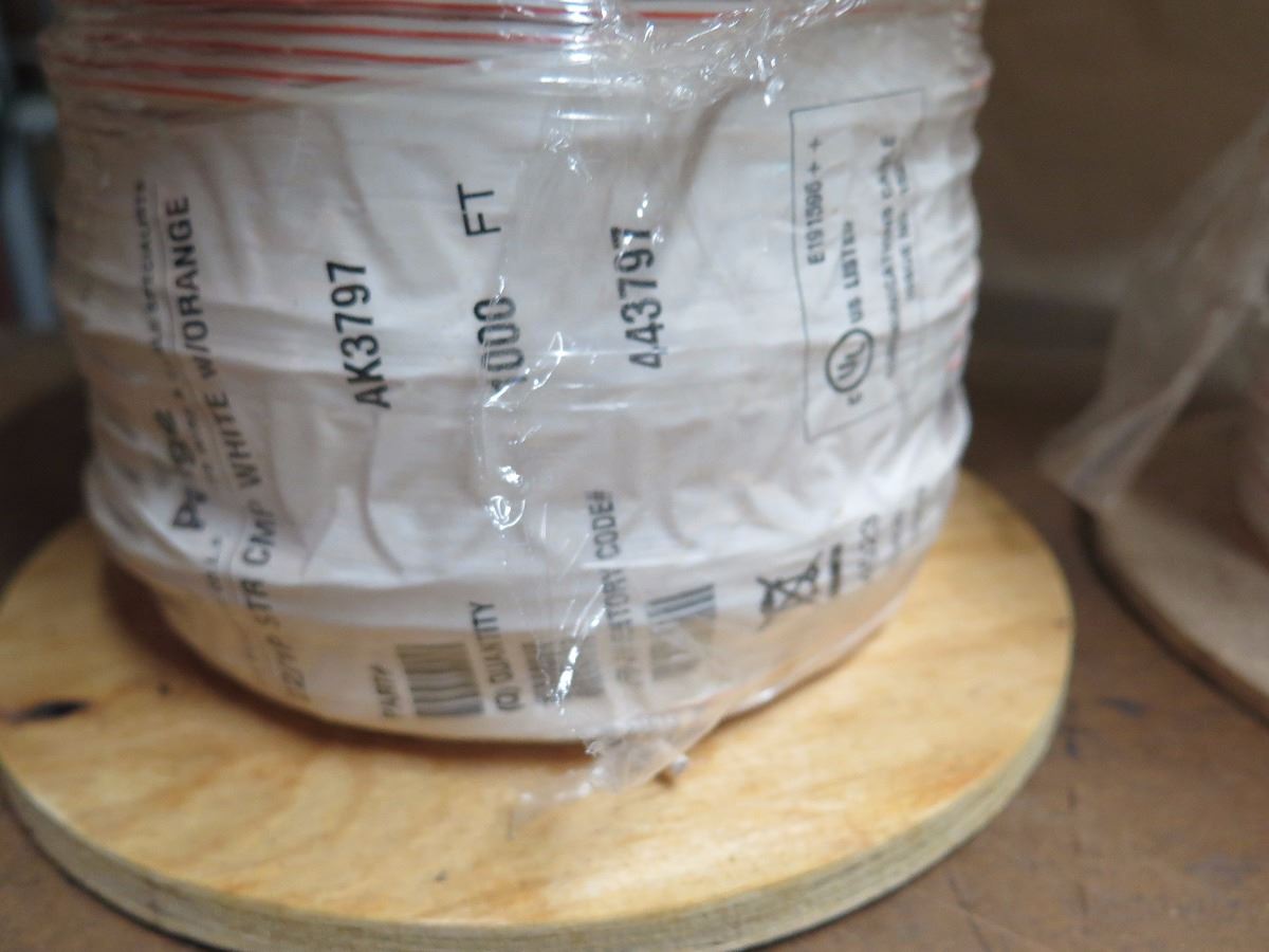 4 New Spools: 22/1P STR CMP White/Orange Comm Cable - AK3797 (1000 ft spool)