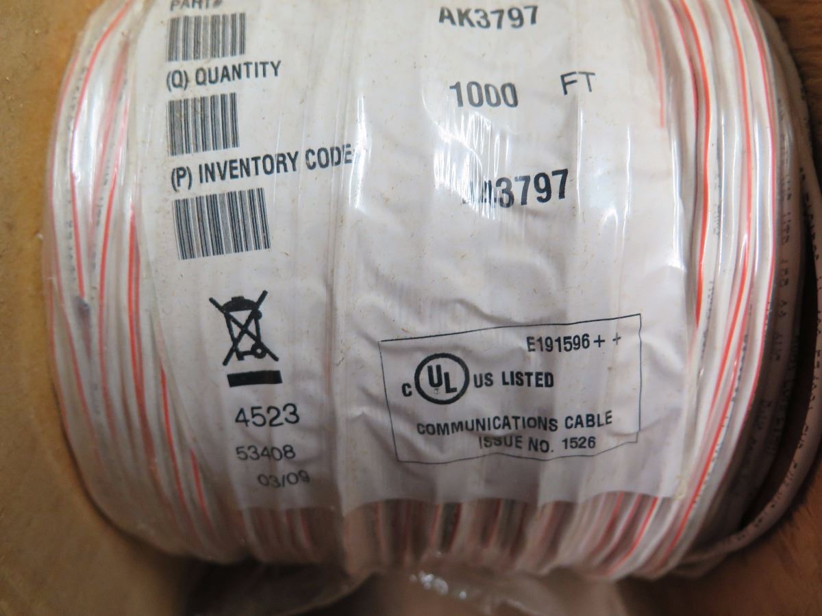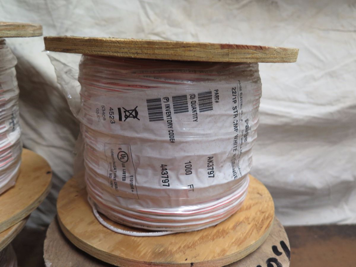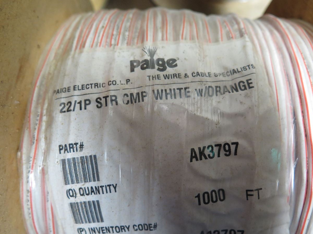 4 New Spools: 22/1P STR CMP White/Orange Comm Cable - AK3797 (1000 ft spool)