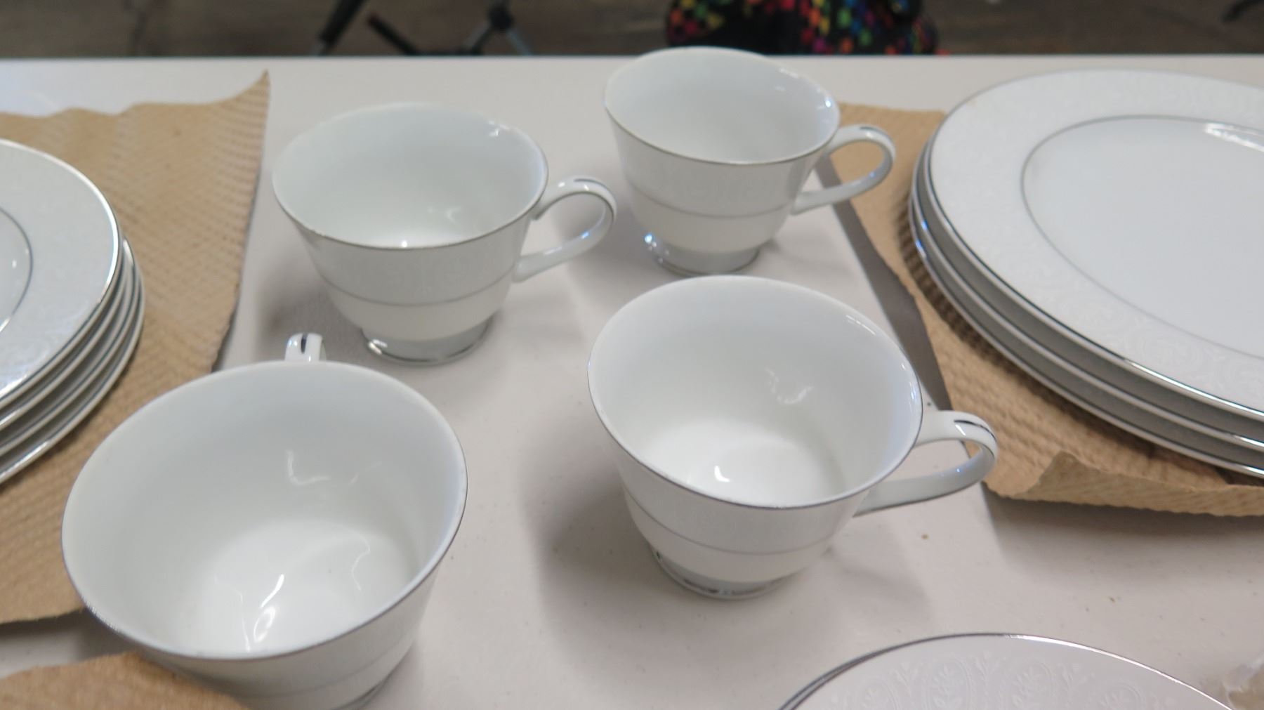 4-Place Setting China (Made in Japan), White w/ Silver Border (1 of salad & 1 dinner plate missing)