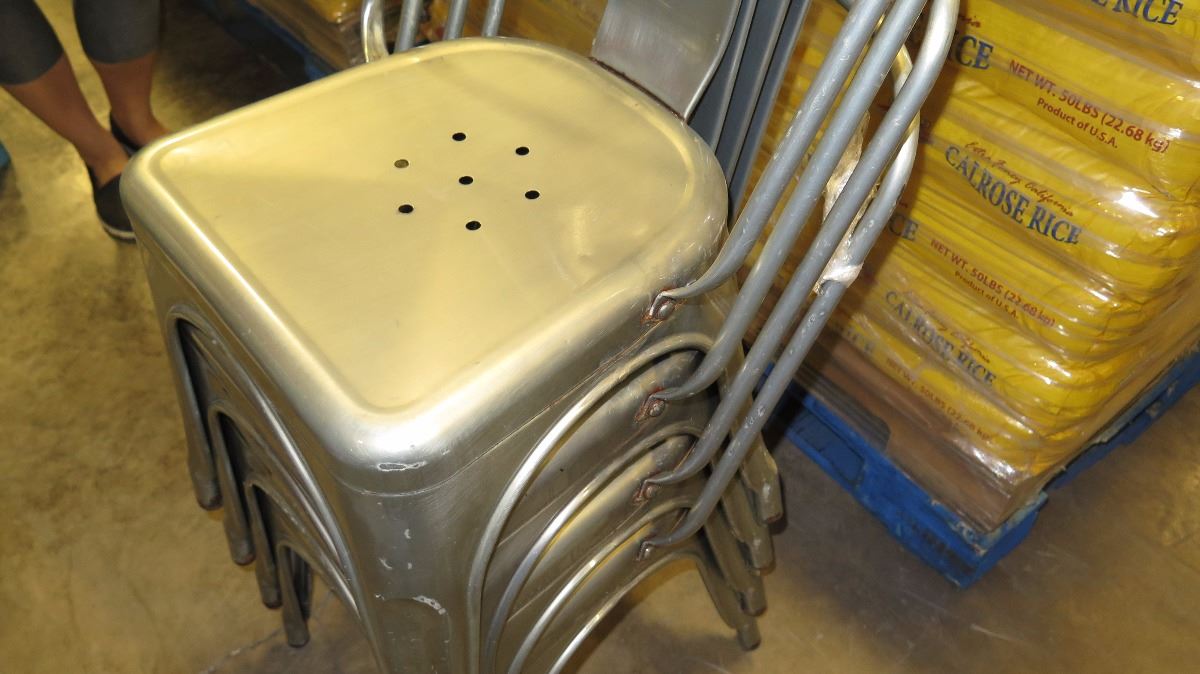 4 Unused Retro Style Gray Metal Chairs from Magnolia Cafe & Bakery