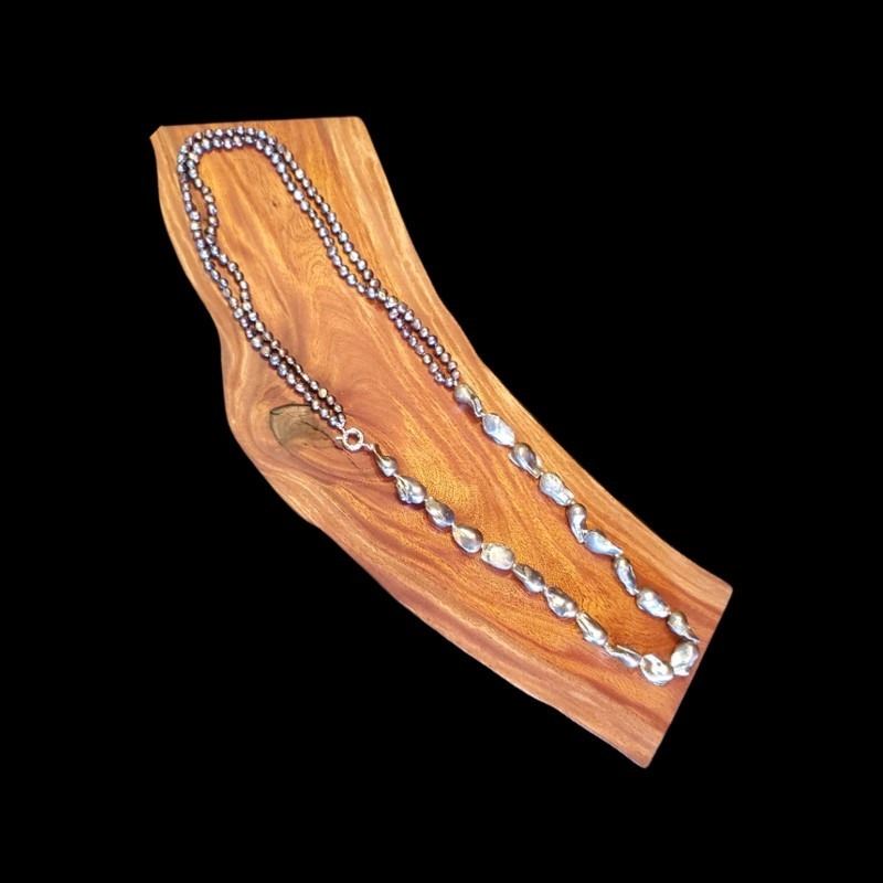42” Long, Blue Chinese Freshwater Pearl Necklace