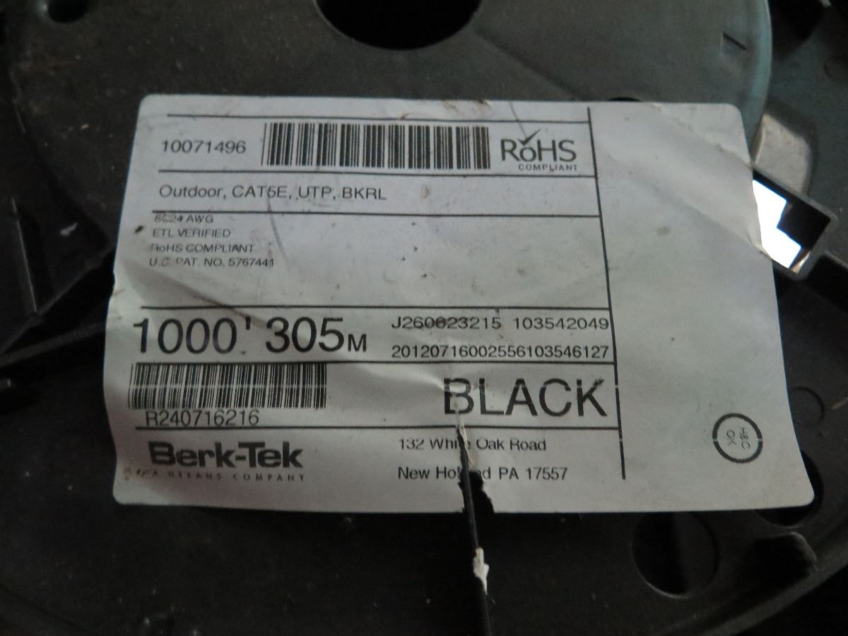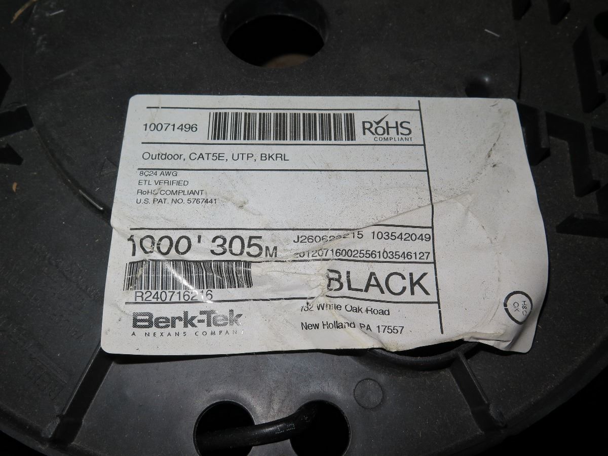5 New Spools: CAT5E UTP Outdoor Cable Black - Berk-Tek 10071496 (1000 ft spool)