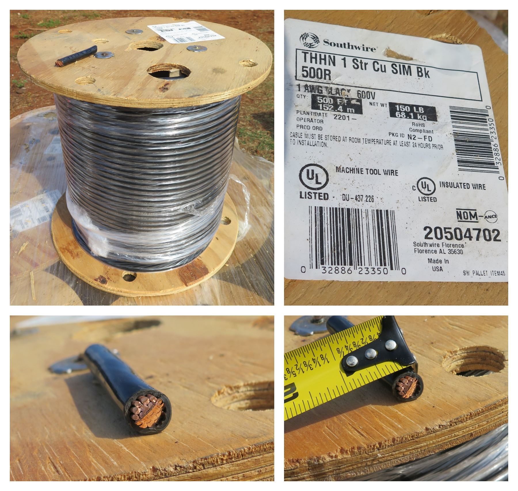 500ft Spool of Southwire Wire- 1awg Black 600v