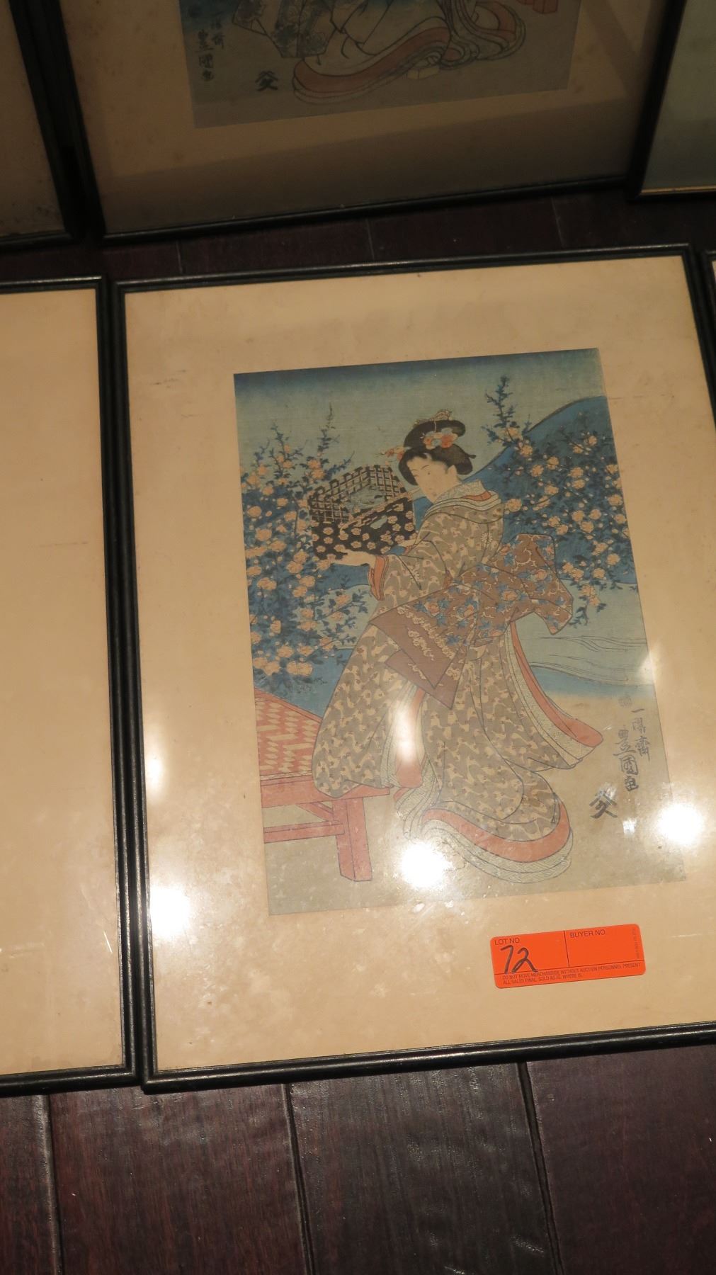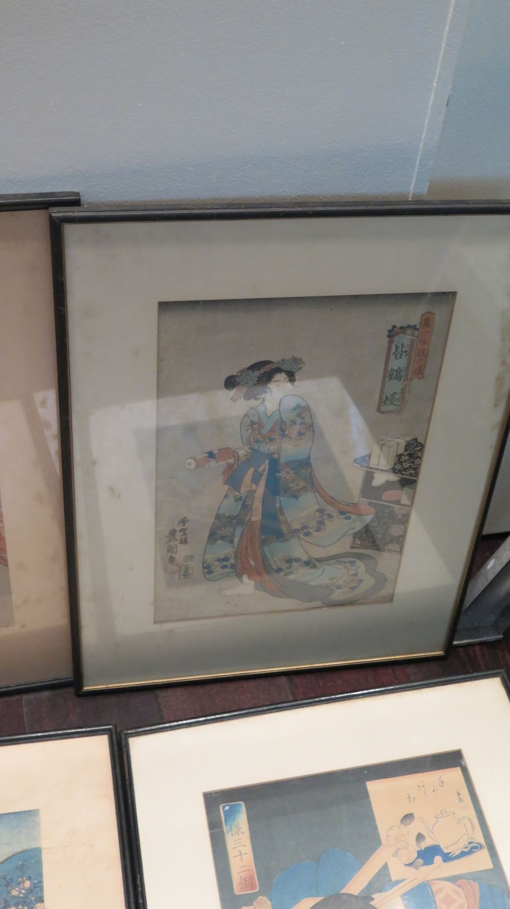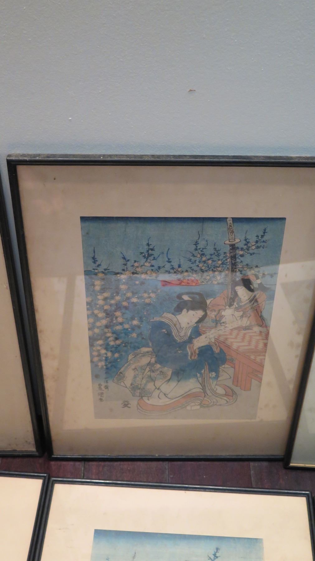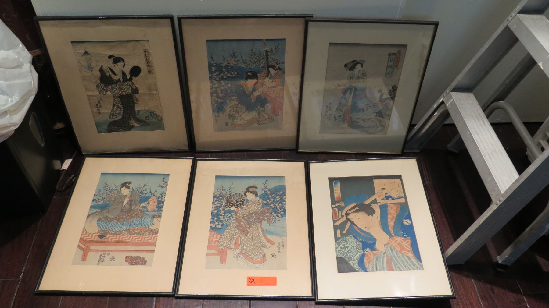 6 Framed Japanese Wood Block Prints 15.5" x 20.5" (some staining and age wear)