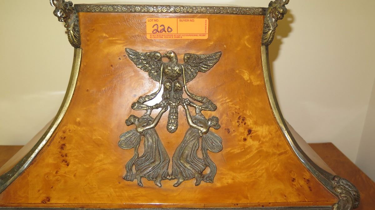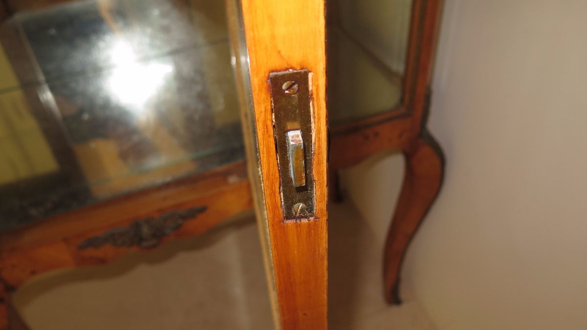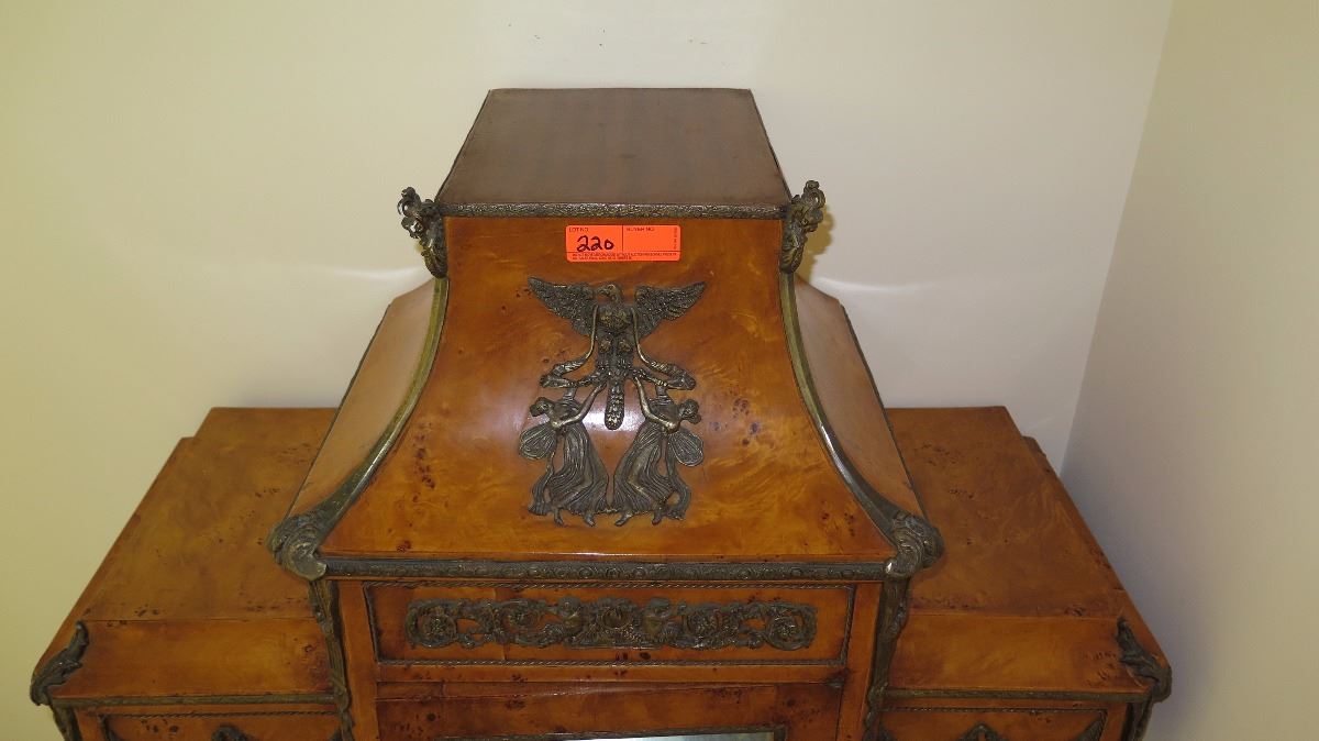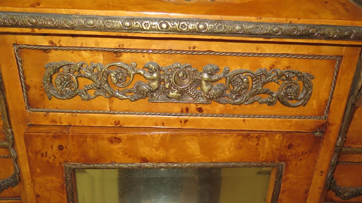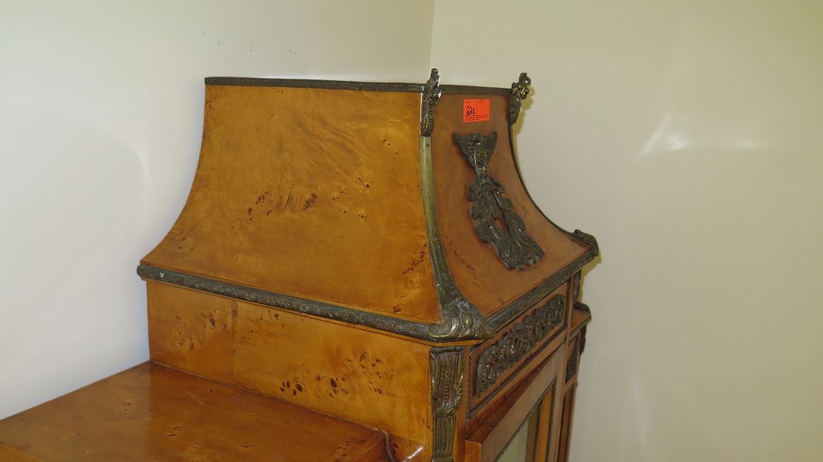 6-Legged Burl Wood Glass Vitrine Cabinet w/Gilt Swag Ornamentation 41X19X65