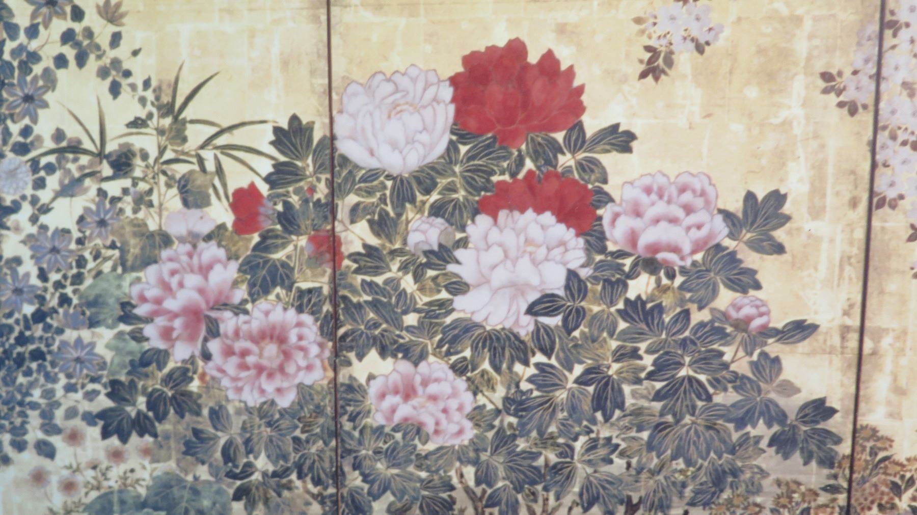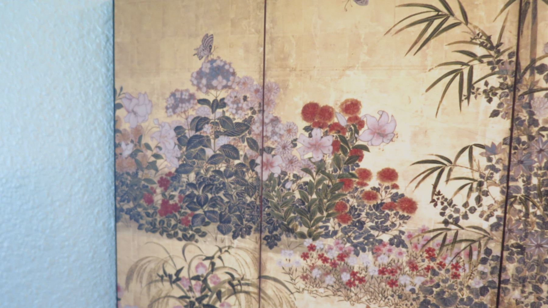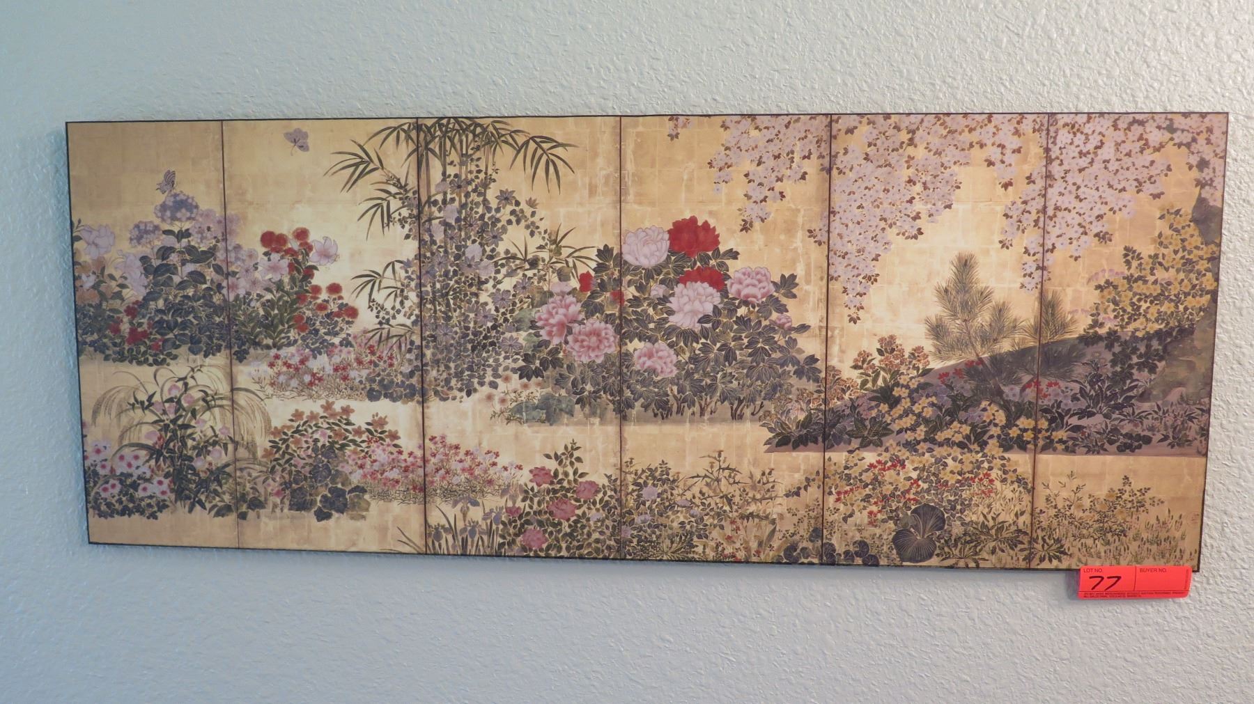 6-Panel Oriental Screen, Floral Motif, 36”x14”