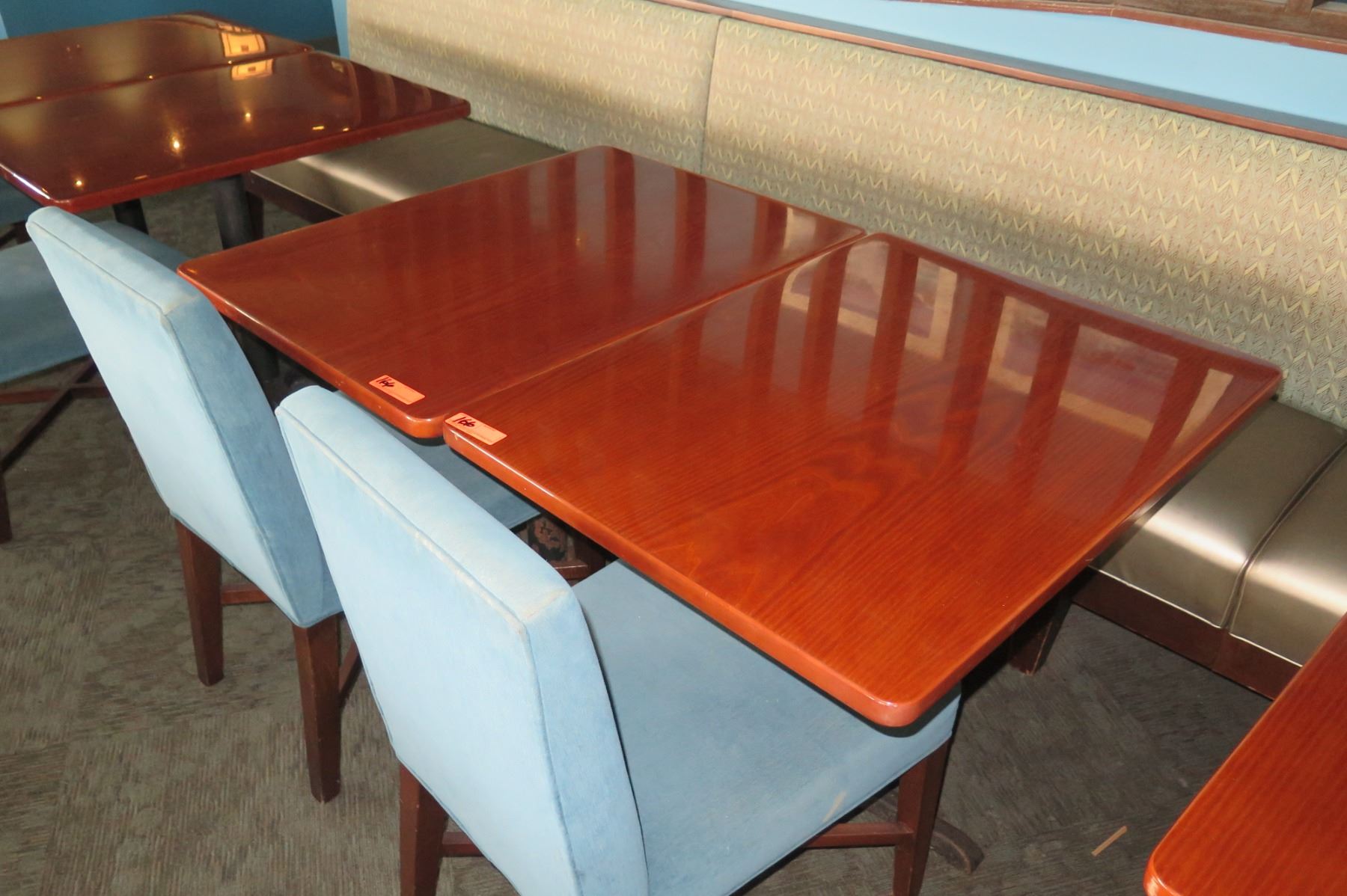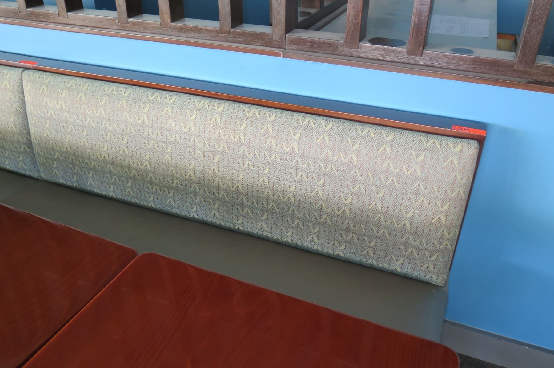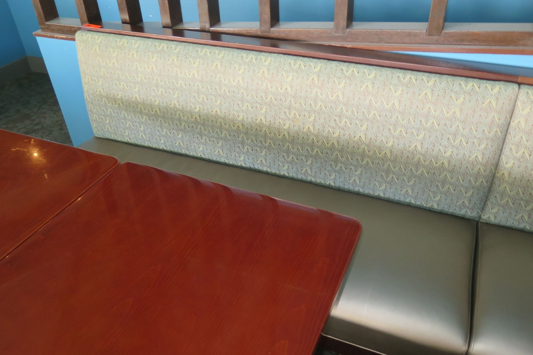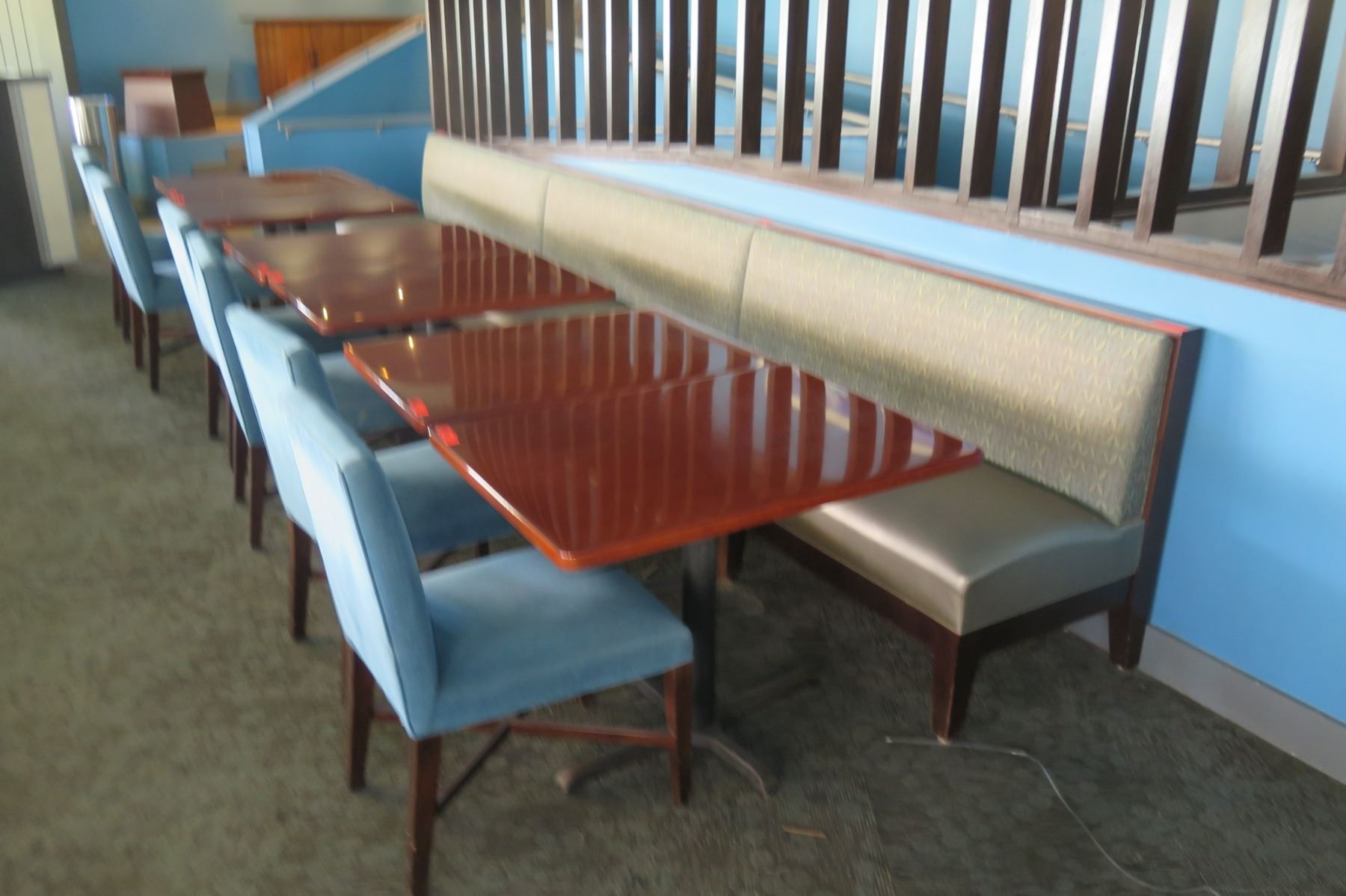6 Rectangular Wooden Tables, 6 Upholstered Chairs & Row of Booth Seating