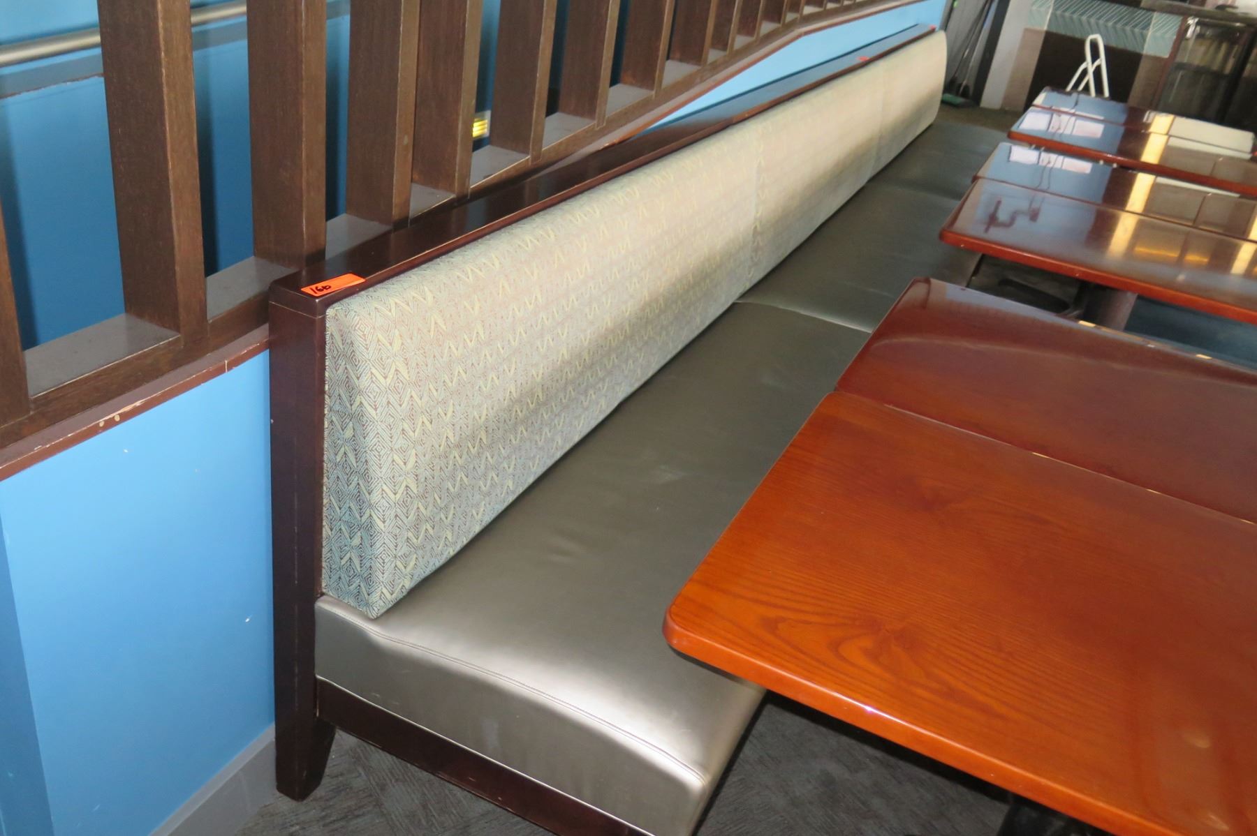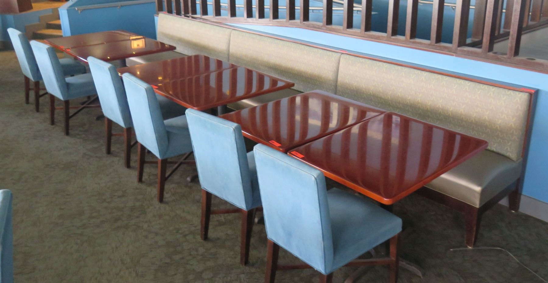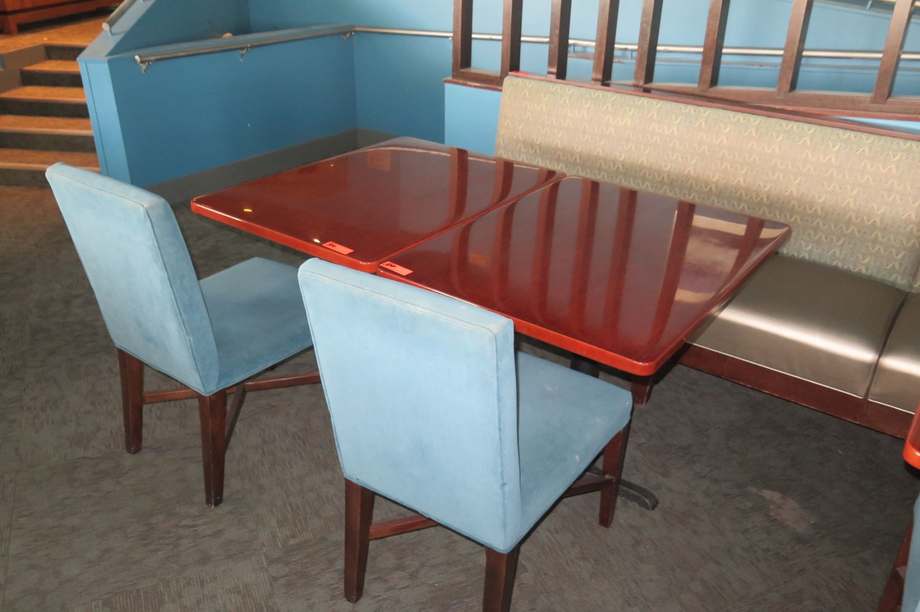 6 Rectangular Wooden Tables, 6 Upholstered Chairs & Row of Booth Seating