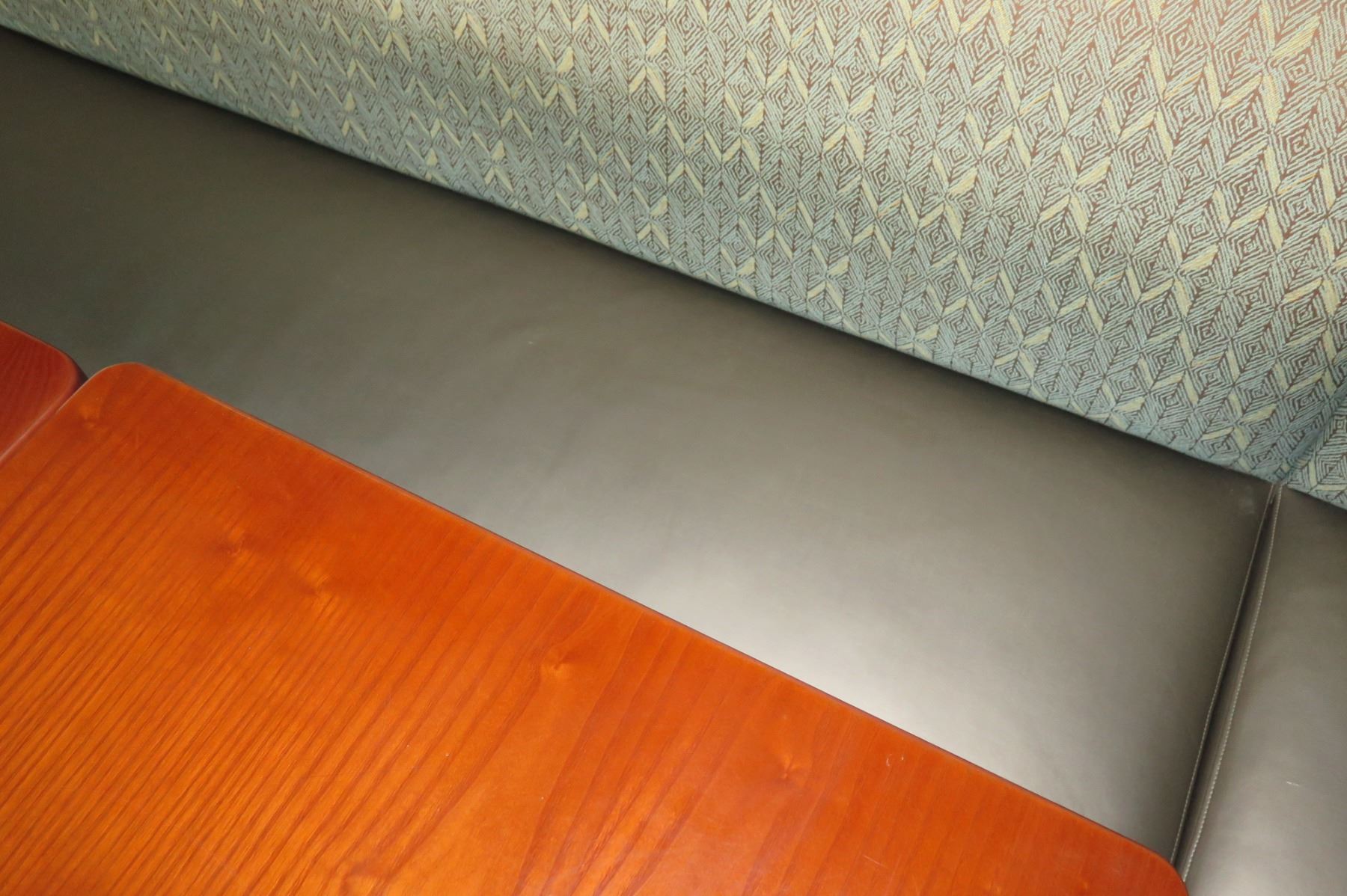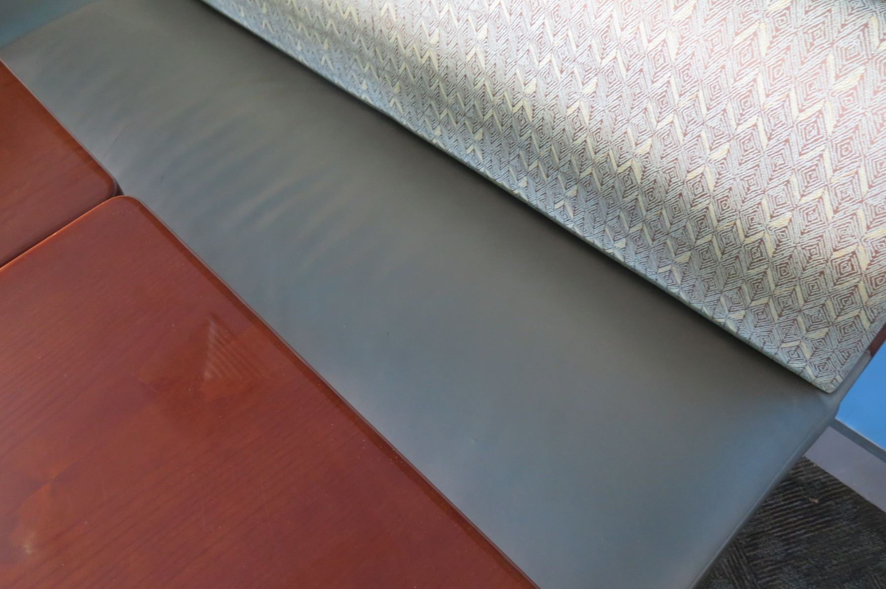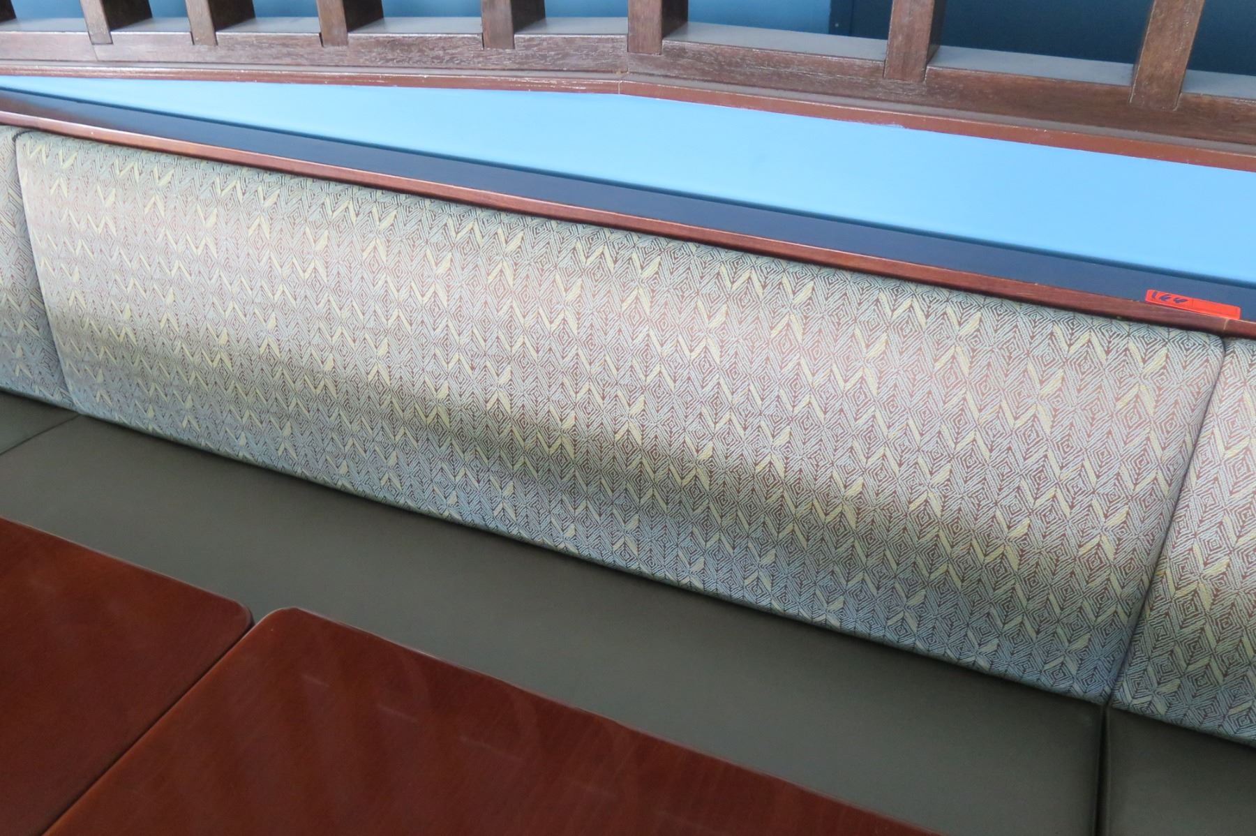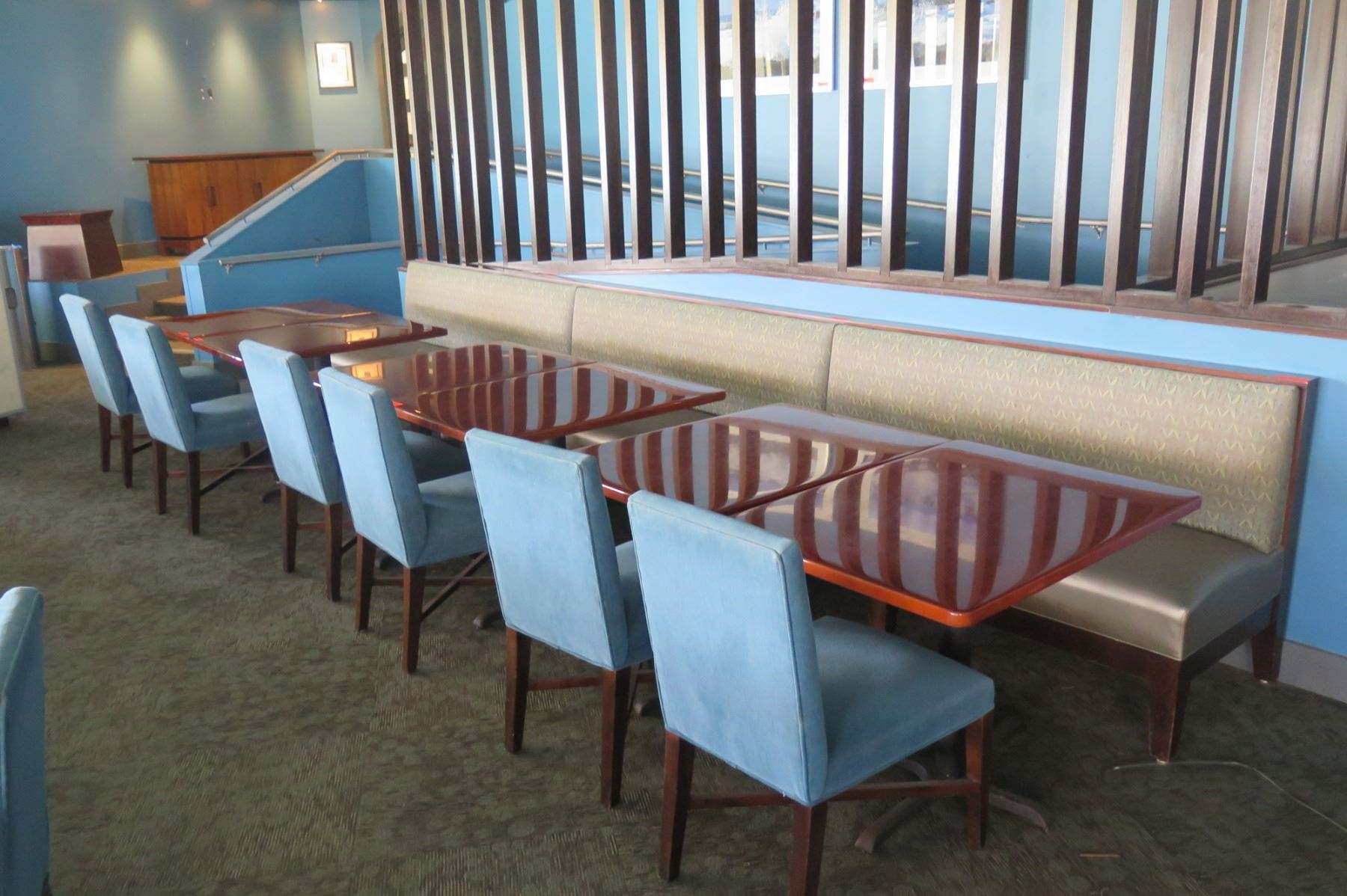 6 Rectangular Wooden Tables, 6 Upholstered Chairs & Row of Booth Seating