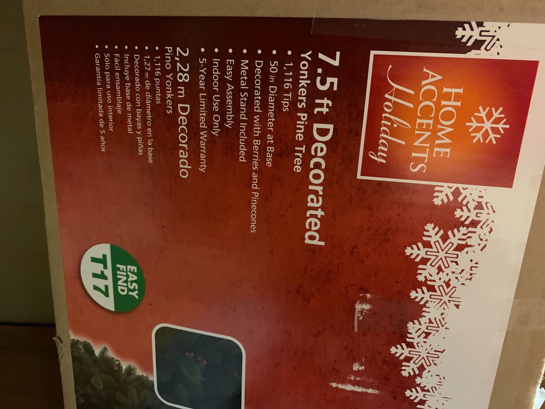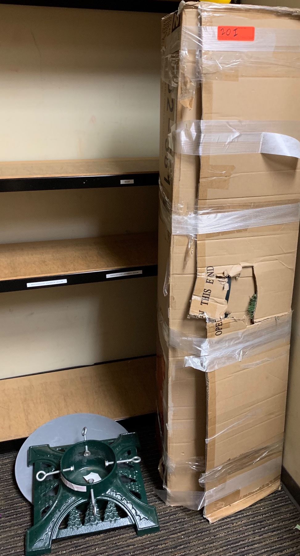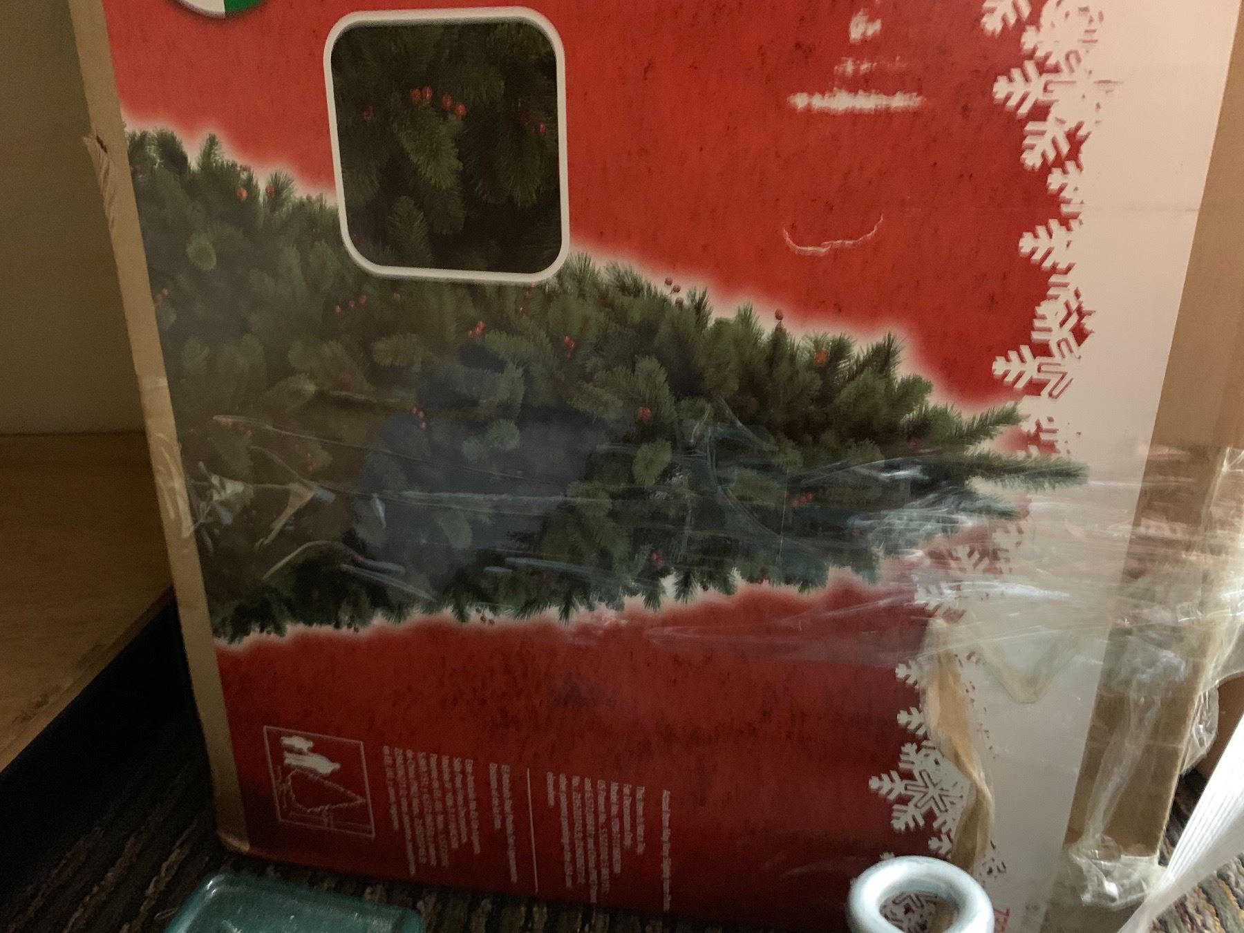 7.5 Foot Faux Christmas Tree w/ Cast Iron Base (In Box)