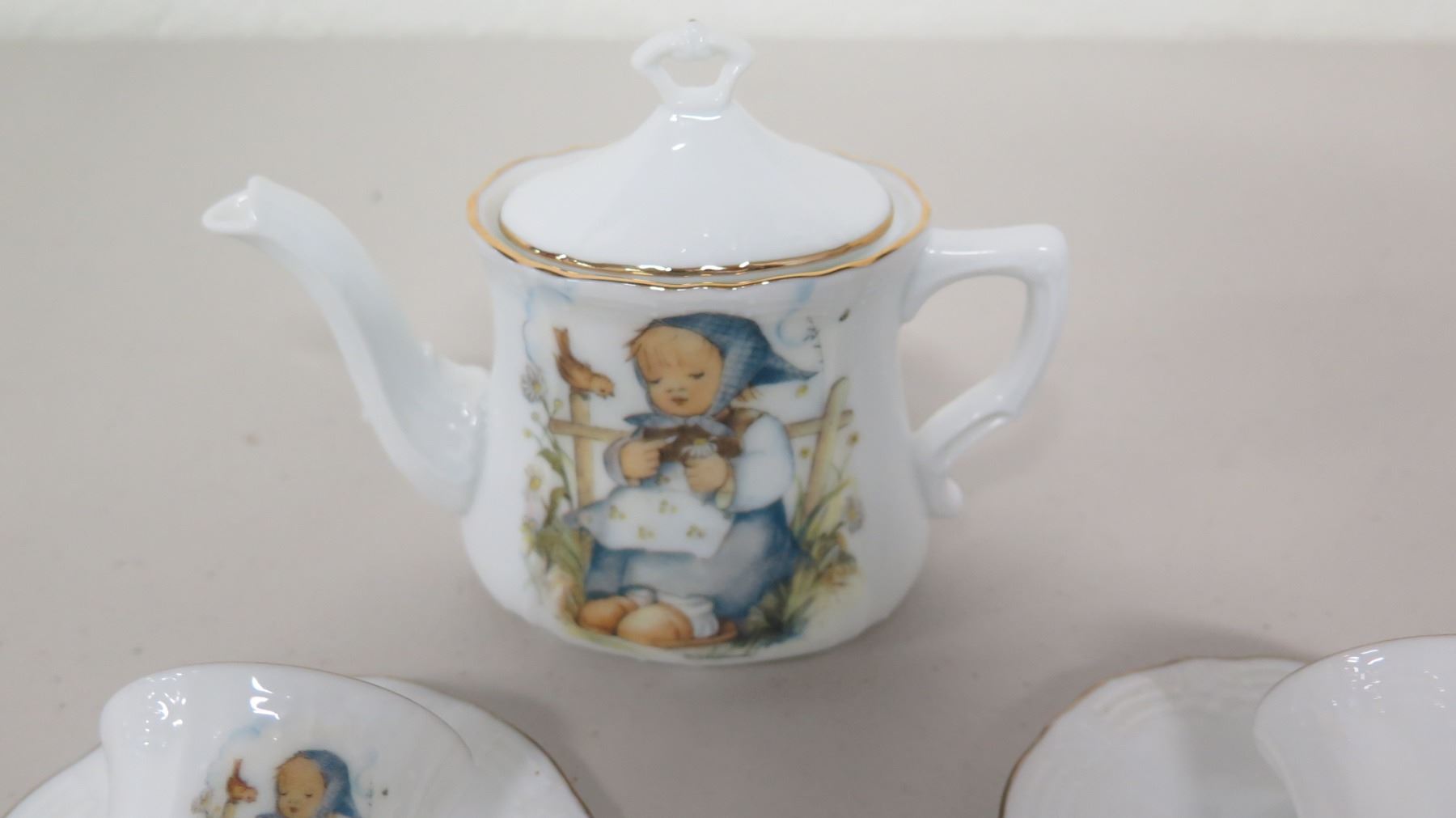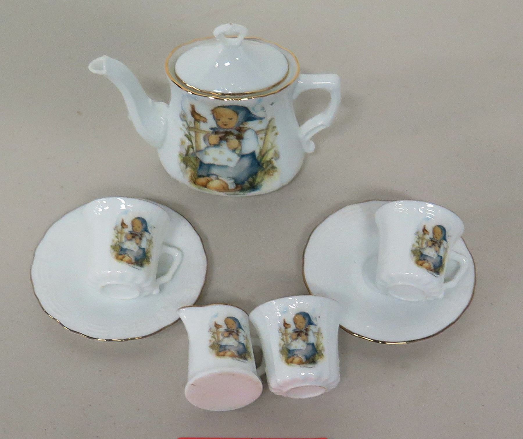 7-Piece Hummel Porcelain Tea Set - Tea Pot, 2 Cups & Saucers, Creamer & Sugar Pot
