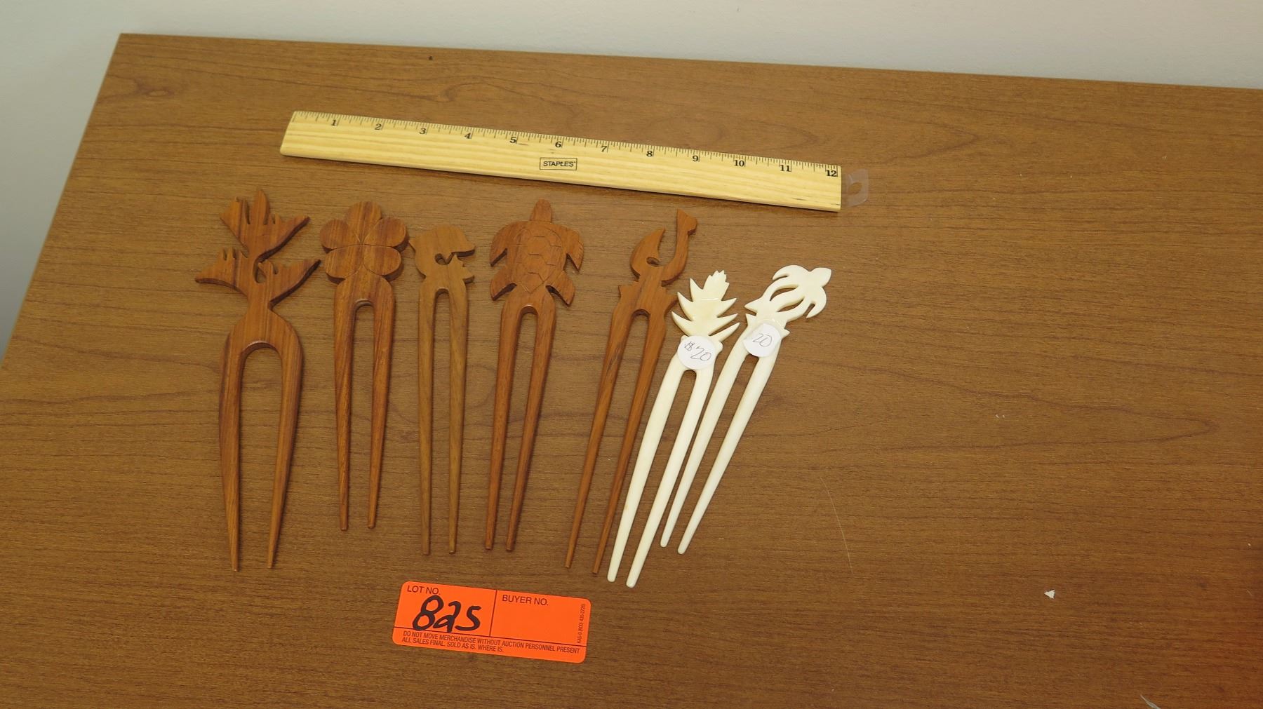 7pc Hawaiian Hair Picks: 5 Wood, 2 White