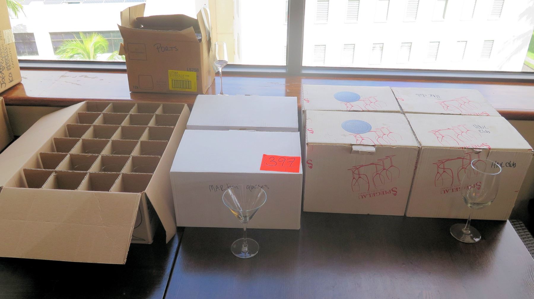 8 Boxes of Wine & Martini Glasses, Tumblers (see pictures for approx. count)