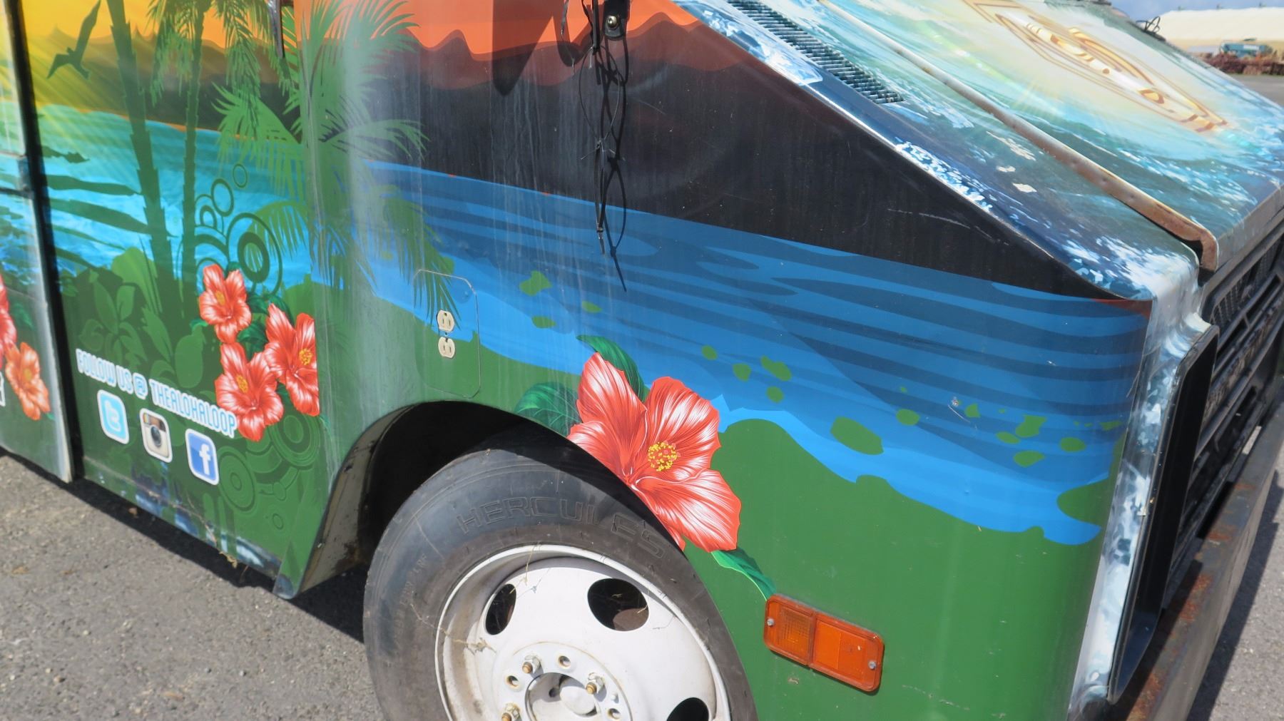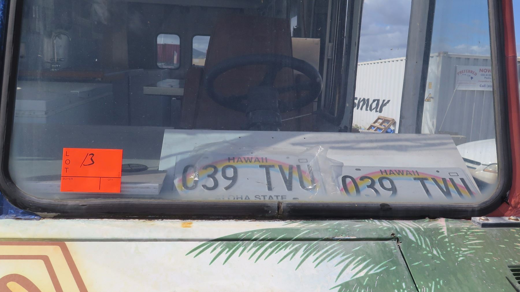 1981 Chevy Van - Wrapped in Hawaii Theme, 155.5"L, 76.5"W, 74"H - Has 2 Freezers (43x28), Refrigerator (30.5X27), Sandwich Table (28x33.5), Hand Sink, Includes Title, Plate Expired 2016.