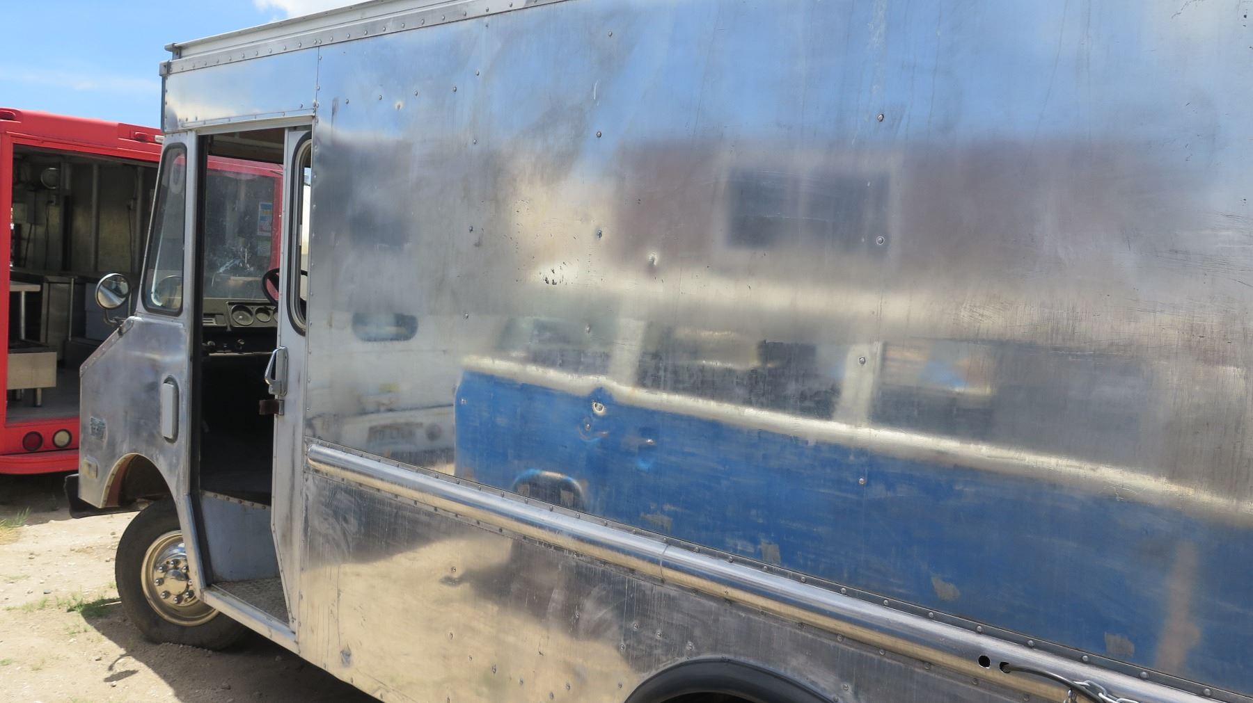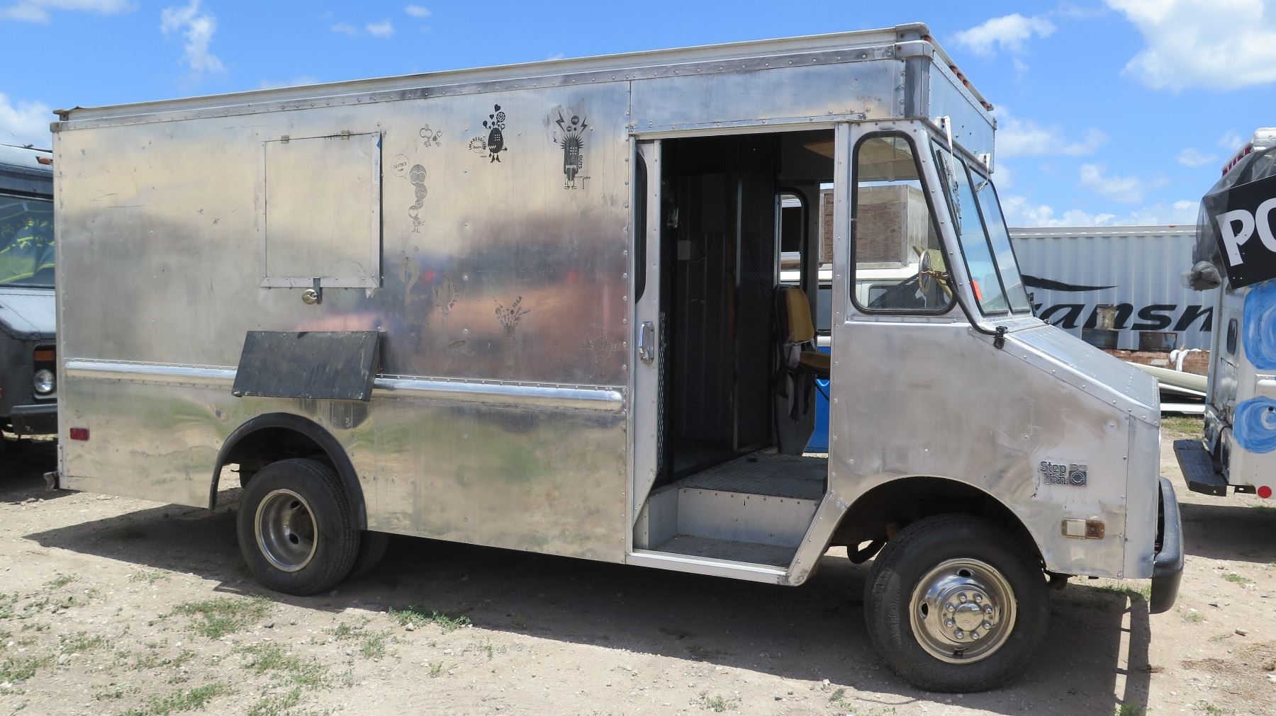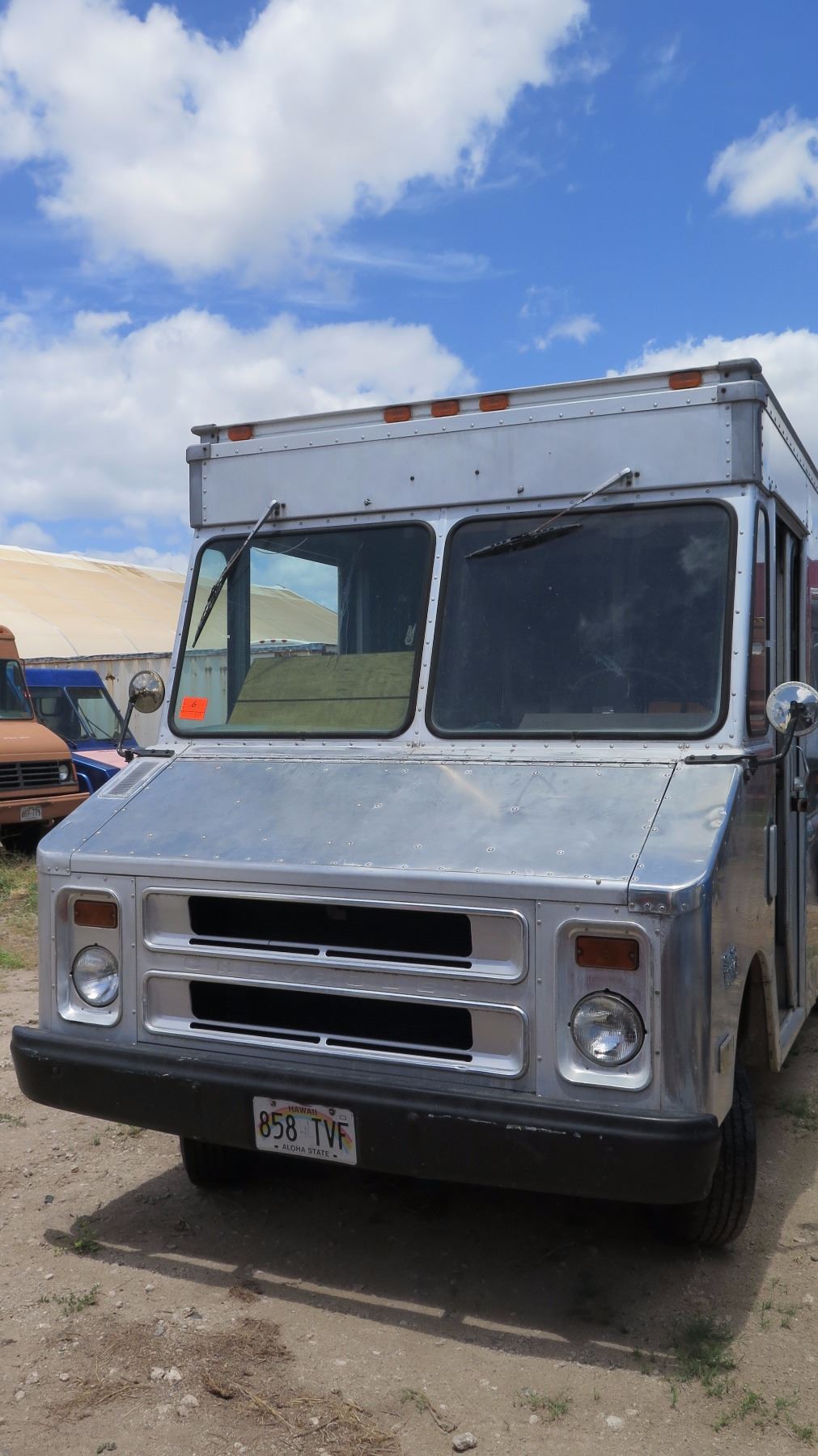 1983 Chevy Van, Silver, 147.5"L, 80.5"W, 77.5"H - Registration Expired Sep. 2016. Includes Title. Has Freezer, 4-Burner Range (24x30), Fryer (14"), Shelf