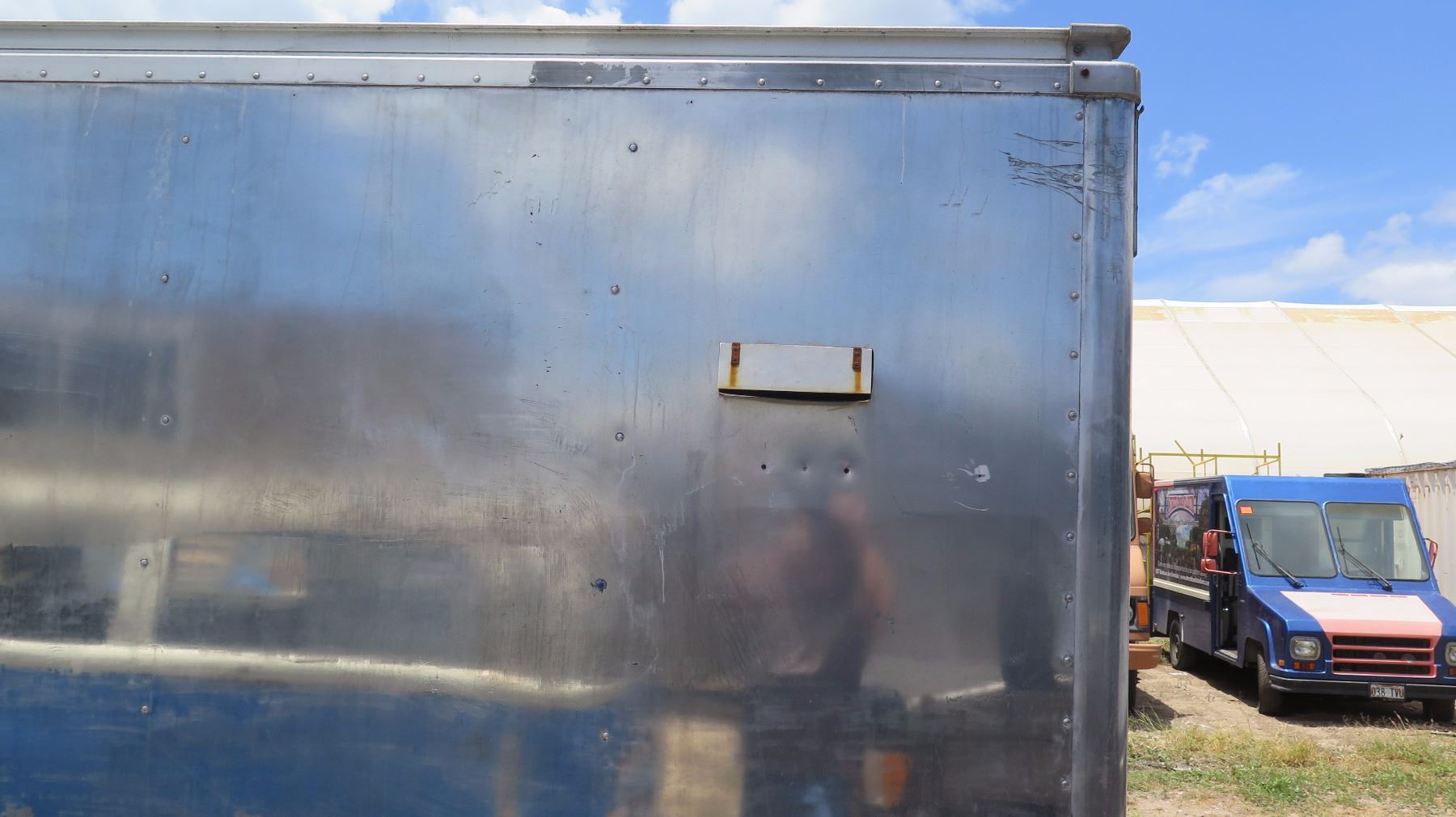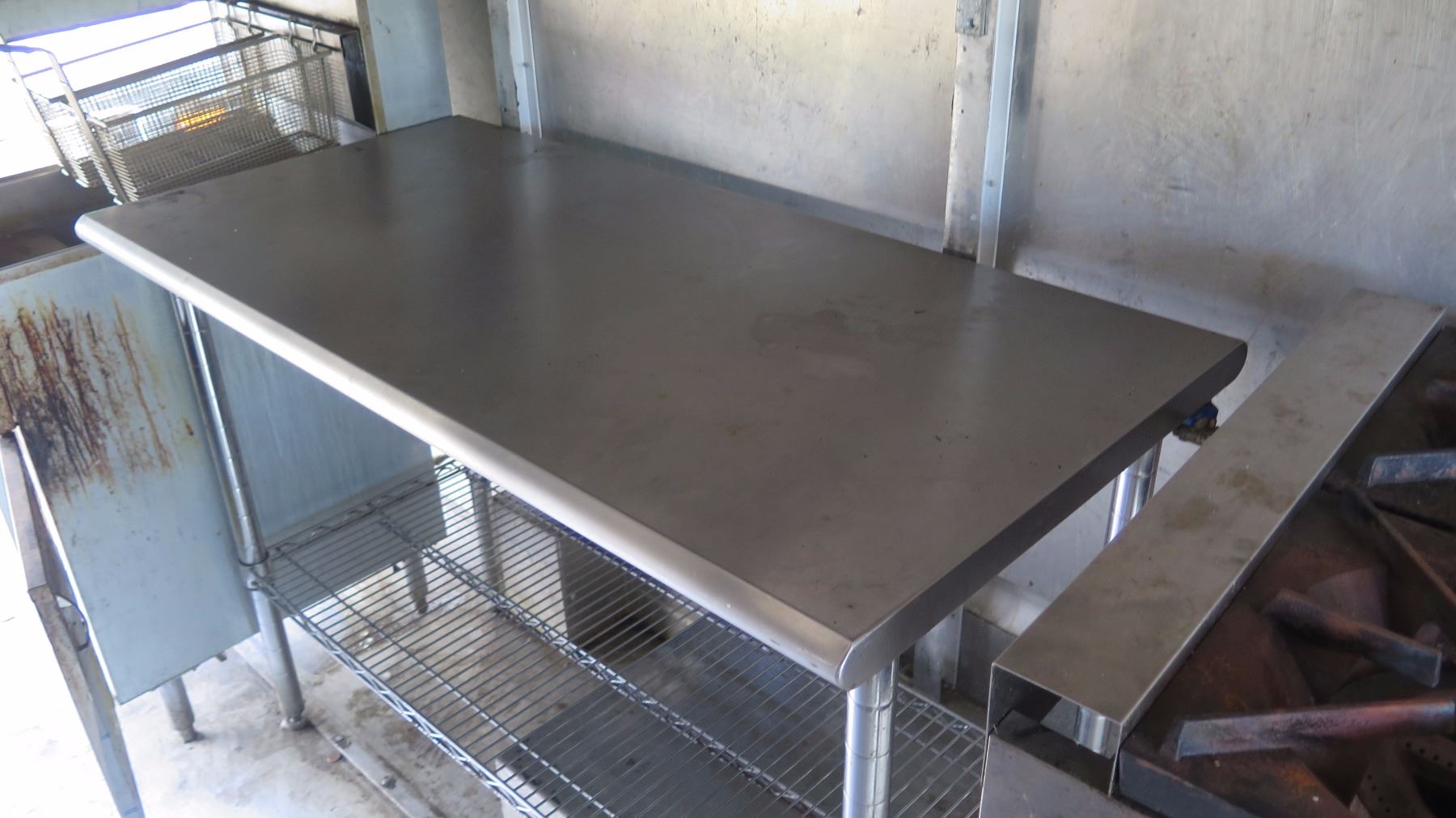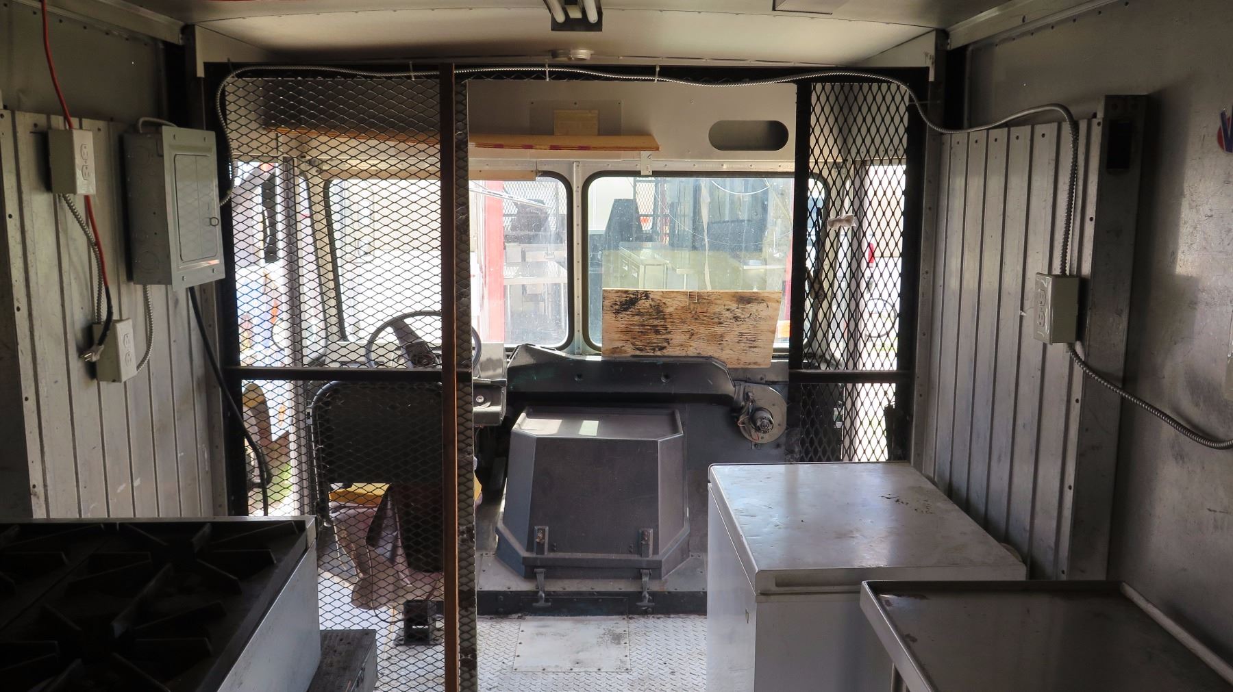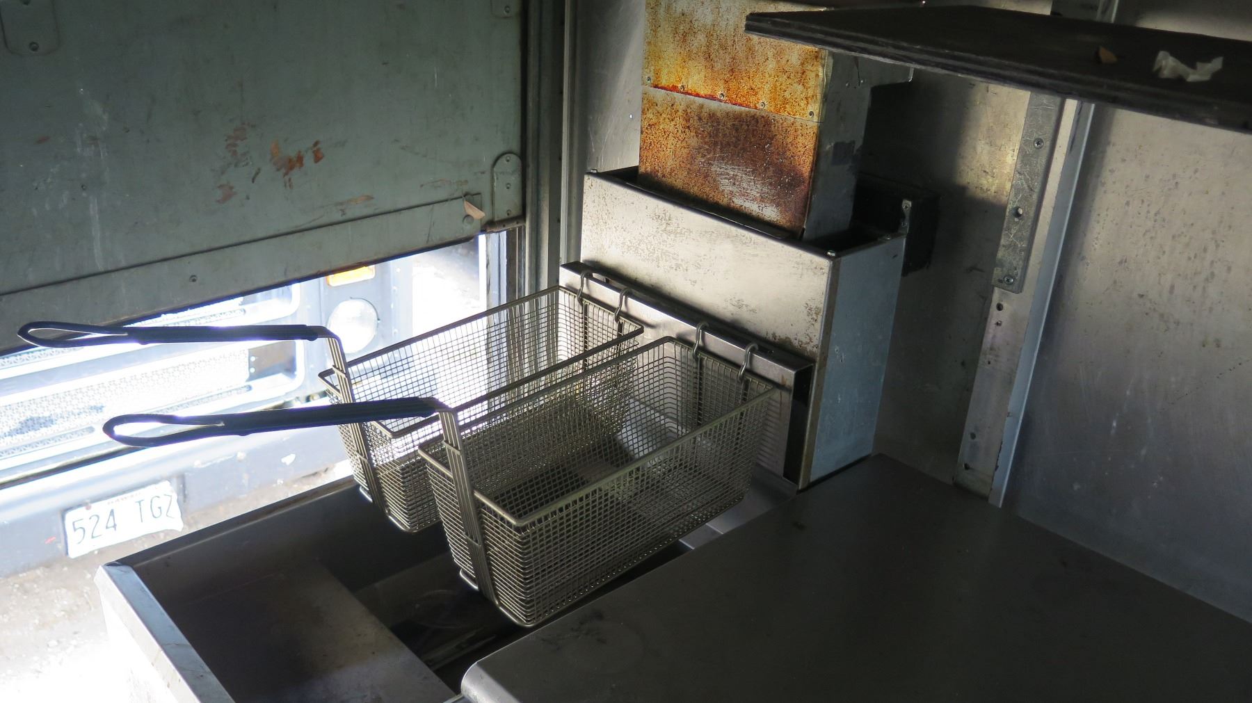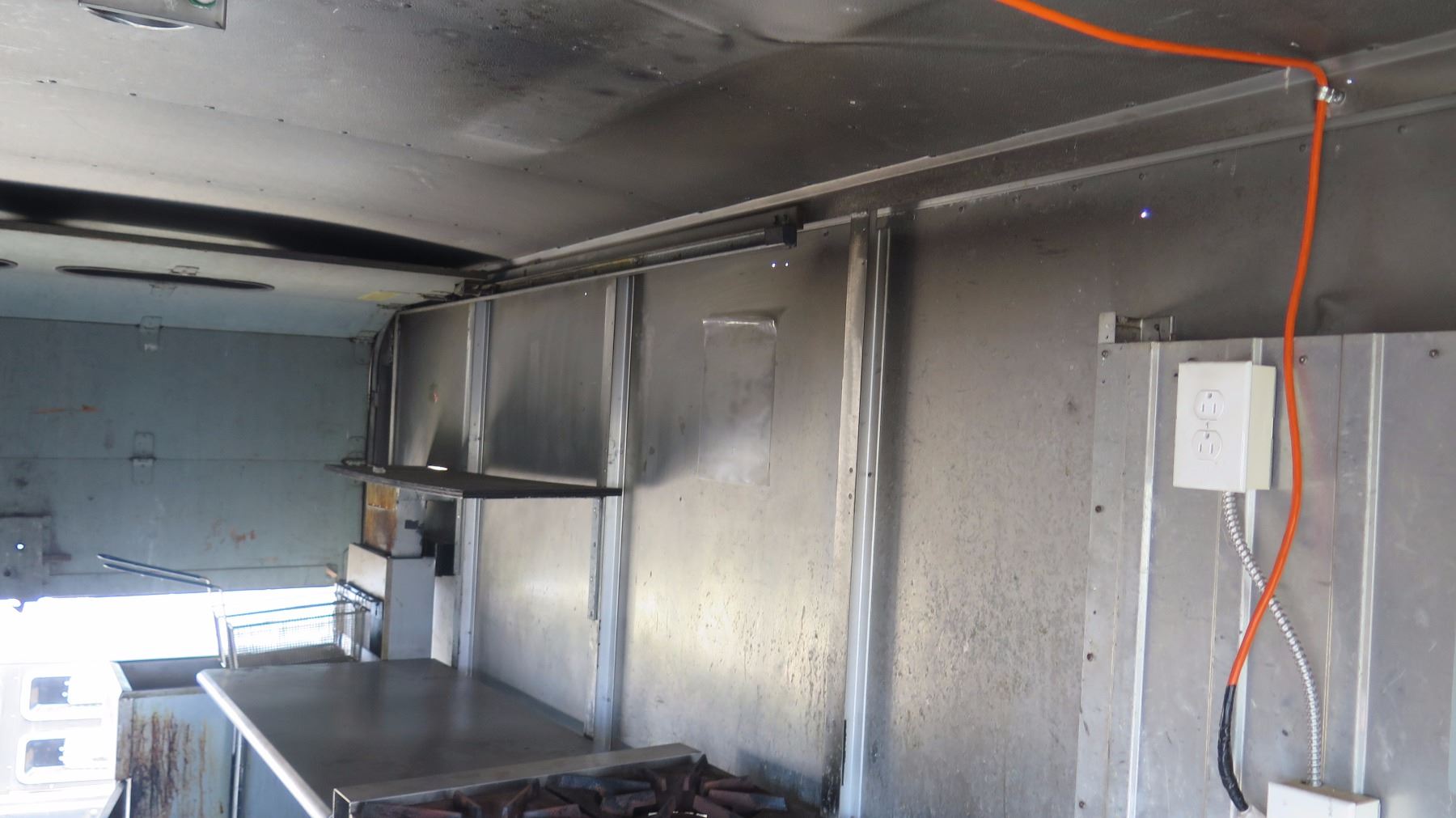 83 Chevy, 147.5"L, 80.5"W, 77.5"H - Has Title. Freezer, 4-Burner Range, Fryer, Shelf