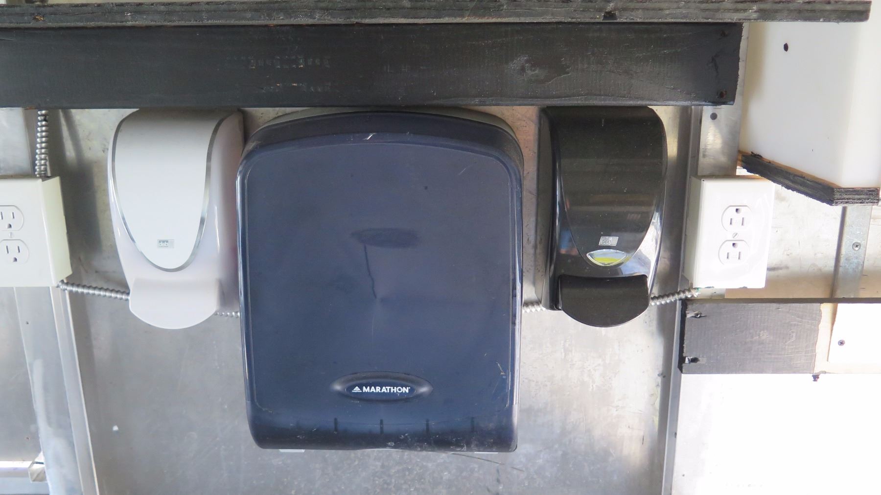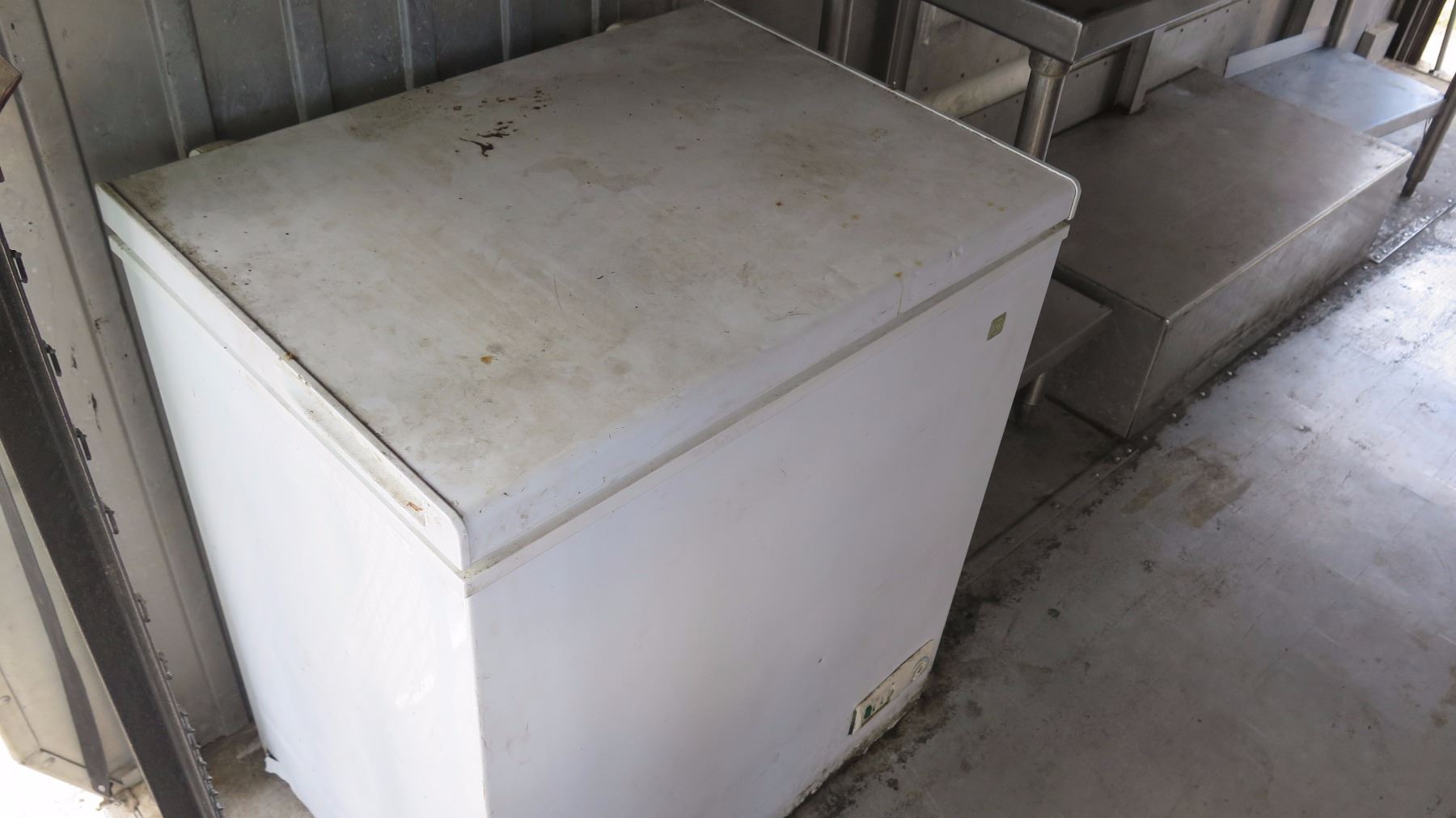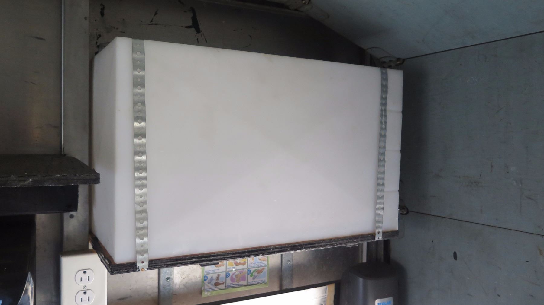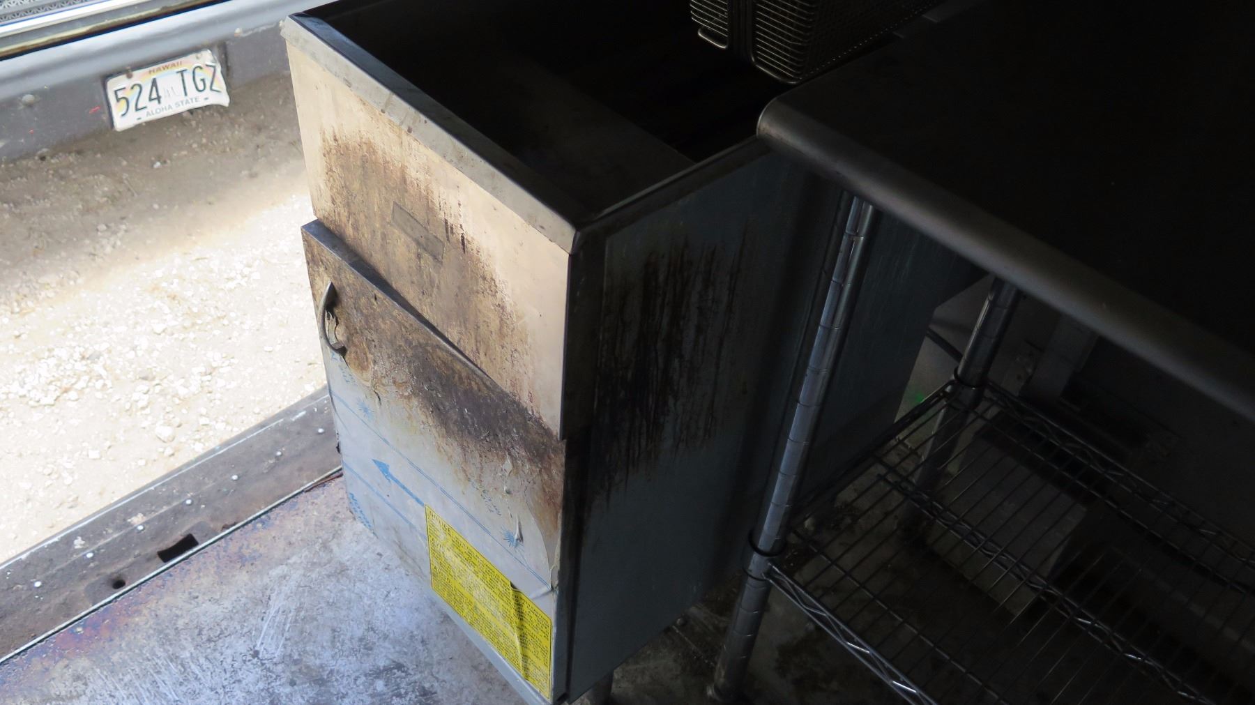 83 Chevy, 147.5"L, 80.5"W, 77.5"H - Has Title. Freezer, 4-Burner Range, Fryer, Shelf
