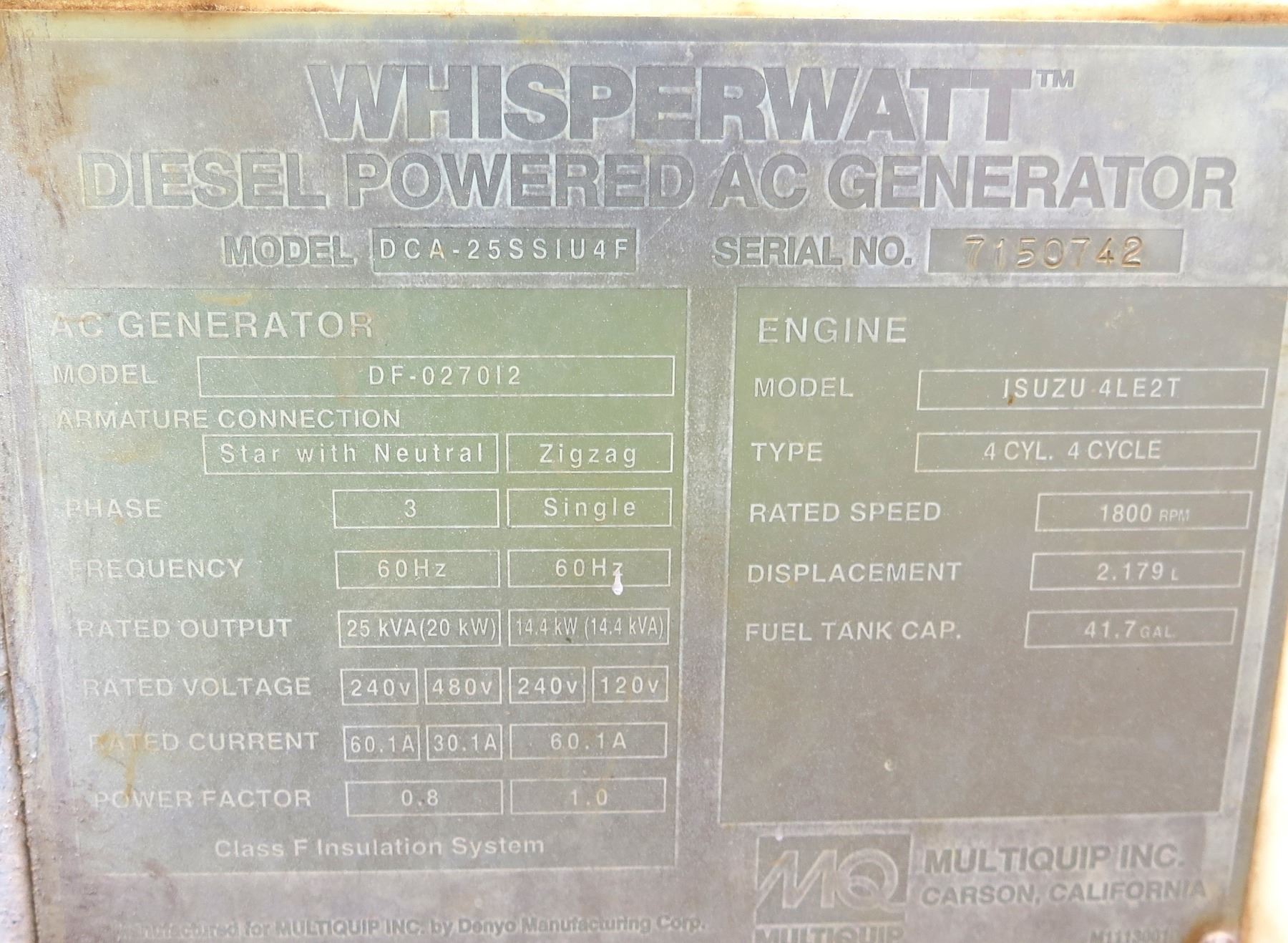 2014 MQ Power DCA25SSIU4F Diesel Generator 20KW (Starts & Runs - See Video). Meter reads 9318.7 hours