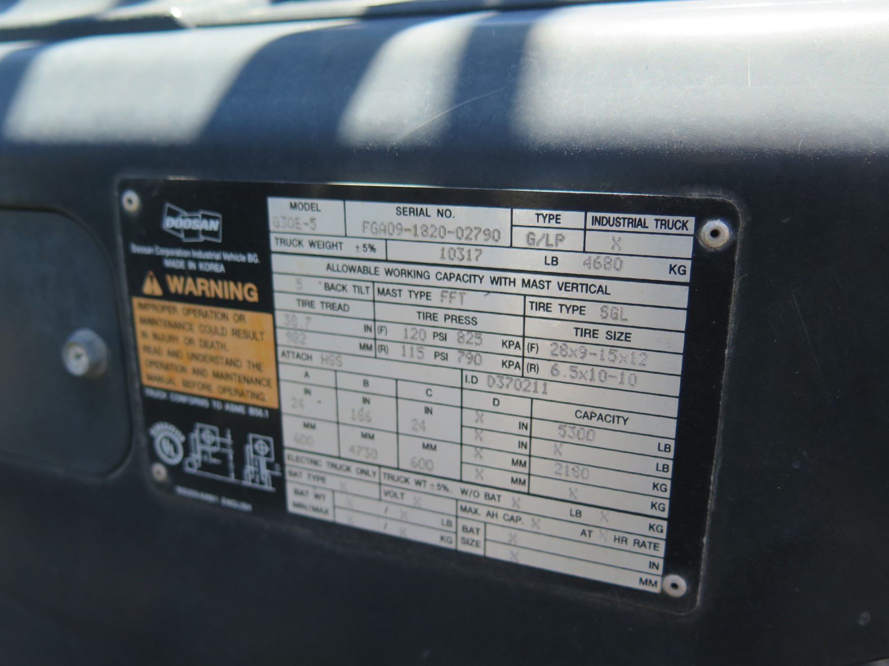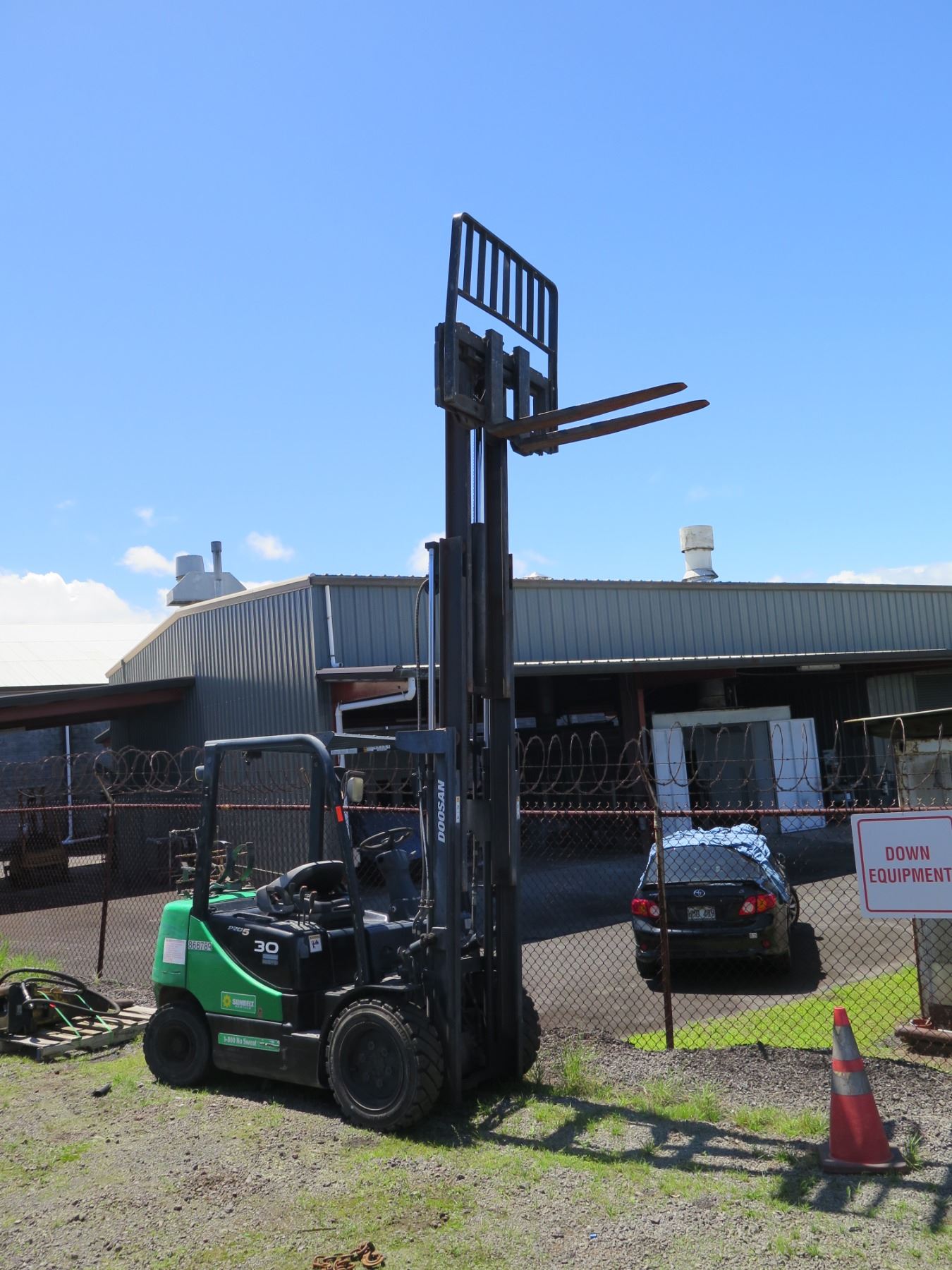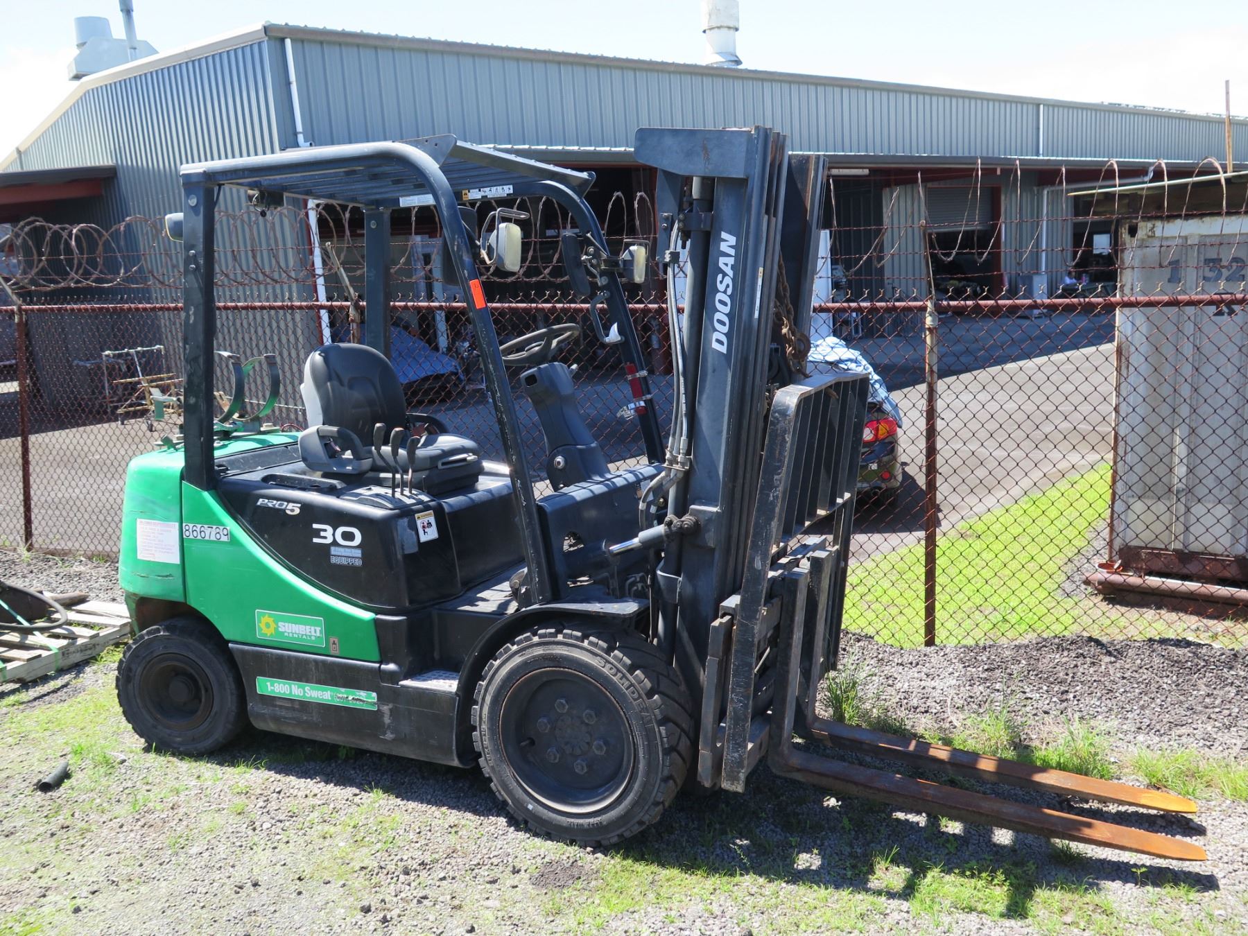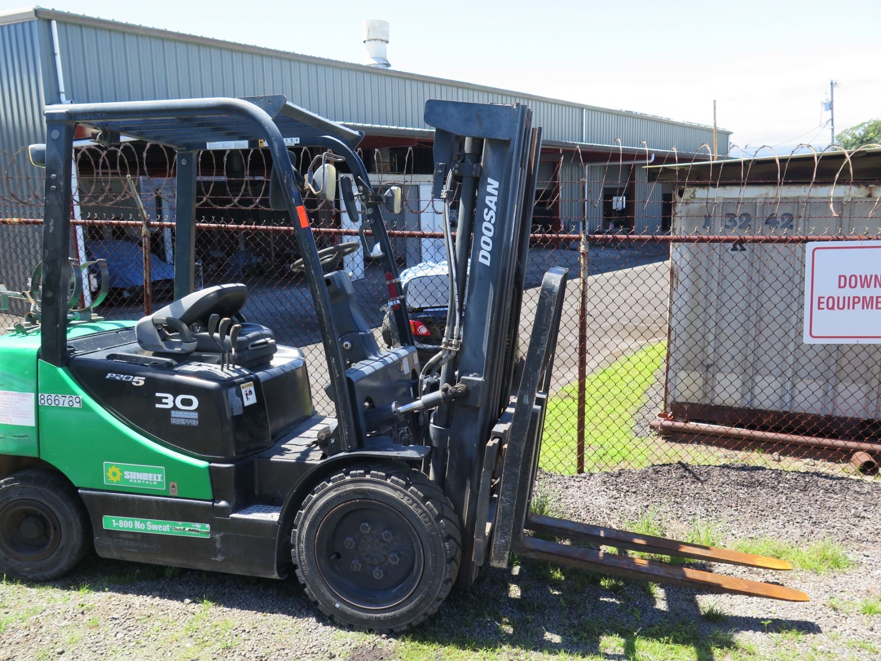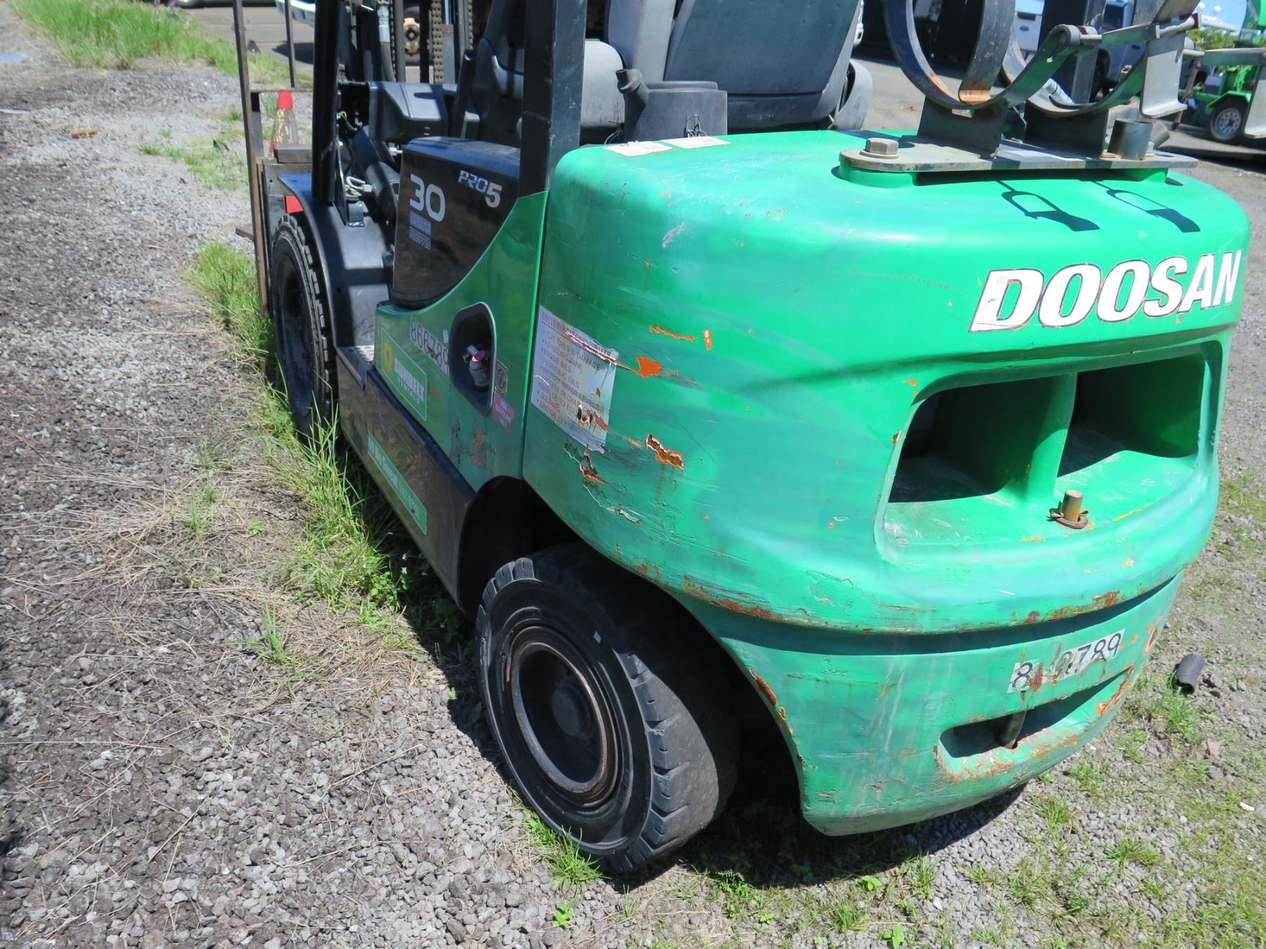 2014 Doosan G30E-5 Forklift (Starts & Runs, Needs Repair). With a jump start, this starts and runs. This unit does not go in forward or reverse, Other deficiencies may exist. Approx. hours 2900
